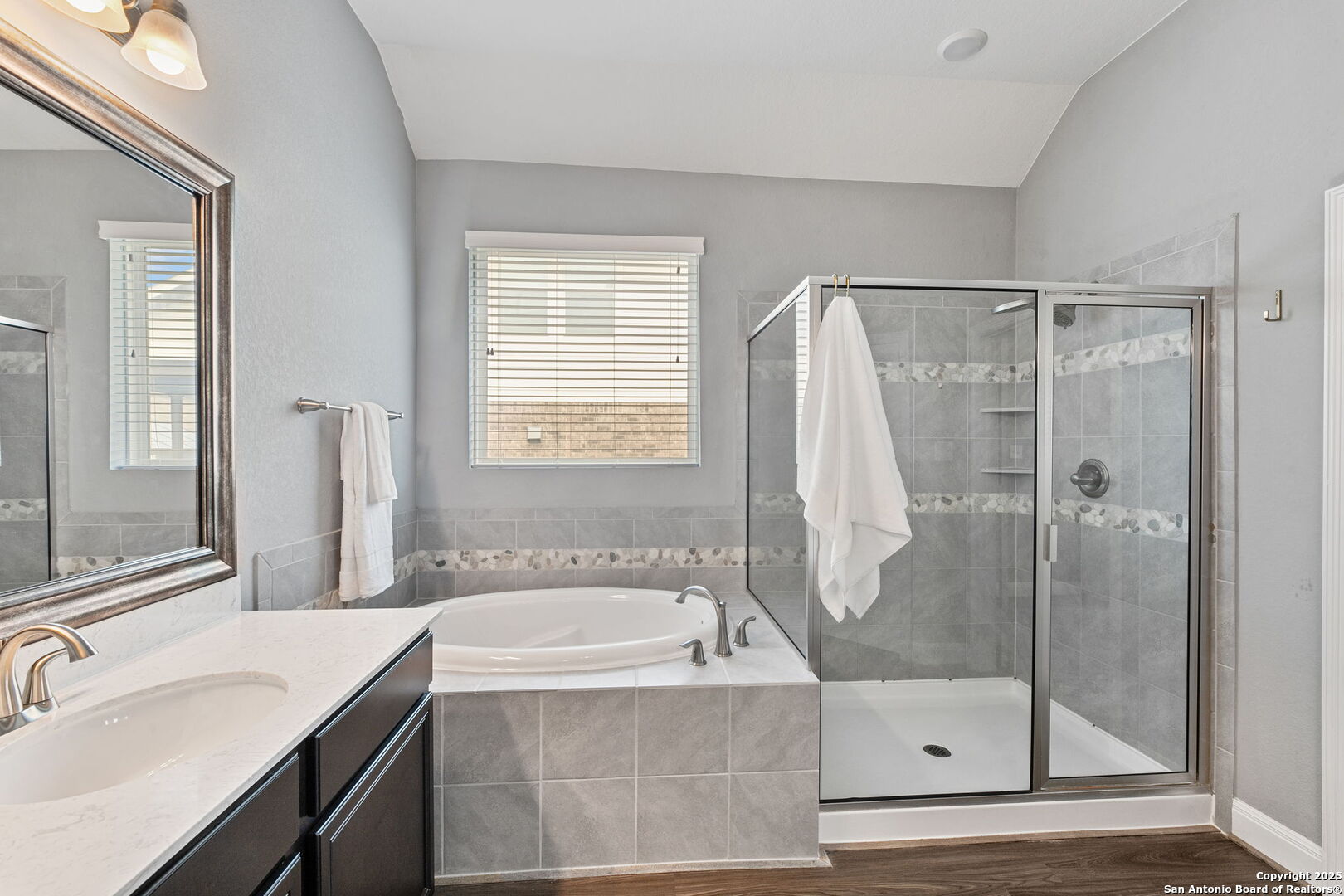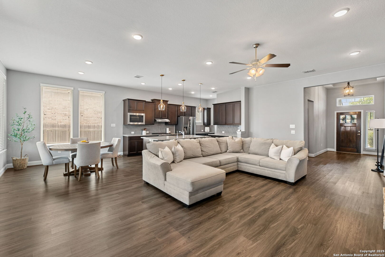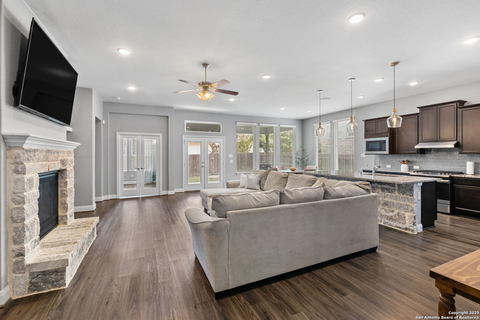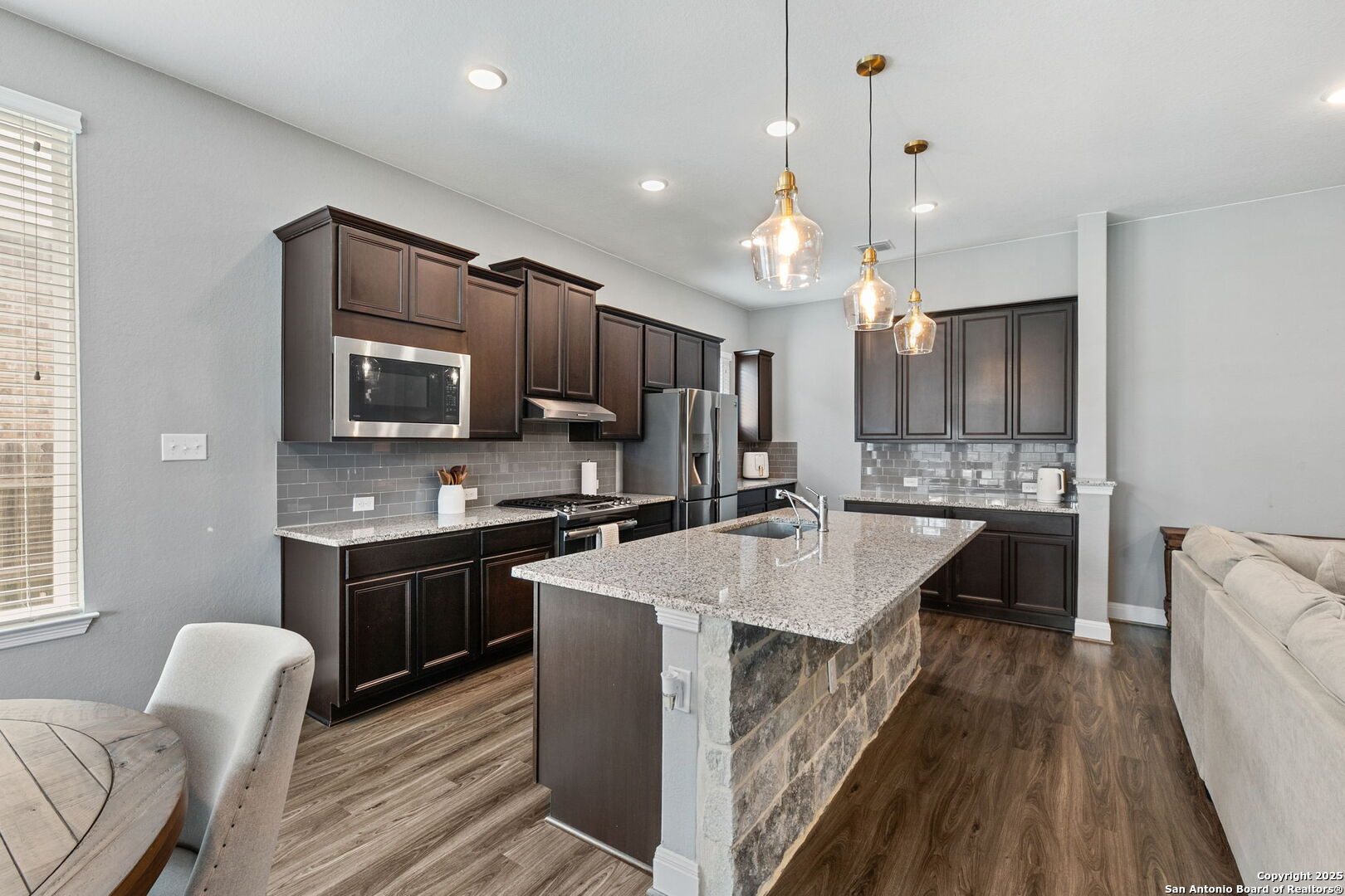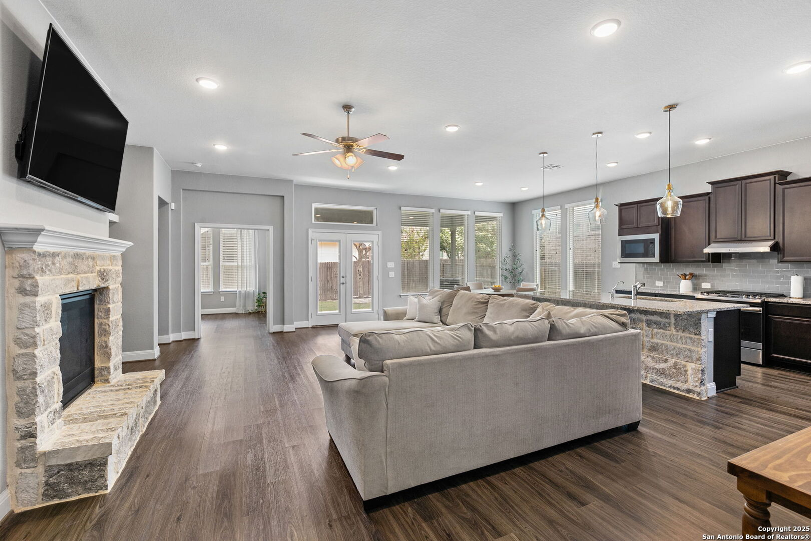 Beautiful, Bright, and Beyond compare, is what you walk into at this thoughtfully designed and stunning Cheshmar Home. With the added accent shelving and stylish design you get upgrades that make this home worth raving about and creates character and individuality. The cozy and inviting aspects come with the feeling of "there's no place like home." But before you relax for the day... leave your coat, shoes, or bags at the easy accessible mud space or take a turn and leave in the laundry. The ample living space leaves room to create any furniture design that boasts your taste. Anchoring the open-concept living space is the stunning focal point fire place adding year round luxurious detail and an inviting atmosphere. Step into a breathtaking open-concept kitchen designed for effortless entertaining and everyday living. The oversized island, with its gleaming countertops and stylish seating, serves as the social centerpiece, inviting guests or family to gather while you cook. Abundant natural light floods the space, accentuating the high-end finishes and creating a bright, welcoming atmosphere. With a seamless flow into the living and dining areas, you'll never be separated from the conversation. This is more than a kitchen-it's the heart of a home built for making memories. The primary bedroom privately situated at the back of the home has a spa like ensuite with separate (not dual) vanities, oversized soaking tub, large walk-in shower, and generously sized walk-in closet for you wardrobe, storage or organizing options. Location, Location, Location, is the staple of all real estate and this home checks the boxes. Easy access to IH-35, just minutes from Randolph Air Force Base, and Fort Sam Houston. highly rated schools and sought-after SCUCISD schools: John A. Sippel Elementary, Schlather Intermediate, Dobie Junior High, Steele High School, and the new School of Science and Technology. Shopping nearby includes Schertz Station, H-E-B Plus, Walmart Supercenter, Parkway Village Shopping Center, and The Forum at Olympia Parkway. Go North minutes to New Braunfels, Gruene, and the Guadalupe or Comal river. Just another hop and skip to South Austin. Take a trip South and see Downtown San Antonio, the Pearl District, River walk and more. This is a must see!