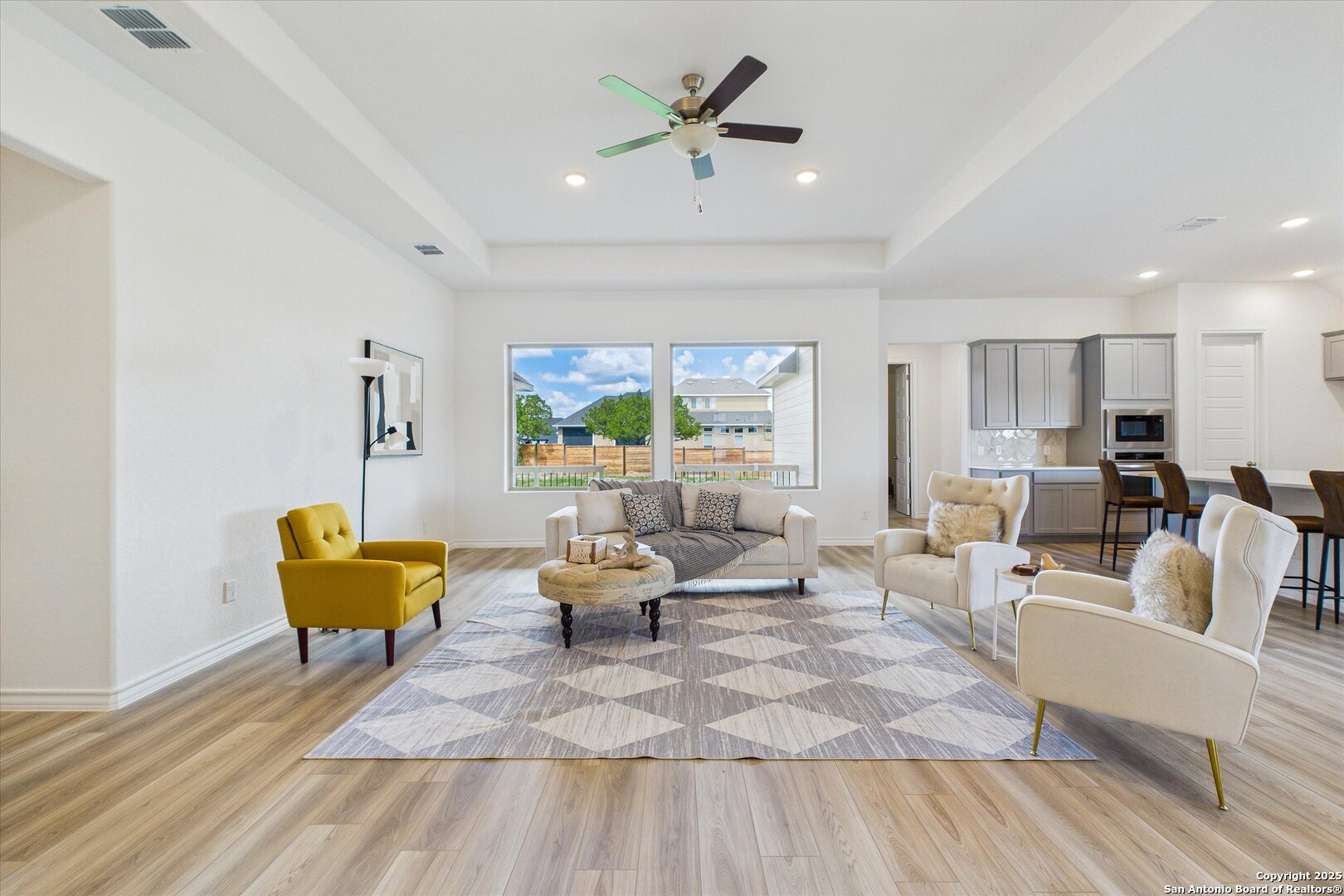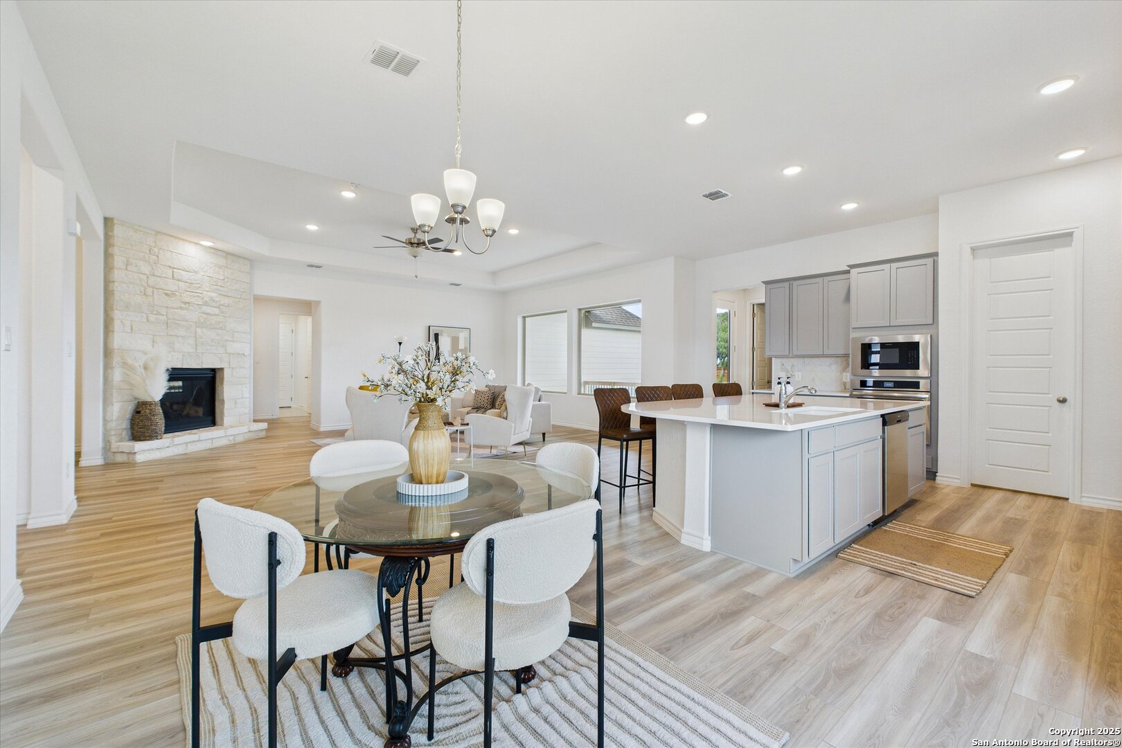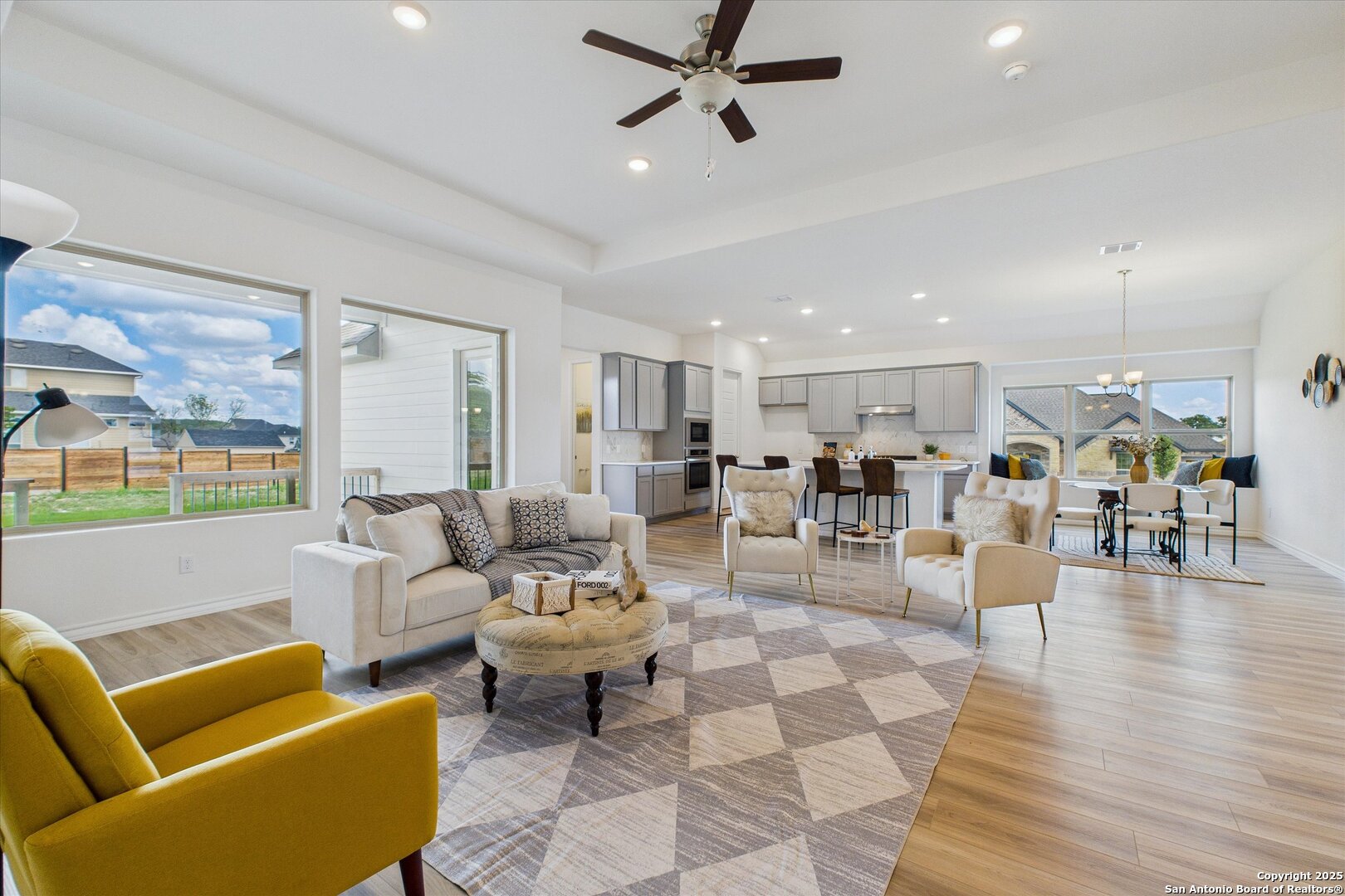The Summerlin is a stunning one-story home that blends elegance and comfort on nearly a half-acre lot. Its stone-and-brick exterior with a spacious front porch creates exceptional curb appeal. Inside, tray and coffered ceilings, a stone fireplace, Riverside doors, and luxury vinyl plank flooring set the tone for sophisticated living, with ceramic tile throughout and carpet only in the bedrooms.The open family room flows seamlessly to the covered outdoor living area, while the gourmet kitchen offers an oversized island, abundant cabinetry, and a large walk-in pantry. A dedicated media room sits just beyond the kitchen for added versatility.The luxurious primary suite boasts two expansive walk-in closets and a spa-like bath with dual vanities, extended counter space, and an oversized soaking tub-perfect for unwinding in style.