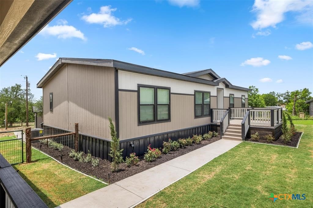 Beautiful 4 bedroom home with many upgraded features on an acre of land in the Hill Country! New Palm Harbor with Open Floor Plan, Amazing Kitchen, about 1700 sq. ft. Luxury Walk In Shower. New Blinds throughout. New Washer/Dryer/Refrigerator all included! Newly Constructed 24X30 Carport offering storage room at the back. Additional Shed 12X16. New Well, New Septic, New Fencing, New Landscaping, "Believe this was an original Homestead site as there is an Old Root Cellar at the front under the tree" Welcome Home! Warranty transferable. Home sits on Concrete slab with proper ties and registered in the State of Texas. One of a Kind Gem Ready for Immediate Move - In. Room for your Boat - No Known Deed Restrictions.