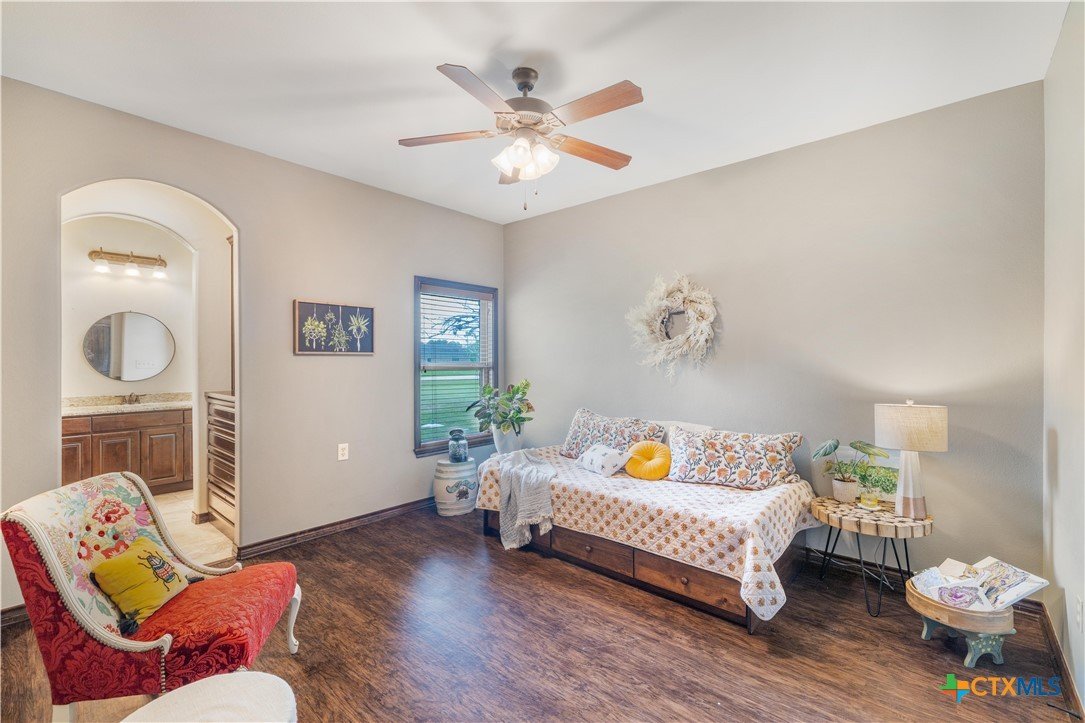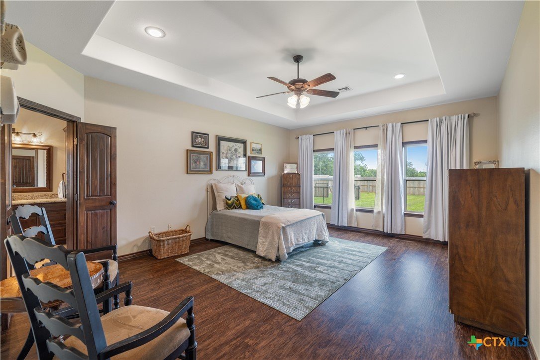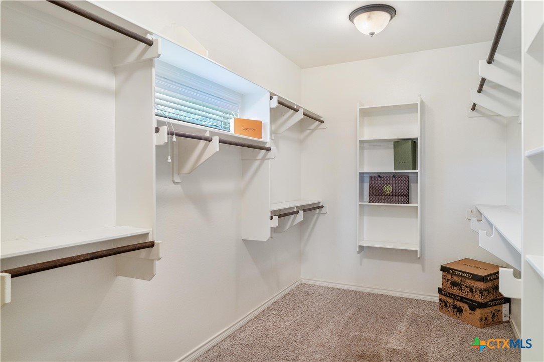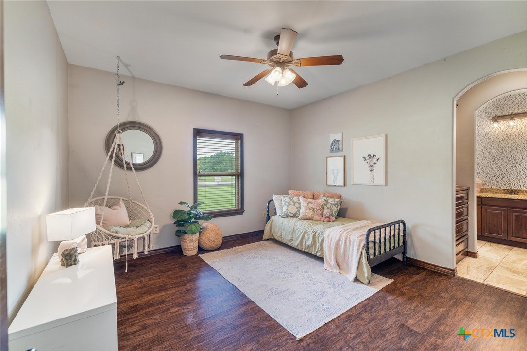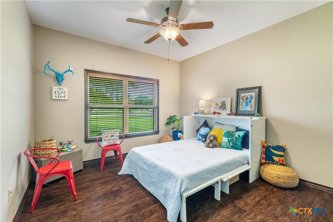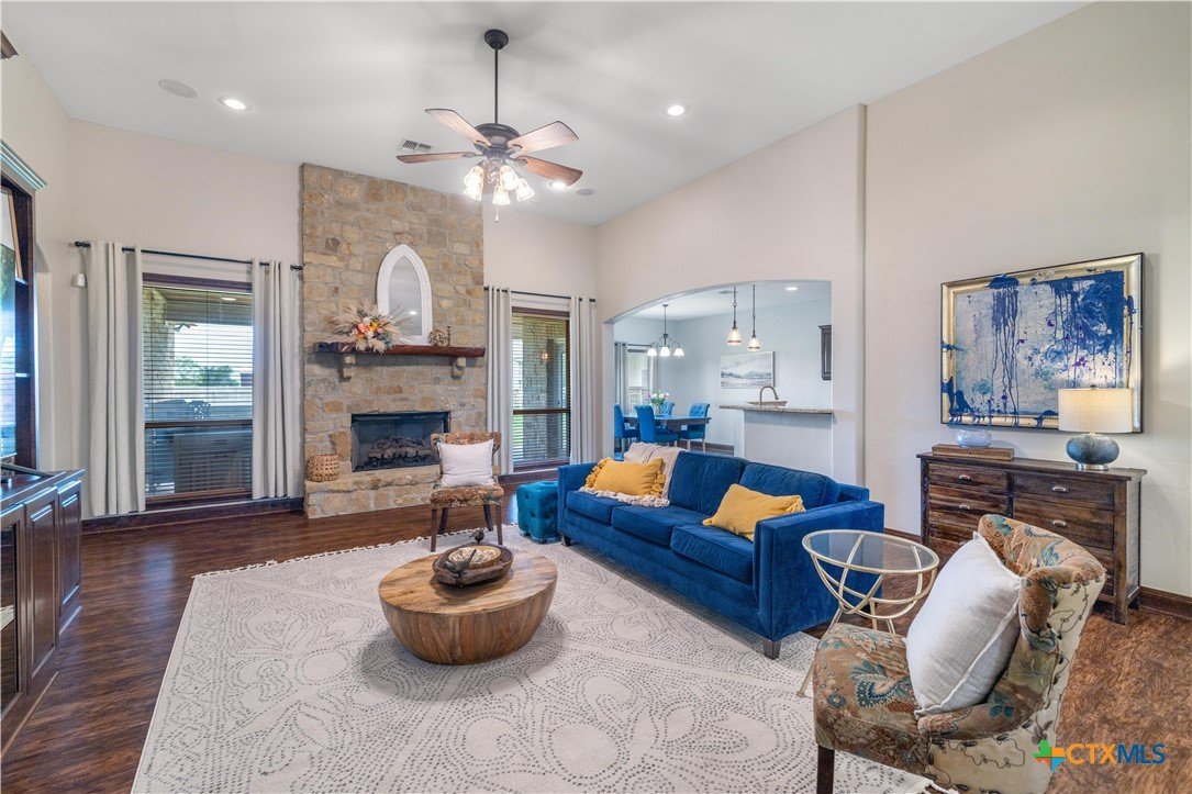 Spring Ridge is known for its beautiful custom homes and they rarely hit the market. Don’t miss this opportunity! Rustic charm meets modern flair in this stunning custom-built Hill Country-style home on over an acre in Spring Ridge Subdivision! This spacious 4-bedroom, 3-bath home offers approx. 2,700 sq ft of well-designed living space with custom finishes throughout PLUS a massive shop and no city taxes! Step inside the welcoming entryway to find engineered hardwood floors, solid wood doors, a rock-accented gas fireplace, and a built-in entertainment center. The open-concept kitchen features double ovens, granite counters, custom cabinetry, and a walk-in pantry perfect for any chef. Each bedroom has extra-large walk-in closets, with built-in dressers in three of them for plenty of storage. The luxurious primary suite includes large windows overlooking the expansive backyard, a huge tile shower, jetted tub, separate vanities, and a spacious walk-in closet with natural light. Designed for entertaining, the home offers two dining areas, a versatile game room/man cave, and a large laundry room with sink. A security system with perimeter cameras, water softener, sprinkler system, and a history of low utilities add to the appeal. Outside, enjoy covered porches and a wide-open backyard perfect for adding a pool, plus a newer privacy fence (2024), a dog run for pets, and an impressive 40' x 60' workshop with 16’ ceilings and two 12’ roll-up doors (2022). The 2,400 sq ft shop is plumbed for a bathroom and offers excellent storage for tools, toys, or projects giving you plenty of space inside and out. Set on a generous corner lot in an established neighborhood with minimal traffic, this property offers peaceful country living just minutes from Victoria amenities and Victoria ISD schools. (Note: House number stone in front holds sentimental value and is excluded.)