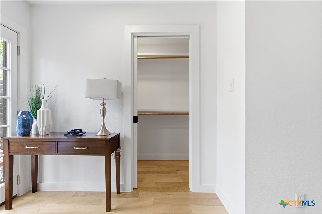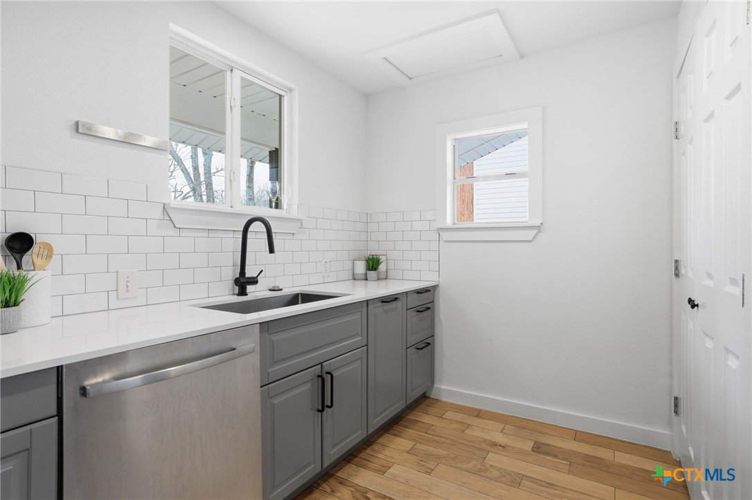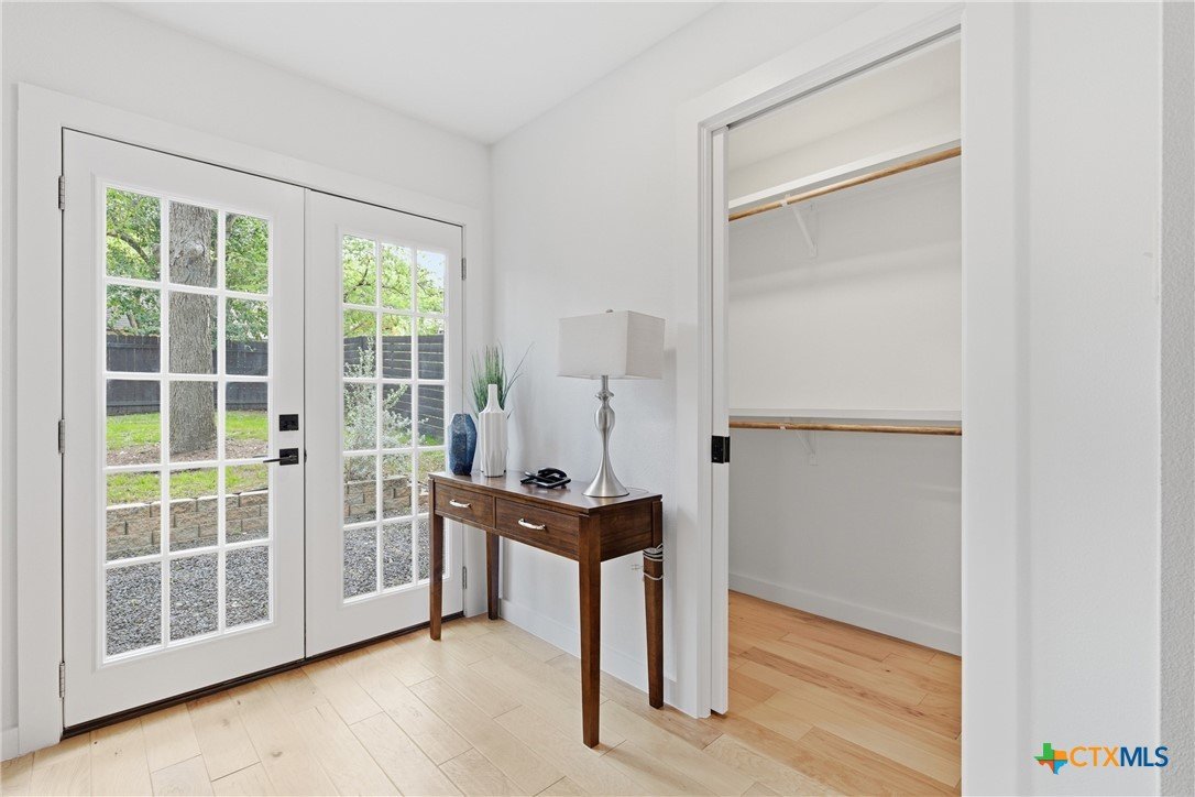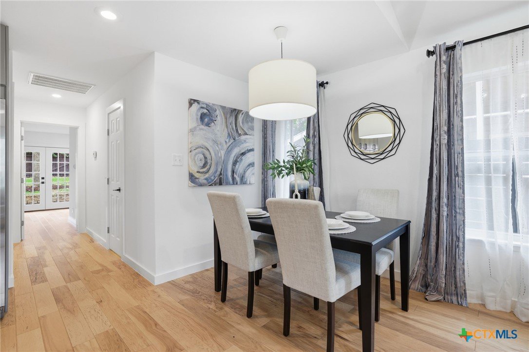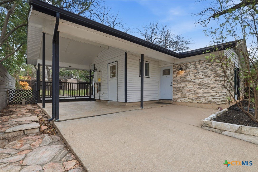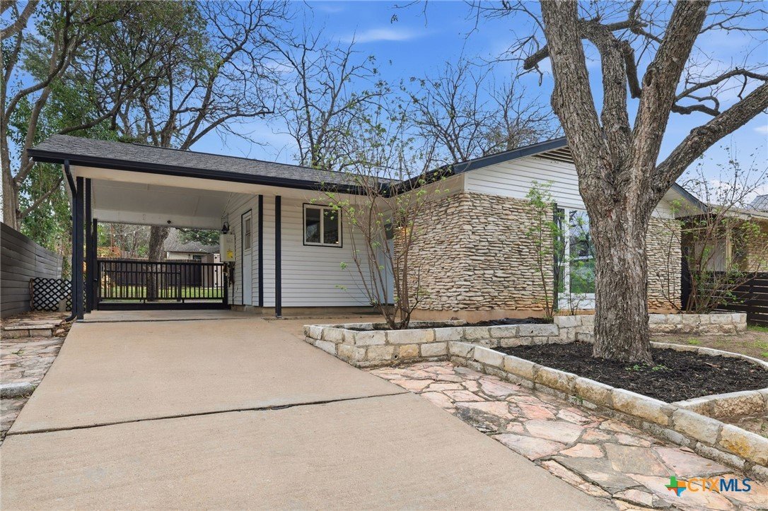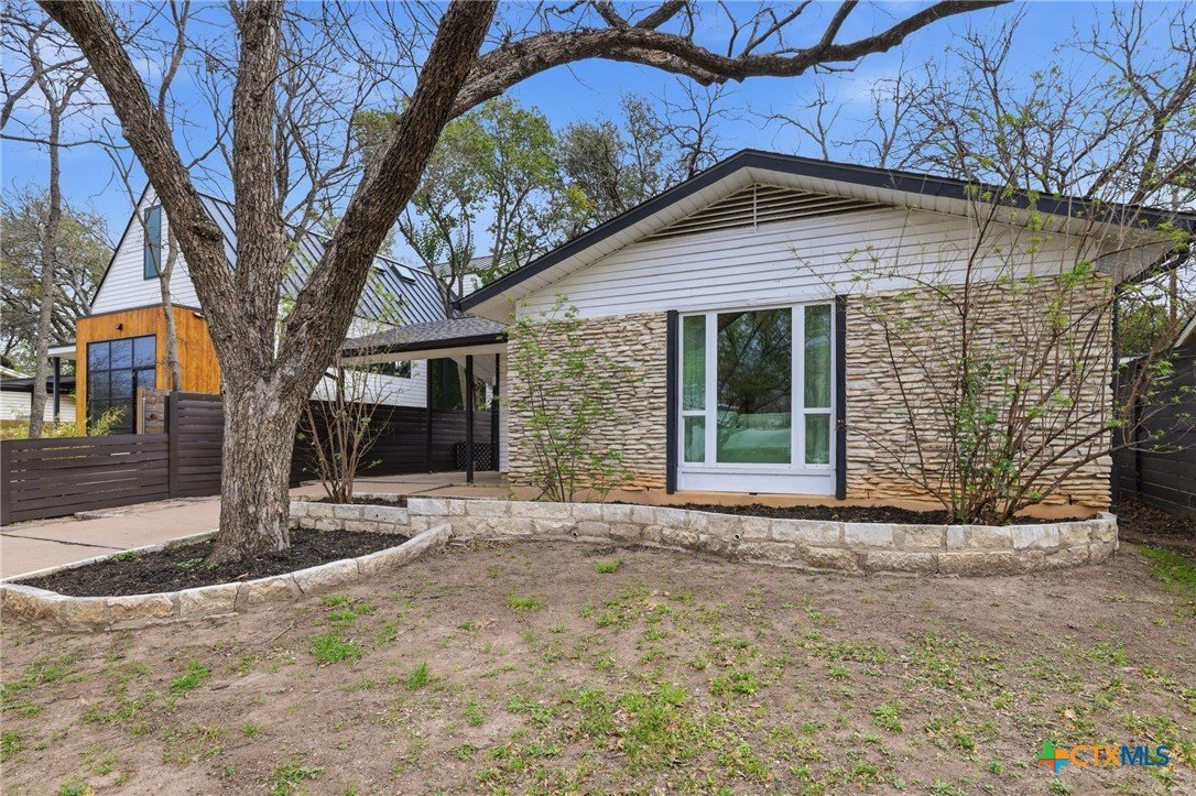 Updated single-story home in an established South Austin neighborhood offering 2 bedrooms, 2 bathrooms, and approximately 1,118 square feet of thoughtfully designed living space. Originally built in 1962, the home has been refreshed with modern finishes while maintaining its classic character. Inside, you’ll find wood flooring, fresh interior paint, and a bright, open living area with vaulted ceilings and abundant natural light. The updated kitchen features sleek cabinetry, stainless steel appliances, and generous counter space, creating a functional layout for everyday living and entertaining. Both bathrooms have been renovated with contemporary fixtures and clean, modern finishes. The primary bedroom offers comfortable space, a newly added walk-in closet, and direct access to the backyard through French doors, creating a seamless connection between indoor and outdoor living. Outdoor features include a covered carport, gated entry, and an expansive deck and patio area ideal for relaxing or hosting gatherings. The spacious yard provides room for gardening, pets, or outdoor activities, and a storage shed adds additional convenience. Located just minutes from St. Edward’s University, major roadways, shopping, dining, and many of Austin’s popular destinations, this home offers convenient access to both everyday amenities and the vibrant downtown Austin area. A move-in ready opportunity in a well-established Austin location with updated interiors, enhanced functionality, and timeless appeal.
