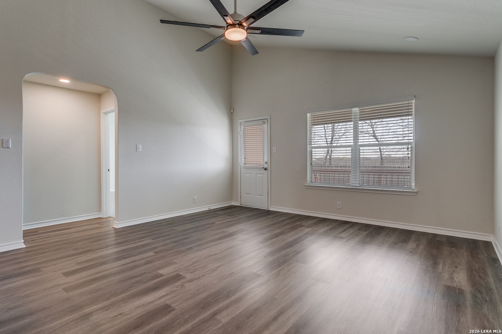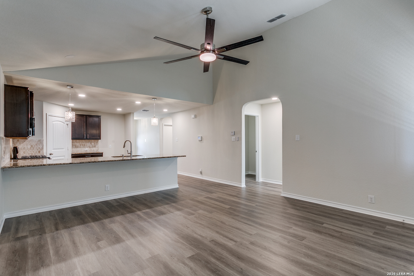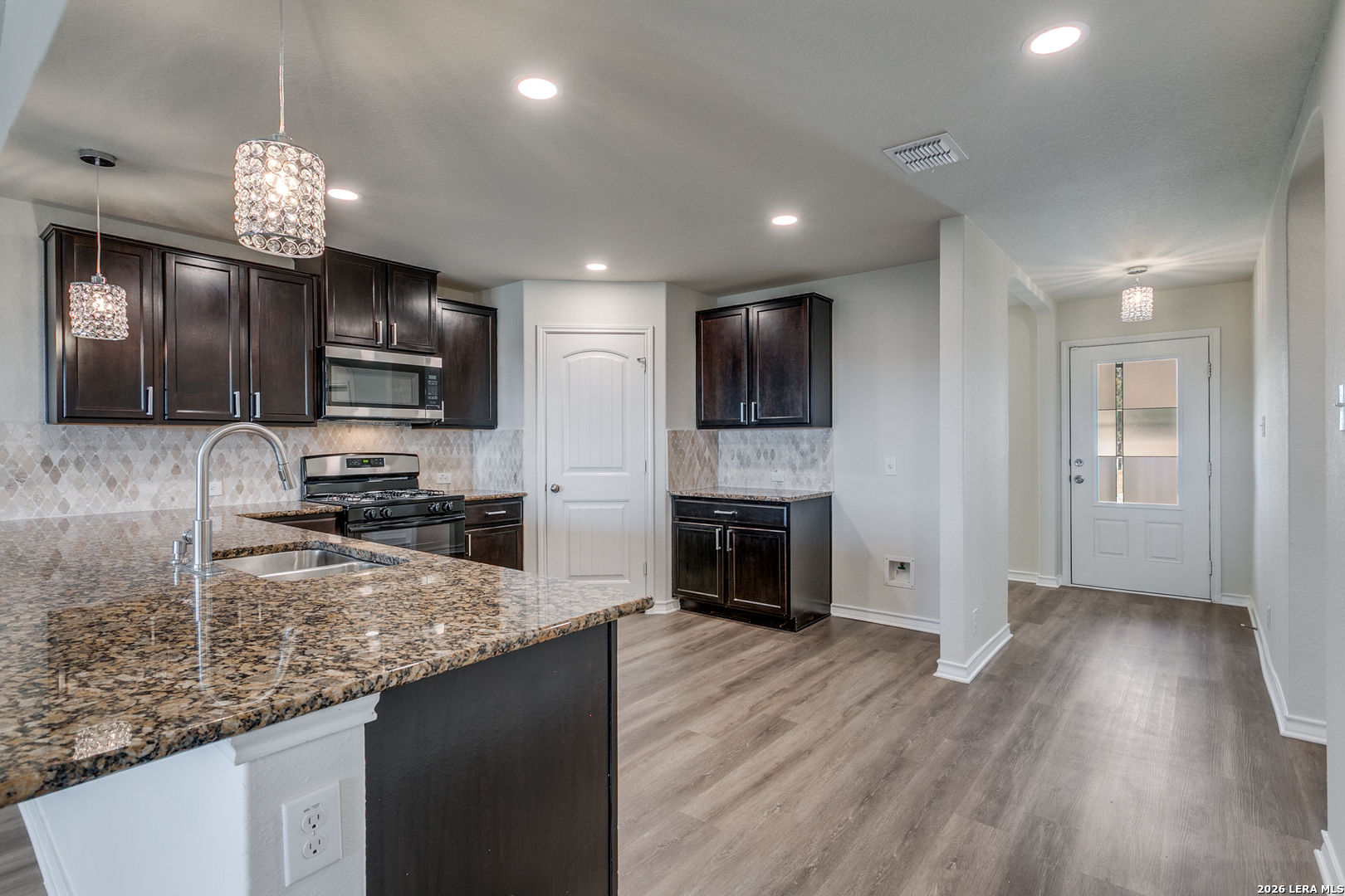 This two-story, 4-bedroom, 2.5 bath home features 2323 square feet of living space. The first floor offers a separate dining area adjacent to a large open kitchen. The kitchen opens to a spacious living room that extends to a large, covered patio, perfect for outdoor dining! Just off of the living area is a powder room and master suite which features a large walk-in closet. The second floor highlights a spacious game room, a full bath and 3 large bedrooms. FRESH PAINT, NEW WOOD FLOORING, CARPET, LIGHT FIXTURES, CEILING FANS, BACK SPLASH, RECESSED LIGHTS AND GARAGE DOOR! MOVE IN READY!