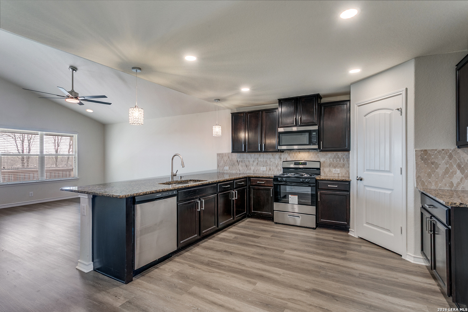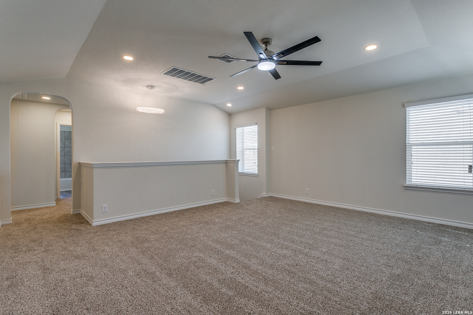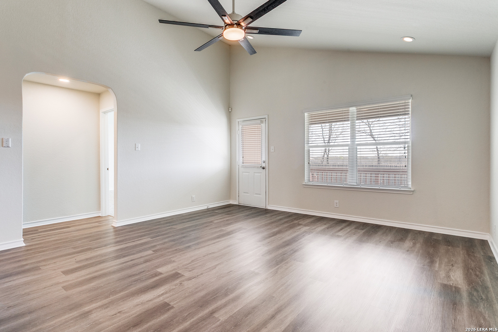 This two-story, 4-bedroom, 2.5 bath home features 2323 square feet of living space. The first floor offers a separate dining area adjacent to a large open kitchen. The kitchen opens to a spacious living room that extends to a large, covered patio, perfect for outdoor dining! Just off of the living area is a powder room and master suite which features a large walk-in closet. The second floor highlights a spacious game room, a full bath and 3 large bedrooms. FRESH PAINT, NEW WOOD FLOORING, CARPET, LIGHT FIXTURES, CEILING FANS, BACK SPLASH, RECESSED LIGHTS AND GARAGE DOOR! MOVE IN READY!