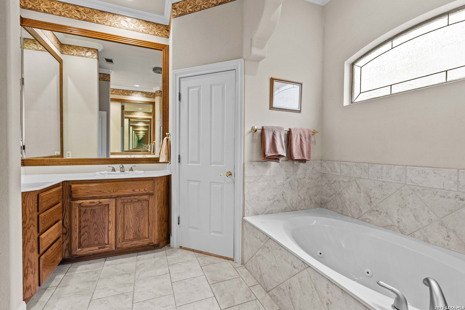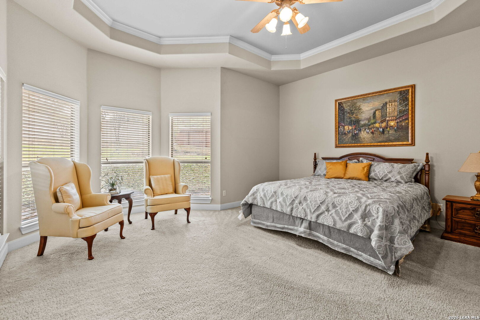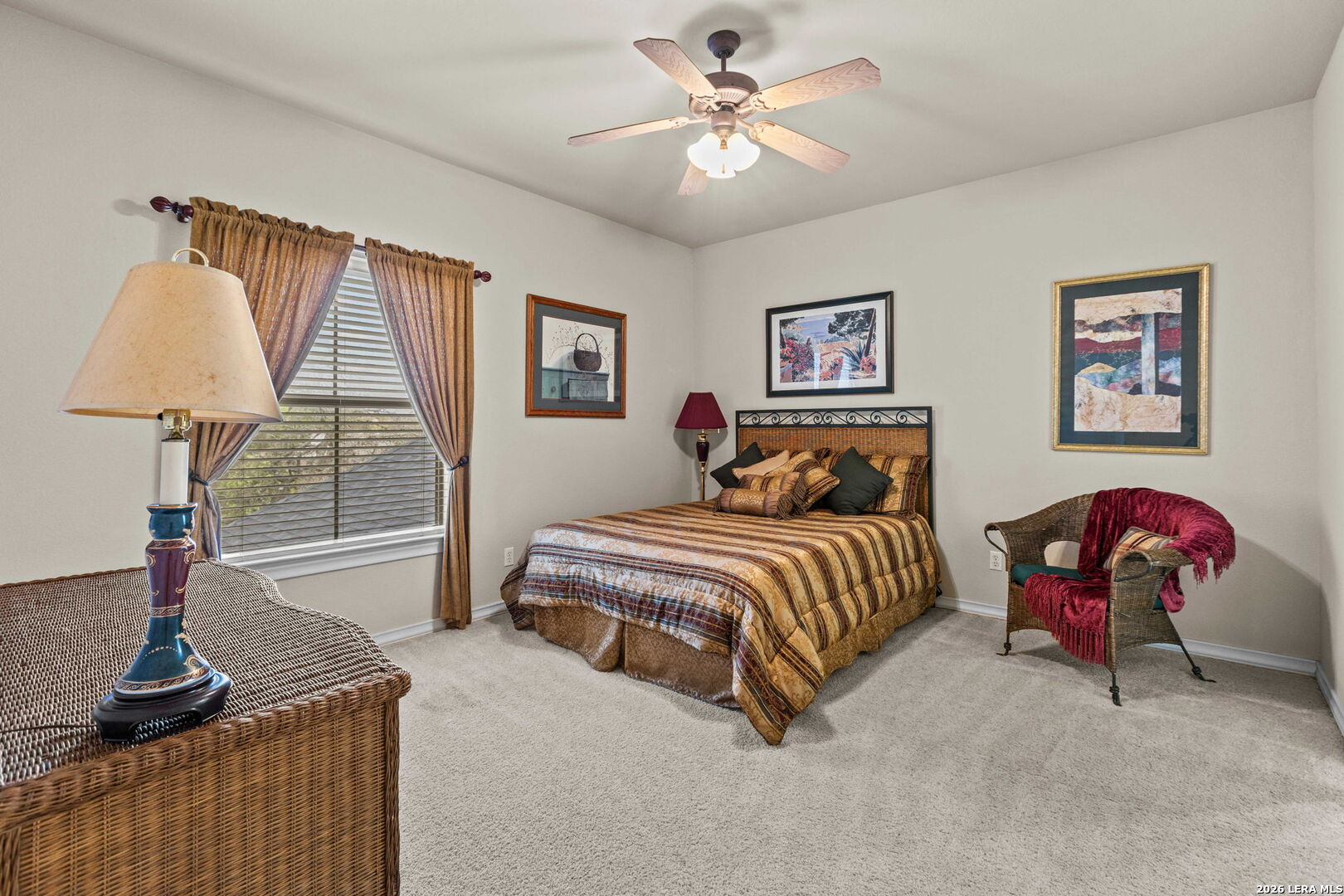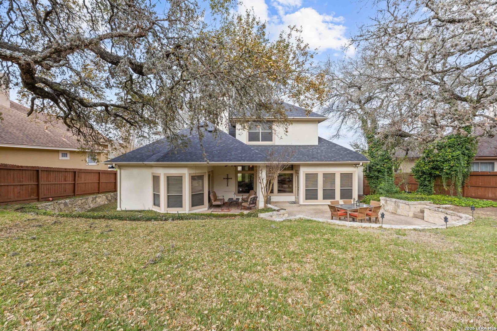 Located in the highly desirable Fair Oaks Ranch community and zoned to acclaimed Boerne ISD, this 4-bedroom, 2.5-bath home offers an incredible opportunity to get into one of the area's most sought-after neighborhoods at an attractive price point. With 2,731 square feet, this two-story layout provides flexible living space, including a secondary bedroom that can easily function as a home office. The home features a spacious living area with a stone fireplace, large windows bringing in natural light, and a kitchen with ample cabinet and counter space ready for your personal touch. The primary suite is generously sized with a tray ceiling and ensuite bath featuring a jetted tub, separate shower, and dual vanities. Secondary bedrooms offer comfortable space for family or guests. Situated on a lot with mature trees and a private backyard, the outdoor space provides room to relax or entertain. Conveniently located near the Fair Oaks Ranch Golf & Country Club, with easy access to I-10, shopping, dining, and The Rim/La Cantera. Recent updates include a roof replaced in June 2025. Refrigerator, washer, and dryer can convey, and select furniture is negotiable. This home is priced for its current condition, making it an excellent option for buyers looking to customize and build equity in a premier location.