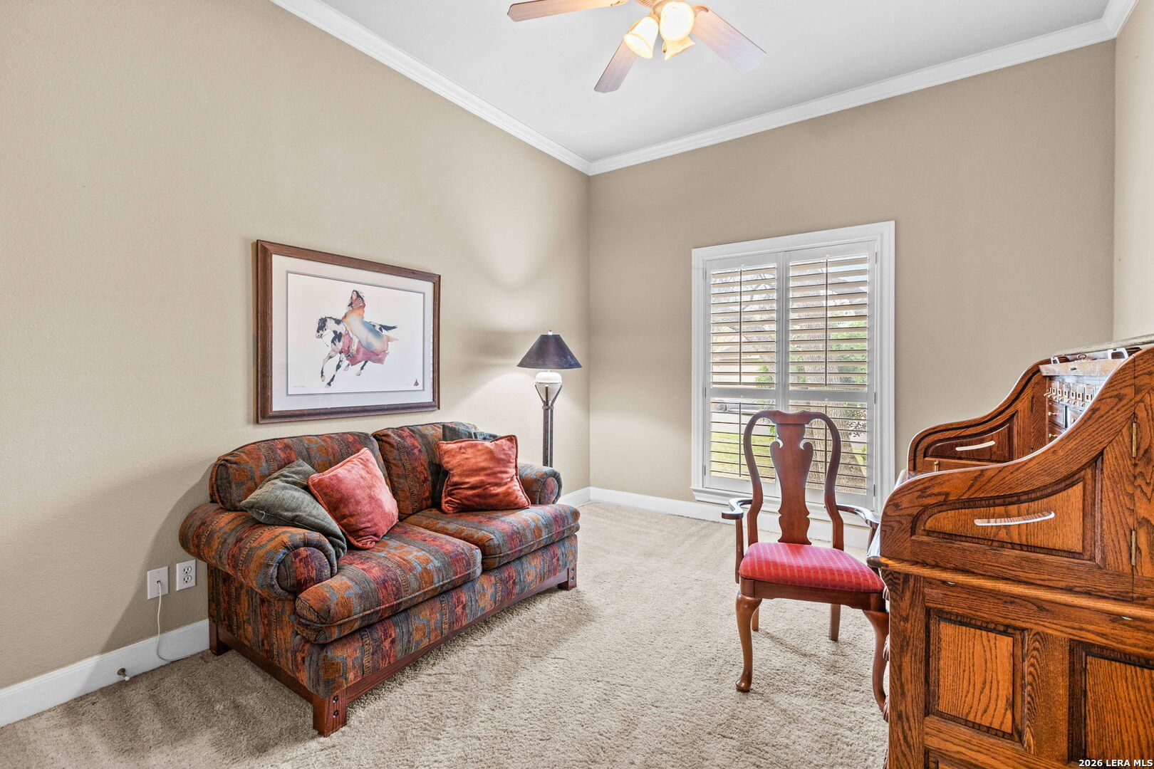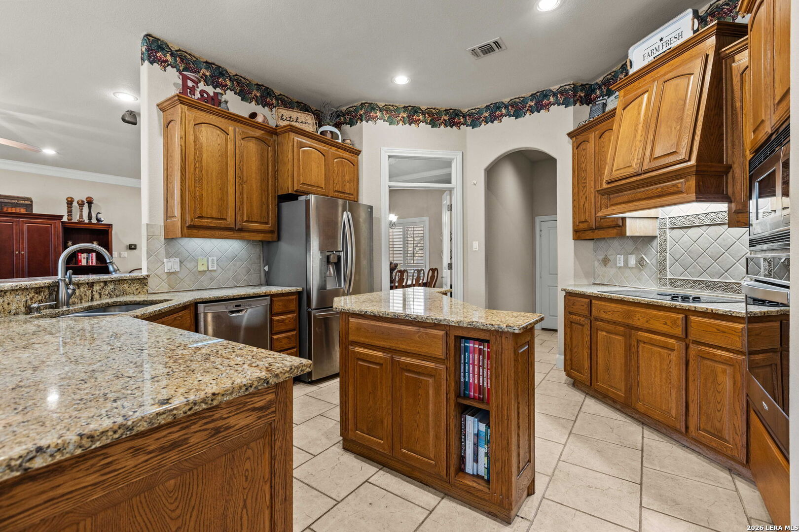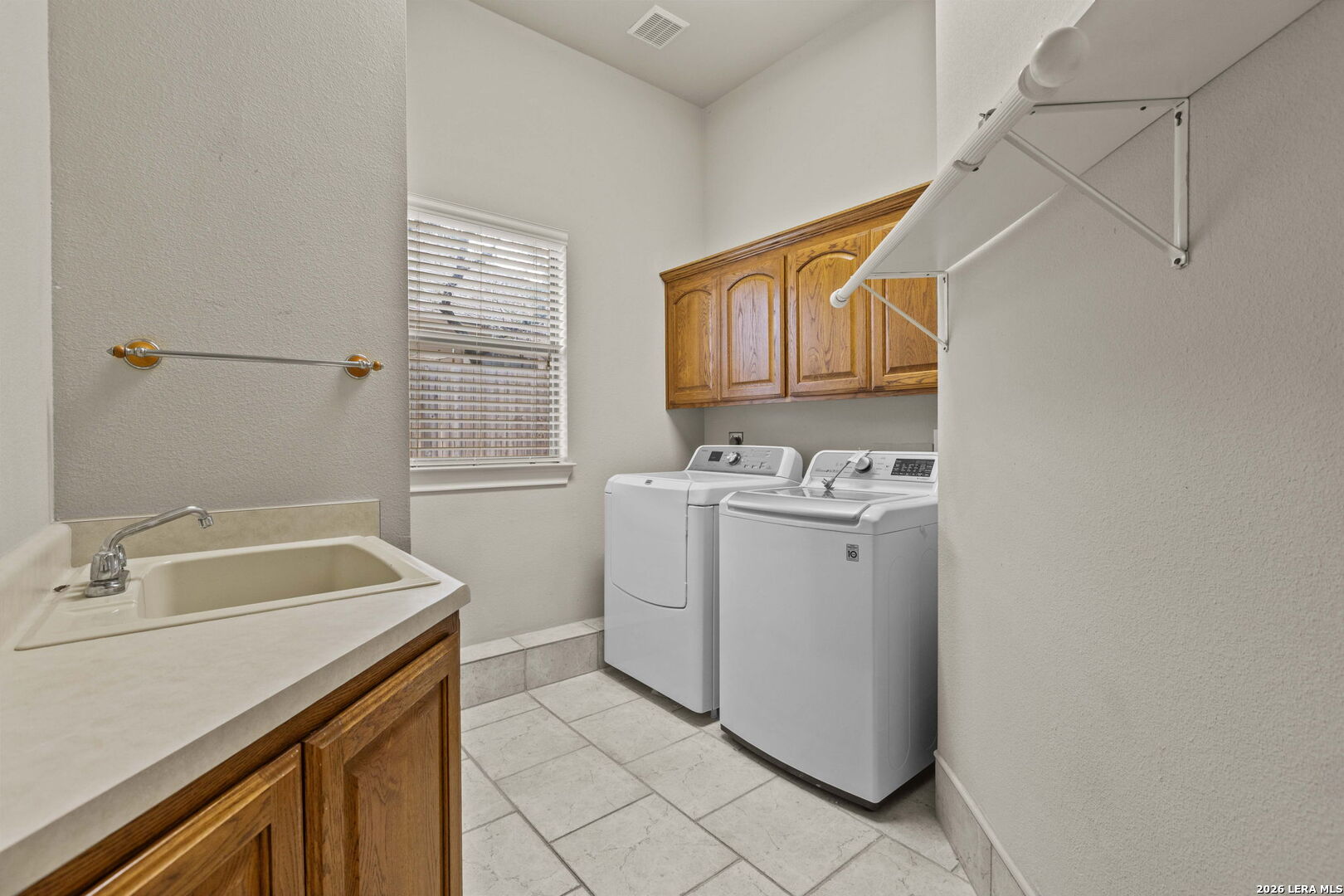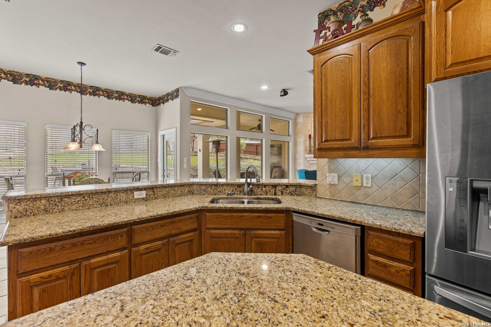 Located in the highly desirable Fair Oaks Ranch community and zoned to acclaimed Boerne ISD, this 4-bedroom, 2.5-bath home offers an incredible opportunity to get into one of the area's most sought-after neighborhoods at an attractive price point. With 2,731 square feet, this two-story layout provides flexible living space, including a secondary bedroom that can easily function as a home office. The home features a spacious living area with a stone fireplace, large windows bringing in natural light, and a kitchen with ample cabinet and counter space ready for your personal touch. The primary suite is generously sized with a tray ceiling and ensuite bath featuring a jetted tub, separate shower, and dual vanities. Secondary bedrooms offer comfortable space for family or guests. Situated on a lot with mature trees and a private backyard, the outdoor space provides room to relax or entertain. Conveniently located near the Fair Oaks Ranch Golf & Country Club, with easy access to I-10, shopping, dining, and The Rim/La Cantera. Recent updates include a roof replaced in June 2025. Refrigerator, washer, and dryer can convey, and select furniture is negotiable. This home is priced for its current condition, making it an excellent option for buyers looking to customize and build equity in a premier location.