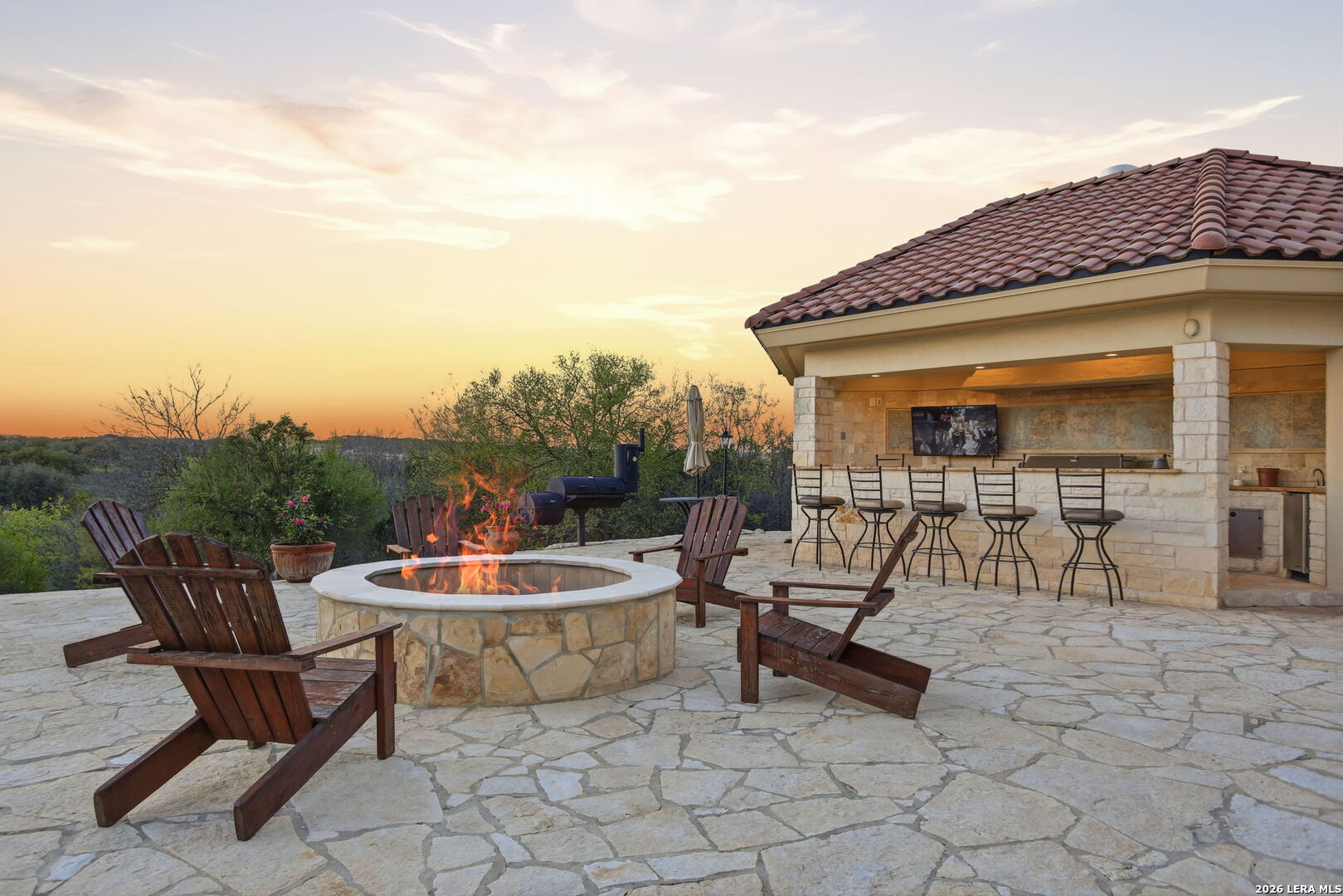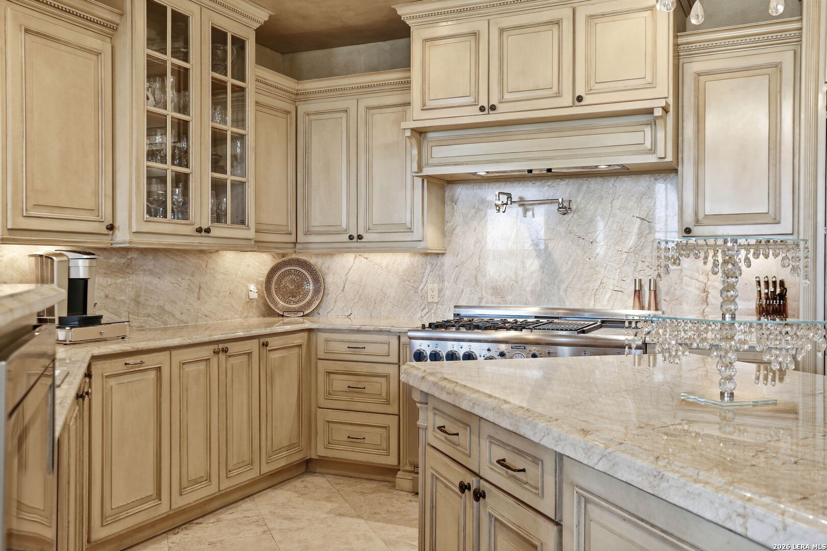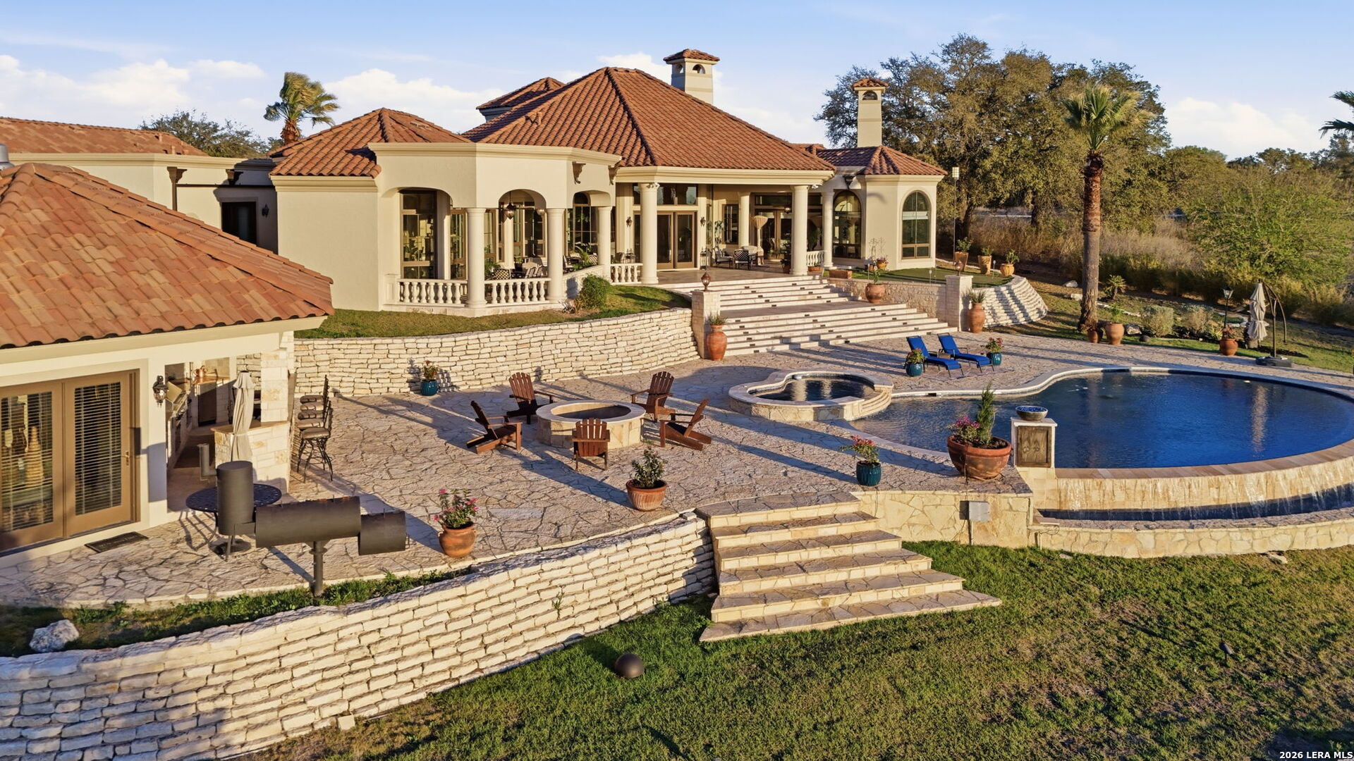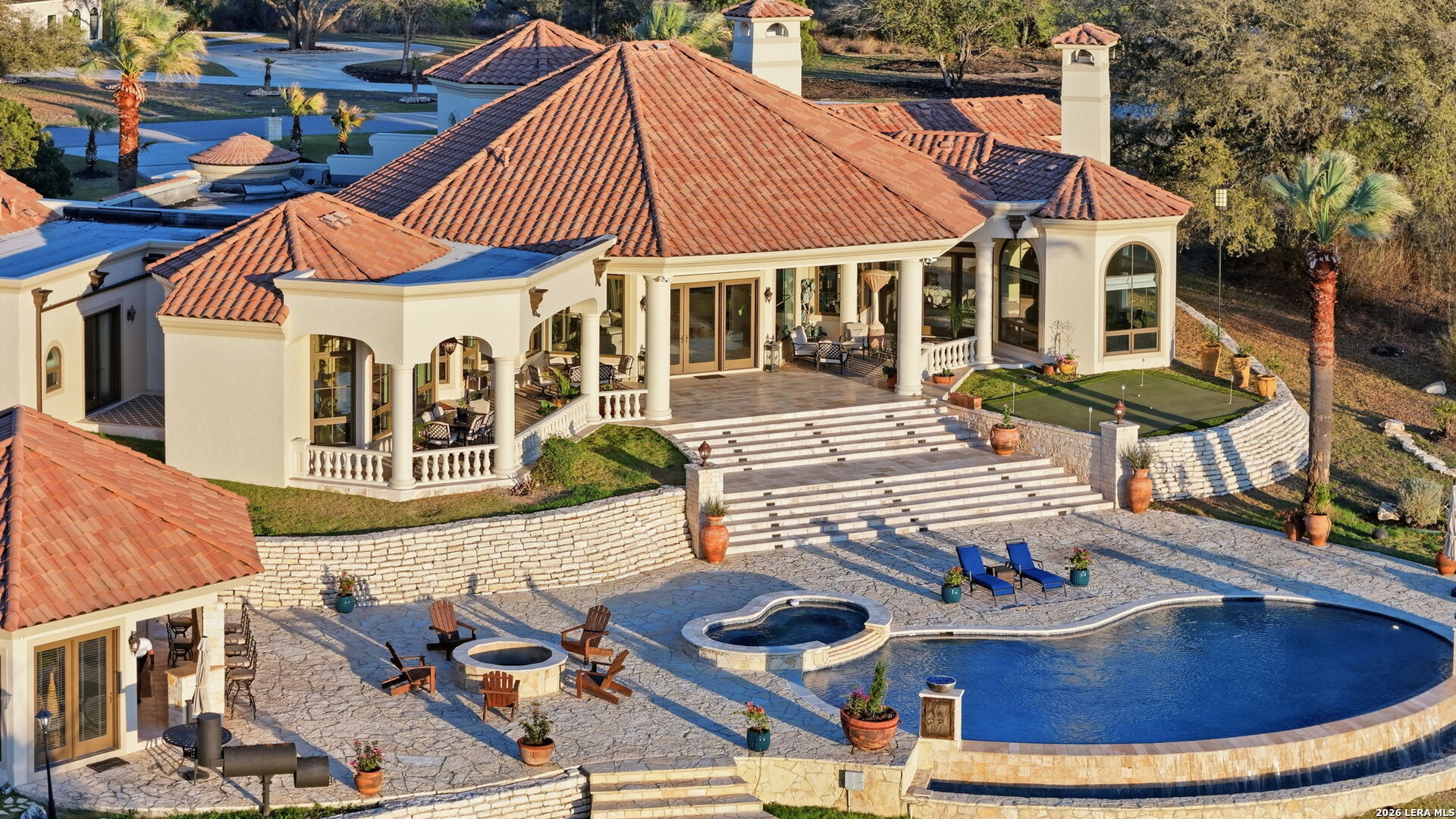 Luxury living overlooking Briggs Ranch Golf Course * Situated on nearly 2.5 acres, this exceptional estate offers breathtaking views of the Tom Fazio-designed golf course at Briggs Ranch, combining privacy, elegance, and resort-style living * The main residence features four spacious bedrooms, each with its own en suite bath * The primary suite is a true retreat, complete with a fireplace, dual custom closets, and a recently remodeled spa-inspired bathroom showcasing updated fixtures, countertops, and a beautifully redesigned shower surround * Additional highlights include a private sitting area and a dedicated workout room, both overlooking the serene putting green * Two of the three secondary guest bathrooms have been thoughtfully remodeled, enhancing comfort and style throughout the home * A well-appointed guest house provides ultimate flexibility, featuring a private bedroom with en suite bath, a separate pool bath, and an impressive outdoor kitchen equipped with a built-in gas grill, dual burners, refrigerator, offset smoker, TV, and bar-top seating-ideal for entertaining * The outdoor living experience is unmatched, with recently updated coping and tile across the expansive patio, outdoor stairways, and infinity-edge pool surround * A fire pit and additional fire features create a warm, inviting atmosphere for evening gatherings * The gourmet kitchen is designed for both function and style, boasting a Thermador gas range, built-in refrigerator, updated countertops, new fixtures, and dual refrigeration drawers within the island * Additional upgrades and features include: Whole-home Sonos sound system (indoor and outdoor) * Surround sound system in the family room Power lift for garage storage * Enhanced street presence with added pedestals * Proximity to a newer H-E-B, movie theater, and two premier golf courses * This remarkable property blends luxury, comfort, and entertainment in one of the area's most desirable golf course communities * Most furnishings are for sale or negotiable *