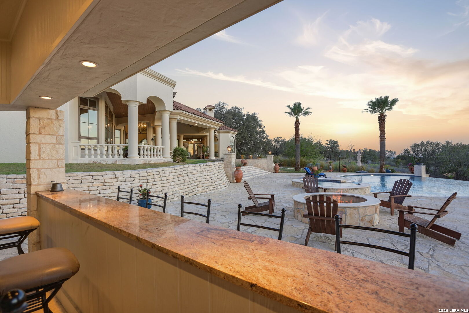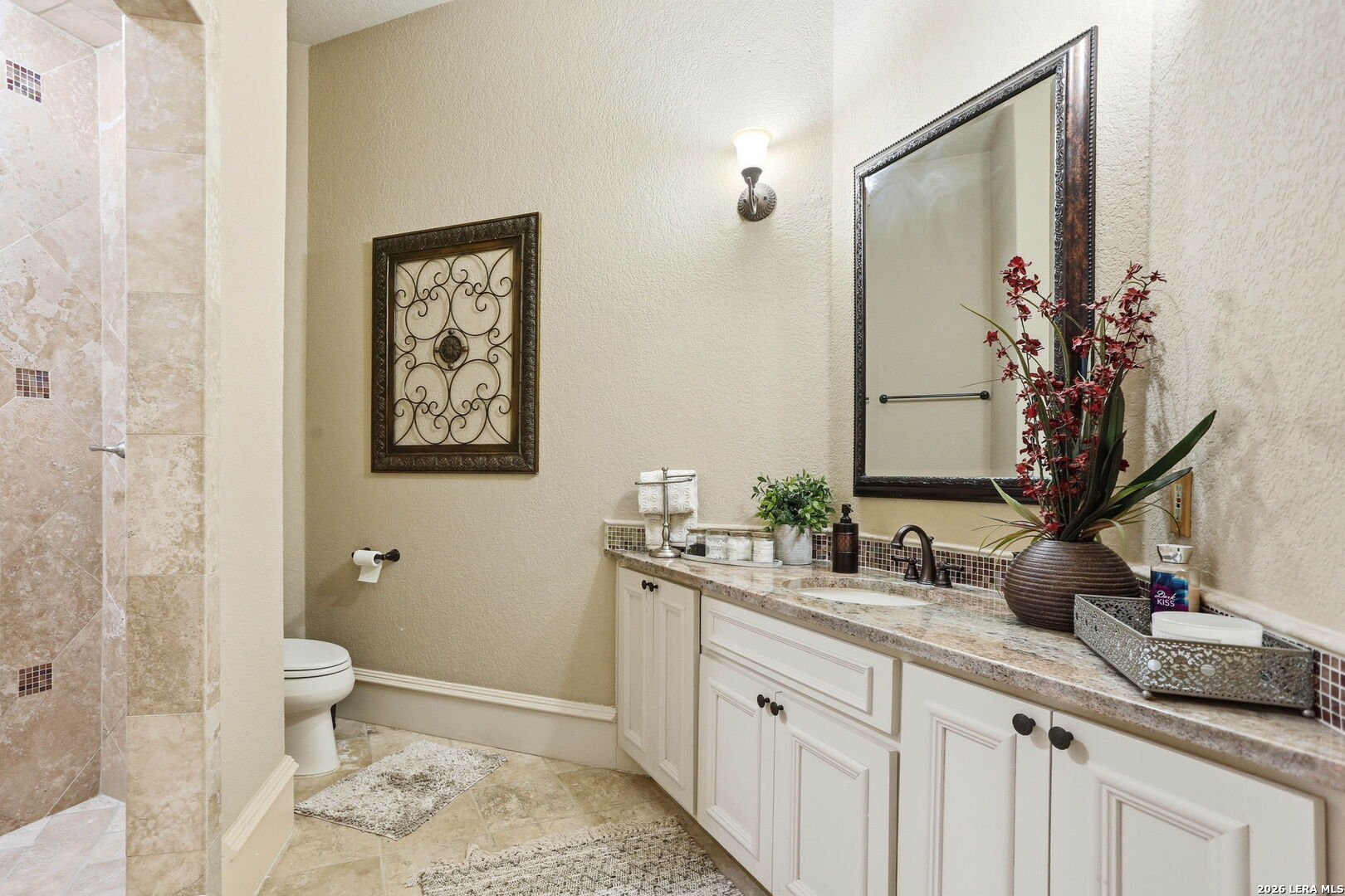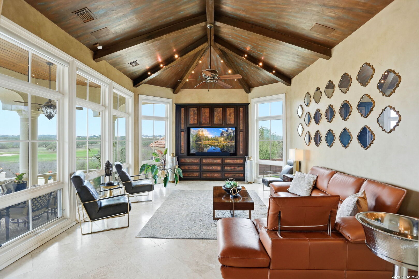Luxury living overlooking Briggs Ranch Golf Course * Situated on nearly 2.5 acres, this exceptional estate offers breathtaking views of the Tom Fazio-designed golf course at Briggs Ranch, combining privacy, elegance, and resort-style living * The main residence features four spacious bedrooms, each with its own en suite bath * The primary suite is a true retreat, complete with a fireplace, dual custom closets, and a recently remodeled spa-inspired bathroom showcasing updated fixtures, countertops, and a beautifully redesigned shower surround * Additional highlights include a private sitting area and a dedicated workout room, both overlooking the serene putting green * Two of the three secondary guest bathrooms have been thoughtfully remodeled, enhancing comfort and style throughout the home * A well-appointed guest house provides ultimate flexibility, featuring a private bedroom with en suite bath, a separate pool bath, and an impressive outdoor kitchen equipped with a built-in gas grill, dual burners, refrigerator, offset smoker, TV, and bar-top seating-ideal for entertaining * The outdoor living experience is unmatched, with recently updated coping and tile across the expansive patio, outdoor stairways, and infinity-edge pool surround * A fire pit and additional fire features create a warm, inviting atmosphere for evening gatherings * The gourmet kitchen is designed for both function and style, boasting a Thermador gas range, built-in refrigerator, updated countertops, new fixtures, and dual refrigeration drawers within the island * Additional upgrades and features include: Whole-home Sonos sound system (indoor and outdoor) * Surround sound system in the family room Power lift for garage storage * Enhanced street presence with added pedestals * Proximity to a newer H-E-B, movie theater, and two premier golf courses * This remarkable property blends luxury, comfort, and entertainment in one of the area's most desirable golf course communities * Most furnishings are for sale or negotiable *