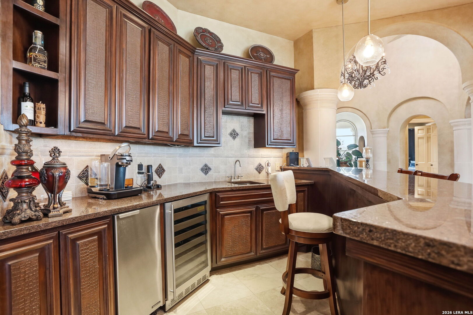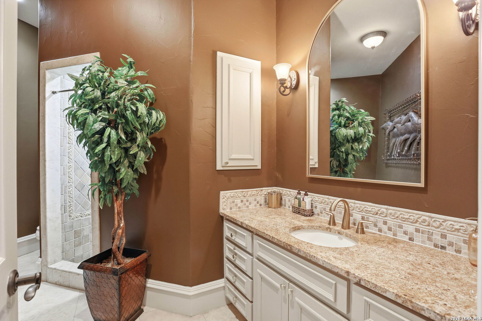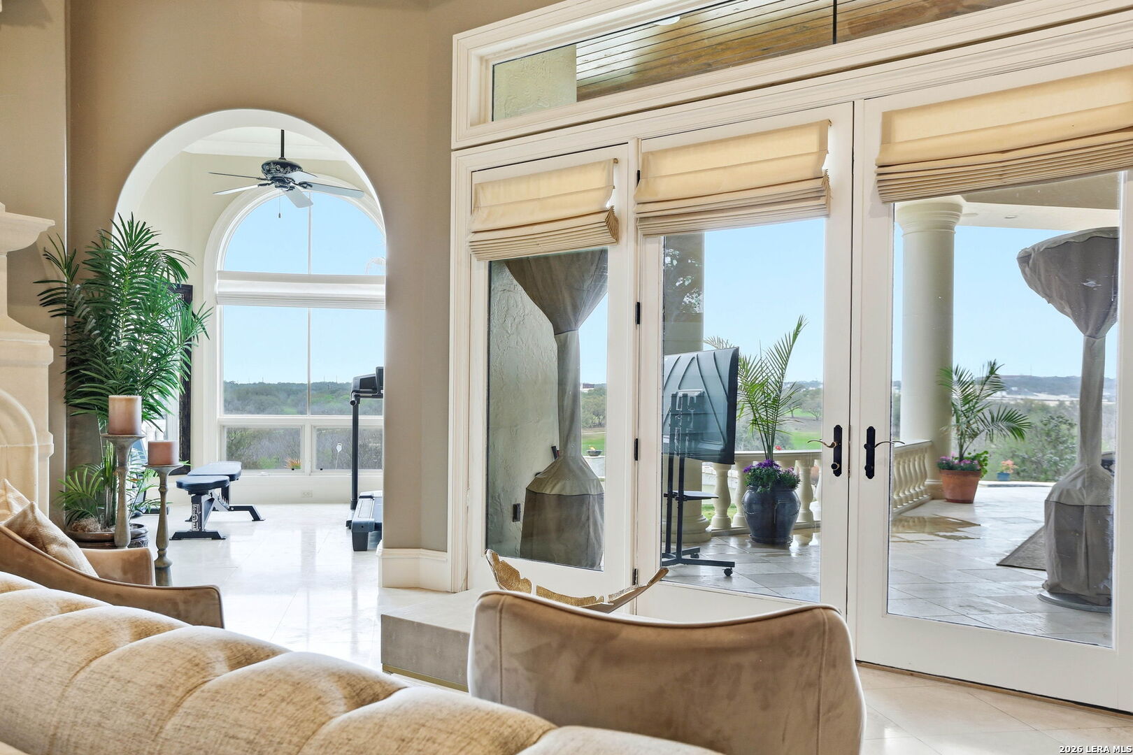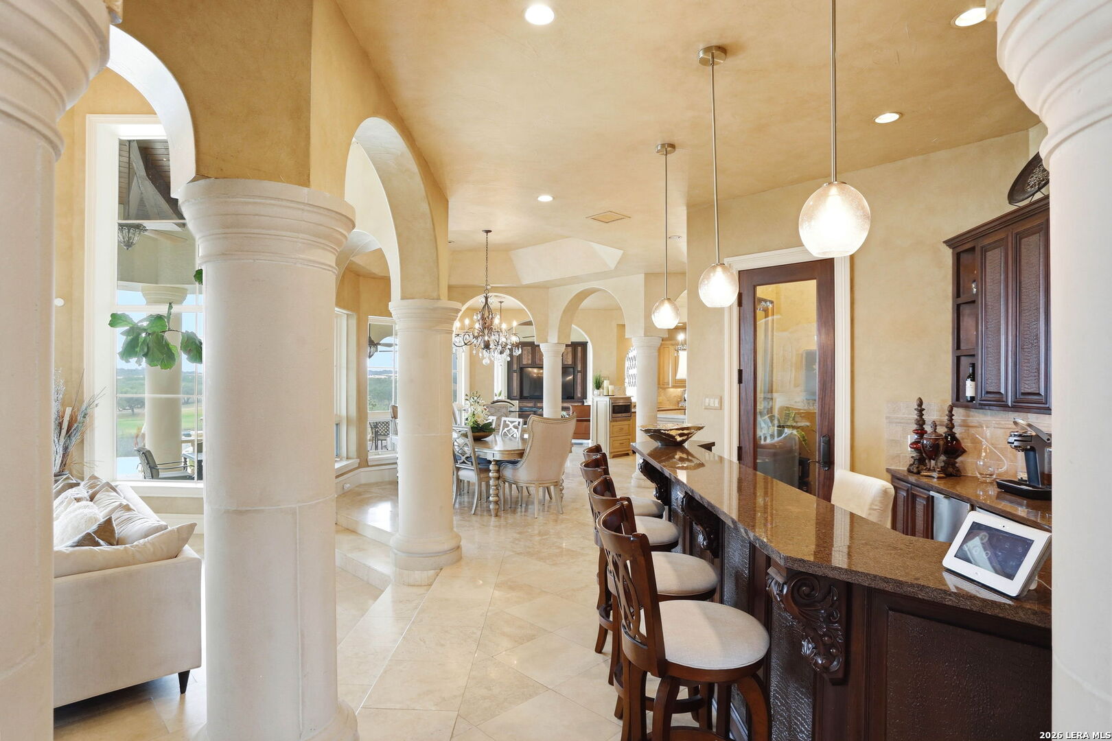Luxury living overlooking Briggs Ranch Golf Course * Situated on nearly 2.5 acres, this exceptional estate offers breathtaking views of the Tom Fazio-designed golf course at Briggs Ranch, combining privacy, elegance, and resort-style living * The main residence features four spacious bedrooms, each with its own en suite bath * The primary suite is a true retreat, complete with a fireplace, dual custom closets, and a recently remodeled spa-inspired bathroom showcasing updated fixtures, countertops, and a beautifully redesigned shower surround * Additional highlights include a private sitting area and a dedicated workout room, both overlooking the serene putting green * Two of the three secondary guest bathrooms have been thoughtfully remodeled, enhancing comfort and style throughout the home * A well-appointed guest house provides ultimate flexibility, featuring a private bedroom with en suite bath, a separate pool bath, and an impressive outdoor kitchen equipped with a built-in gas grill, dual burners, refrigerator, offset smoker, TV, and bar-top seating-ideal for entertaining * The outdoor living experience is unmatched, with recently updated coping and tile across the expansive patio, outdoor stairways, and infinity-edge pool surround * A fire pit and additional fire features create a warm, inviting atmosphere for evening gatherings * The gourmet kitchen is designed for both function and style, boasting a Thermador gas range, built-in refrigerator, updated countertops, new fixtures, and dual refrigeration drawers within the island * Additional upgrades and features include: Whole-home Sonos sound system (indoor and outdoor) * Surround sound system in the family room Power lift for garage storage * Enhanced street presence with added pedestals * Proximity to a newer H-E-B, movie theater, and two premier golf courses * This remarkable property blends luxury, comfort, and entertainment in one of the area's most desirable golf course communities * Most furnishings are for sale or negotiable *