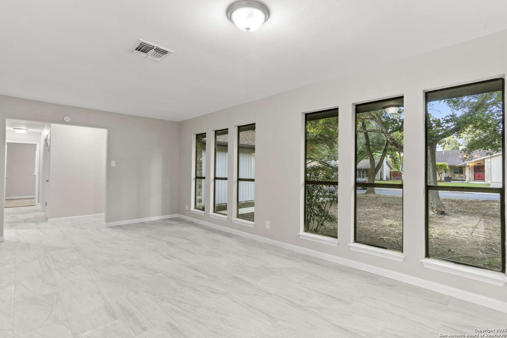Beautiful home in the popular and established McAllister Park area is now available for new owners. Conveniently located near McAllister Park, the airport, Wurzbach Parkway, and Loop 1604, this refreshed single-story home features an all-level interior with no steps. The floor plan flows well and has a very spacious feeling. Two living areas, formal dining area, family room, and breakfast nook. The house is on a very quiet street and is surrounded by mature trees. The family room features a gas-fired fireplace, and the kitchen boasts ample counter space for meal preparation and extensive storage. This home is move-in ready and eager to please new owners. Be sure to check out the virtual 3D Matterport Tour.