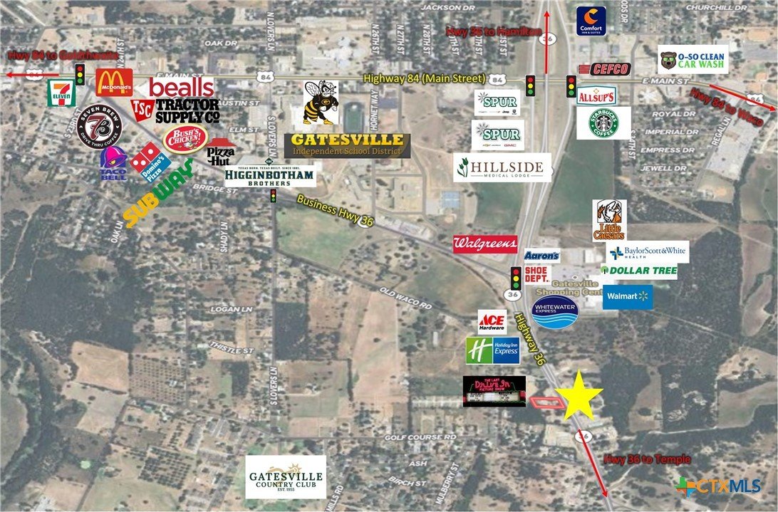 High-visibility commercial tract on Hwy 36 in Gatesville, TX with over 12,000 vehicles per day. Located near Walmart, Walgreens, Starbucks, Tractor Supply, and other national retailers, this property sits in the heart of Gatesville’s primary retail corridor. A new apartment complex is planned across the street, adding future customer demand. With expanding fiber internet, city utilities, and close proximity to Waco, Temple, and Killeen, this is an excellent opportunity for retail, restaurant, or franchise development in Central Texas.