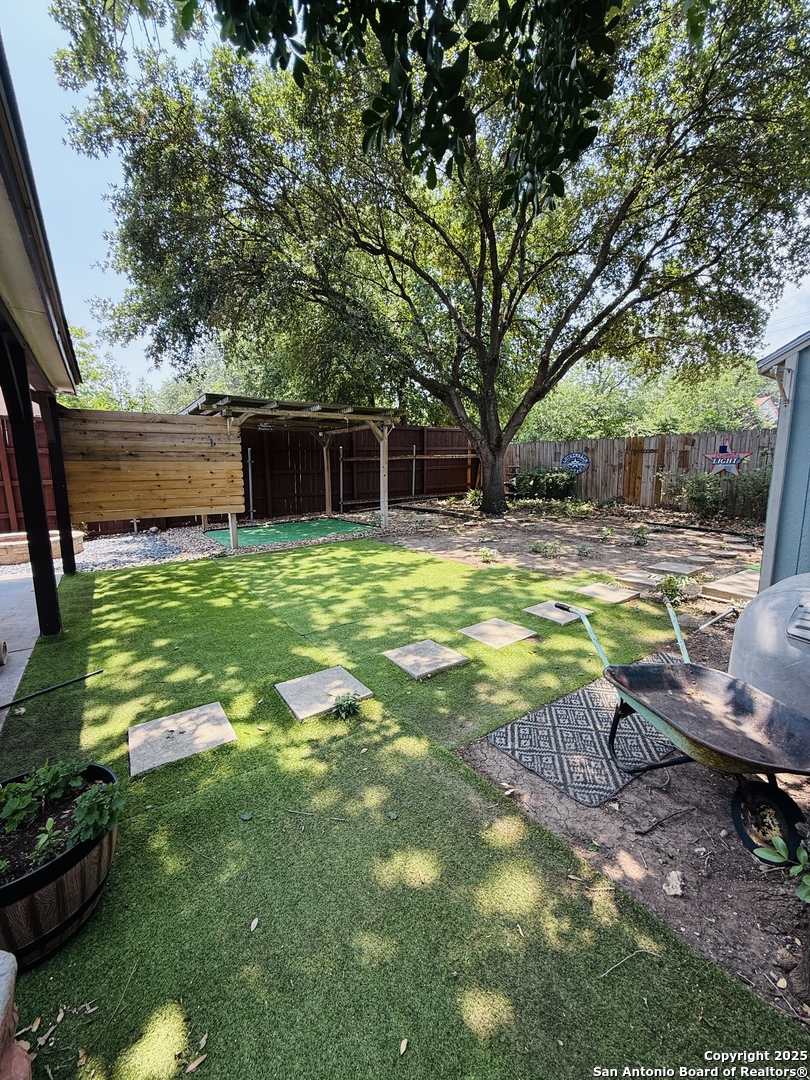 This charming 3-bedroom, 2.5-bath home offers 1,517 sqft of living space plus a converted garage that serves as a versatile bonus room. Perfect for a fourth bedroom, home office, or extra living area. Conveniently located near Loop 1604 and Hwy 90, you'll enjoy quick access to downtown San Antonio, military bases, shopping, dining, and fun attractions like SeaWorld and Six Flags Fiesta Texas. The home features a functional layout with modern touches, and the tastefully decorated backyard is perfect for rela