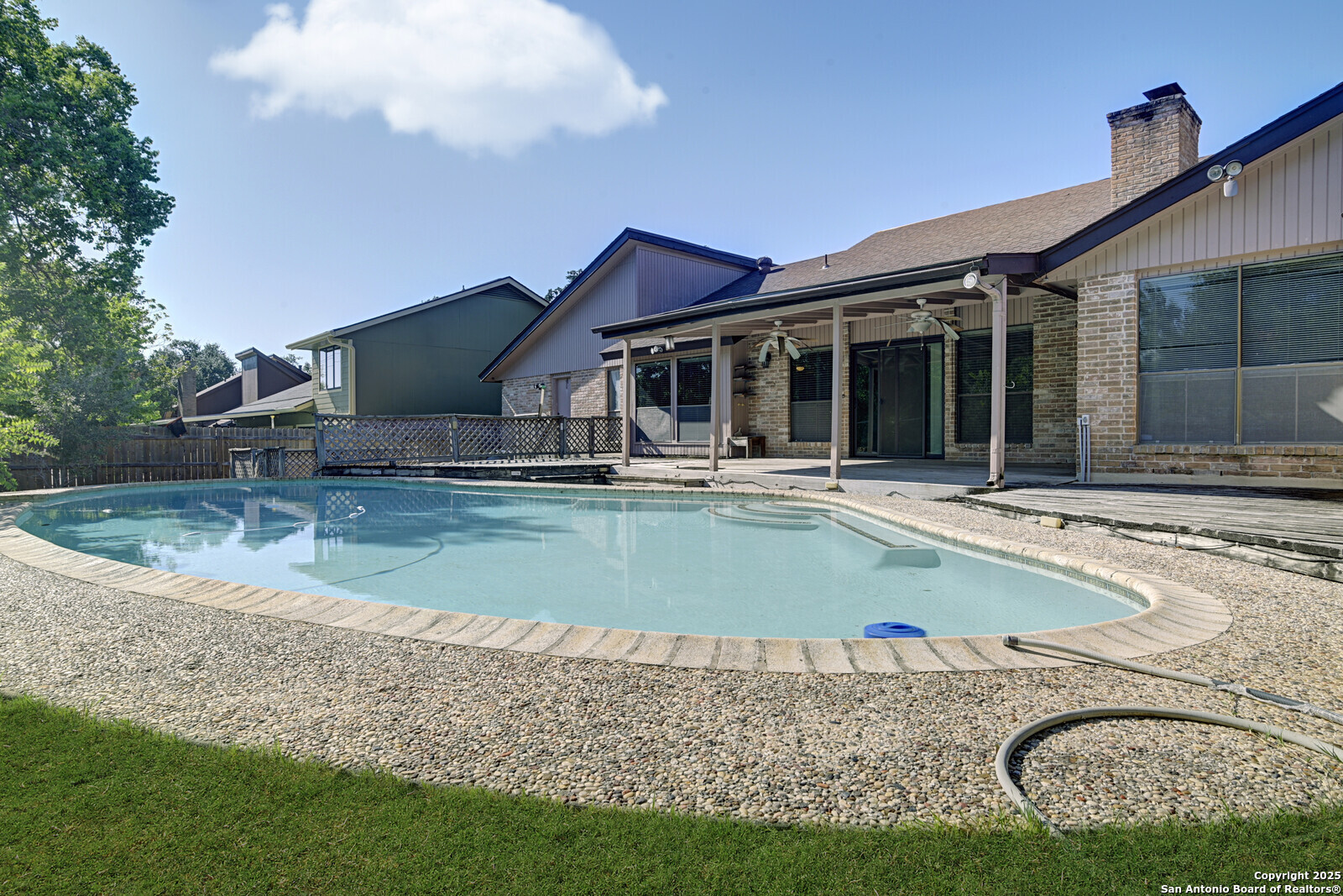 Flash back to 1977 this charming 1-Story Home with Pool is nestled in a peaceful greenbelt setting. 4 bedroom, 2.5 bathroom, 2+ garage home offers a spacious and open layout with room to grow. A/C is newer and the pool was more recently re-plastered. This lot is an ideal place for outdoor living and relaxation. Inside, the home maintains its original character, providing a blank canvas for those eager to update and make it their own. Whether you're envisioning a modern renovation or a more classic design, this home is ready for someone to bring it to 2025 and then yell "move that bus" !