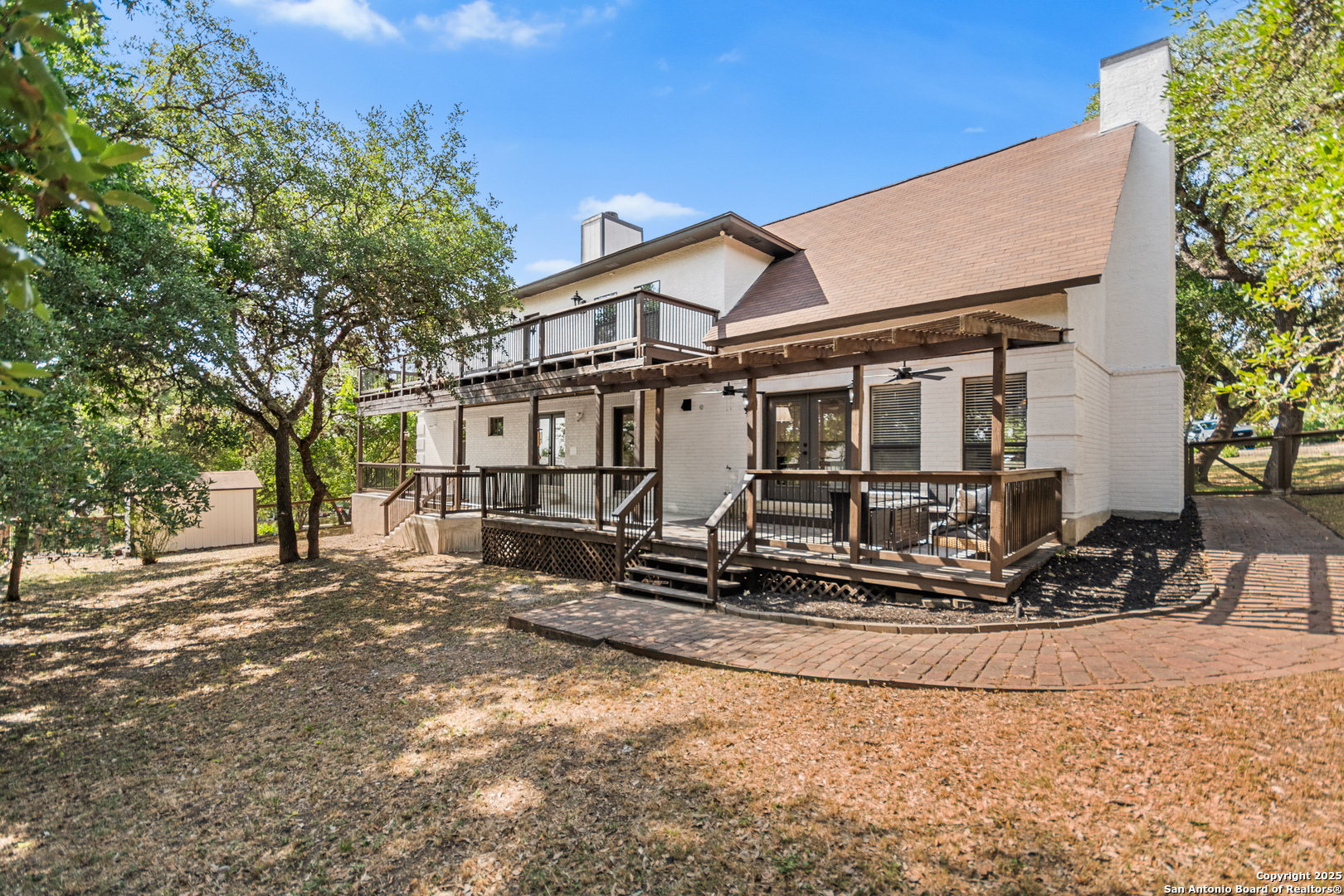 ** Welcome to your dream home in one of the area's most sought-after neighborhoods- Fair Oaks Ranch minutes from the golf course and just a short walk to the local elementary school & clubhouse! This beautifully renovated 5 bed, 3.5 bath stunner sits on a spacious half-acre corner lot and offers unbeatable curb appeal with a wraparound porch on both levels of the home making it perfect for relaxing and soaking in the hill country views! Off the primary bedroom the views you can see for 100 miles! Inside, this completely renovated home features elegant finishes throughout, including show-stopping waterfall countertops, vaulted ceilings, and a floor-to-ceiling fireplace that anchors the main living space. Two bedrooms on the main level offer flexibility for guests, a home office, or multi-generational living. Home has access to GOOGLE FIBER! perfect for remote workers that need high speed Internet. Don't forget the world class area amenities including close proximity to a Gary Player designed golf course that offers members 36 holes of golf excellence. Both par-72 courses, dining, year-round club house events/music, fitness center, swimming, racquet sports and more! Location is prime being only 20- 25 minutes away from the international airport, main San Antonio area medical centers, and less than a 10 minute drive to the nearest grocery store! Every inch of this home has been thoughtfully updated inside and out-move-in ready and perfect for entertaining or everyday luxury living. Don't miss the chance to own a slice of paradise with views that truly speak for themselves!