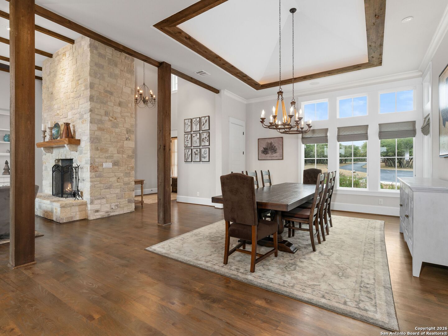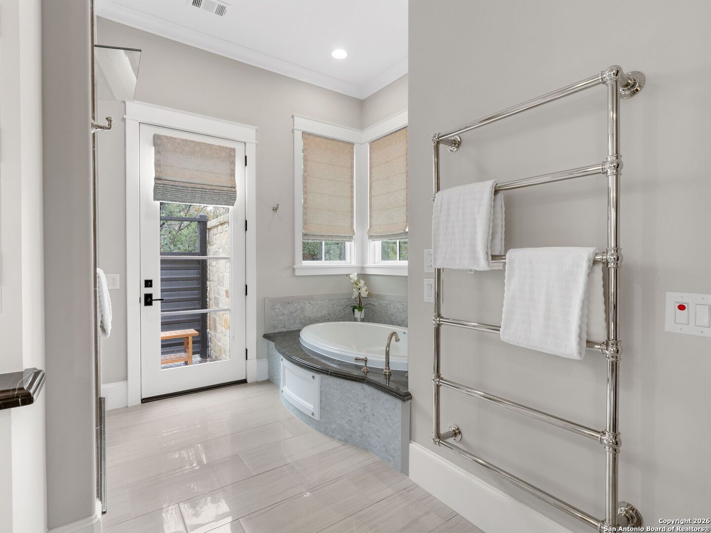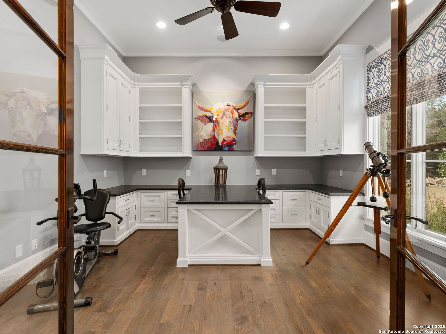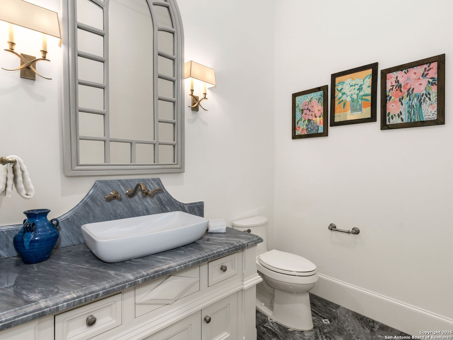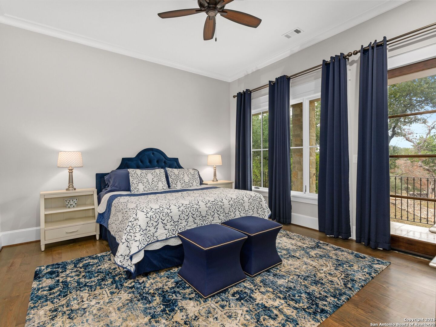 This Hill Country Masterpiece sits on 3.63 acres on a bluff forty feet above the Medina River with 3 bedrooms, 2 full baths and 2 half baths. The 872 sq ft Casita has an additional large bedroom and full bath. Enter the home's foyer featuring an eighteen foot ceiling and stone wall floor to ceiling. The home centers around a great room with a fourteen foot high beamed ceiling and fireplace with a view of the pool and river bluff. One side of the home features a large primary bedroom with vaulted beamed ceiling, large primary bath with ceiling treatment including a whirlpool tub, large shower, access to the outdoor shower, walk in closet with marble island, a dressing table and a separate storage room that also has access to the home office. Also off the foyer is the formal powder room and study. Back to the great room to view an open area that includes dining room with ceiling treatment, island kitchen with lots of storage and a separate bar with sit down counter. Bar has an under counter wine refrigerator and ice maker. Walk through the kitchen to the rear hall to find a bedroom with ensuite bath, secondary powder room, pantry and utility room. Exit here to find the three car garage with mop sink, work counters and extra storage. A walkway from the pool leads you to the Casita. Along the path are steps that lead down to a flagstone deck with swing facing the river and a large fire pit for cool calm evenings and star gazing. Many more custom features in Additional Information.