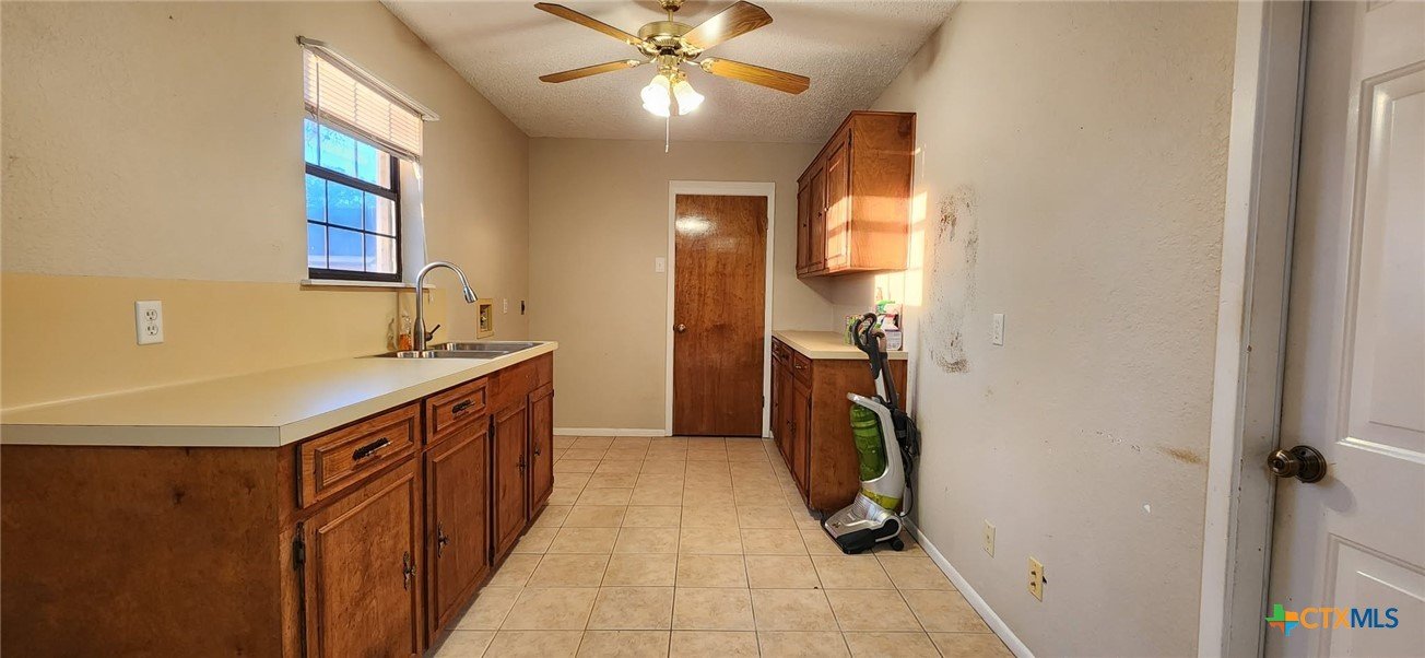 Experience breathtaking sunsets from your back porch in this three bedroom, two and a half bath home on 2.63 secluded acres in Goliad County. Designed with functionality in mind, this home features abundance storage, ample kitchen cabinets and counters, and an oversized utility room. An attached two car garage, along with a detached two car garage and shop is the perfect space for your workshop or hobby needs. The striking fireplace serves as the focal point in the living area, complimented by natural light and direct access to the covered patio. The primary room offers a walk-in closet, along with an additional closet lined with shelves. This home is located in a great area with a short drive to Goliad, Yorktown, or Cuero. Don't miss out on this serene country living!