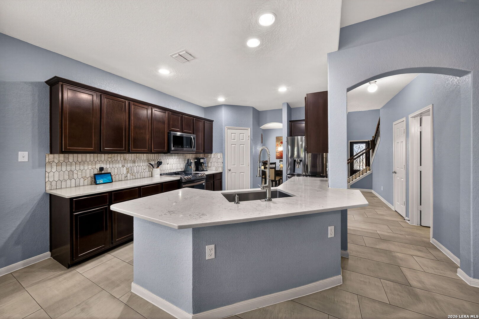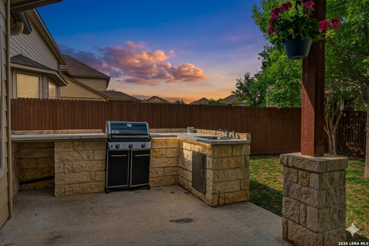 Experience luxury and comfort in this beautifully updated five-bedroom, 3.5-bathroom home, designed for both relaxed living and high-end entertaining. The heart of the home features a stunning, modern kitchen equipped with sleek quartz countertops and an abundance of cabinet space for the home chef. The updates continue into the primary suite, where the spa-like bathroom offers a true retreat, complete with a contemporary standalone tub and a beautifully tiled walk-in shower. Upstairs, the home opens up into a large game room-perfect for movie nights or a play area. This level also features: a private balcony offering a quiet spot for morning coffee, four additional bedrooms- two of them are connected by a convenient Jack-and-Jill bathroom, as well as an additional separate full bath, offering both privacy and ease for family or guests. With five spacious bedrooms, three and a half bathrooms, a dedicated office, and game room, there is plenty of room for family & guests. Let's step outside to your very own private oasis! The extended covered patio is a showstopper, featuring a fully equipped outdoor kitchen perfect for summer BBQs. The meticulously maintained backyard also includes a sturdy storage shed, providing extra space for tools and hobbies. Enjoy unmatched accessibility with a location designed for a seamless lifestyle: Minutes from Hwy-90, Loop 1604, Loop 410, and TX-151 making any commute across San Antonio effortless. Ideally situated just 8 miles from Lackland Air Force Base, providing a quick and easy drive for military personnel. All within a 5-mile radius, you'll find a wide array of shopping, popular restaurants, and entertainment options to explore. This home perfectly blends a high-end lifestyle with everyday convenience. It's the ideal home for your family's next chapter. Don't miss your chance to see it!