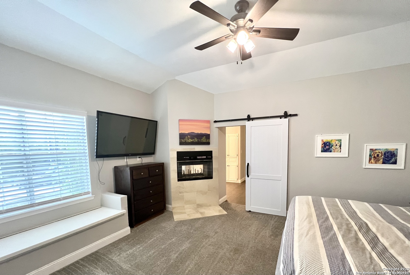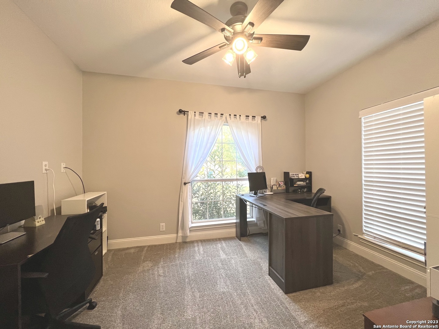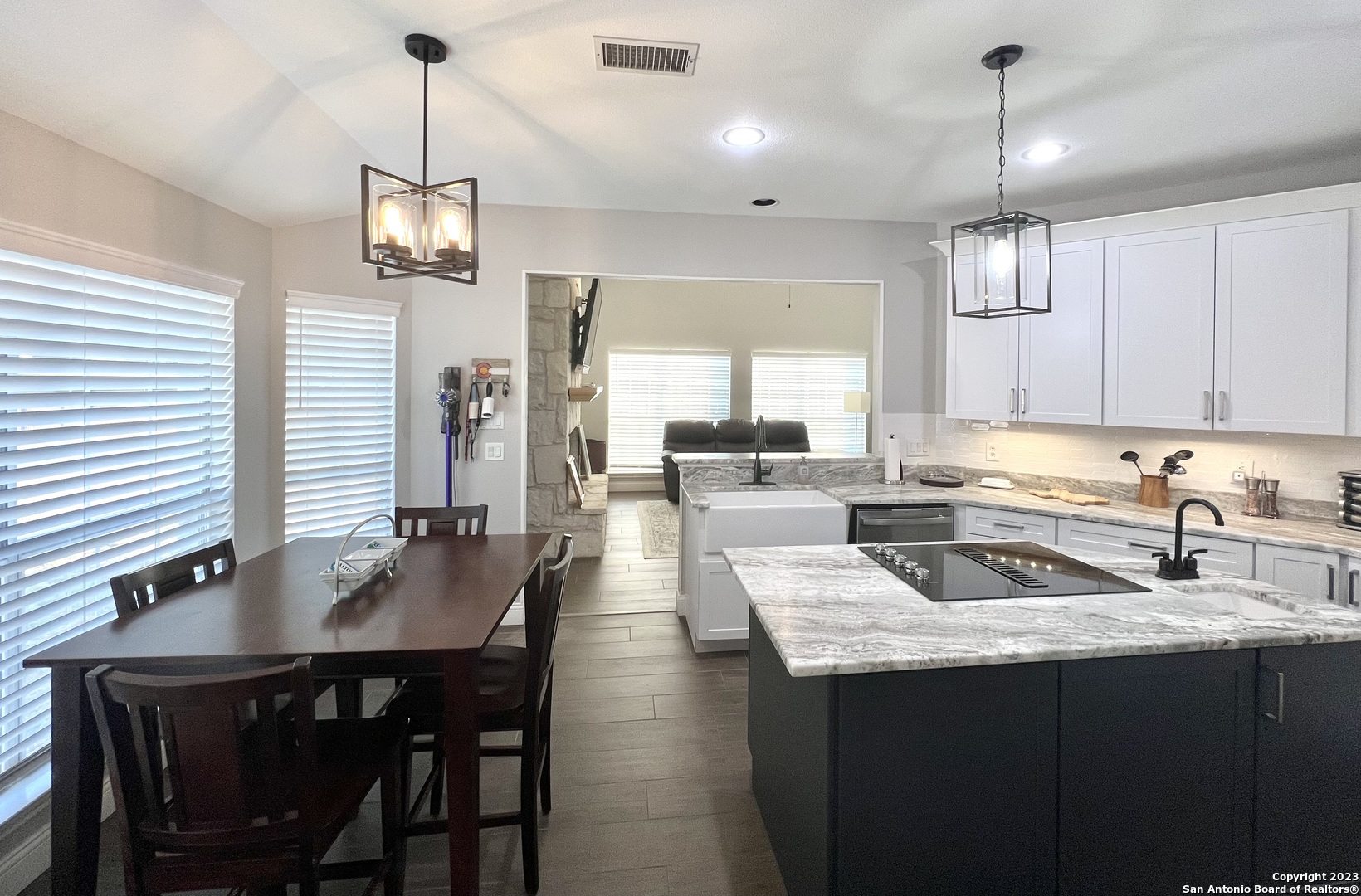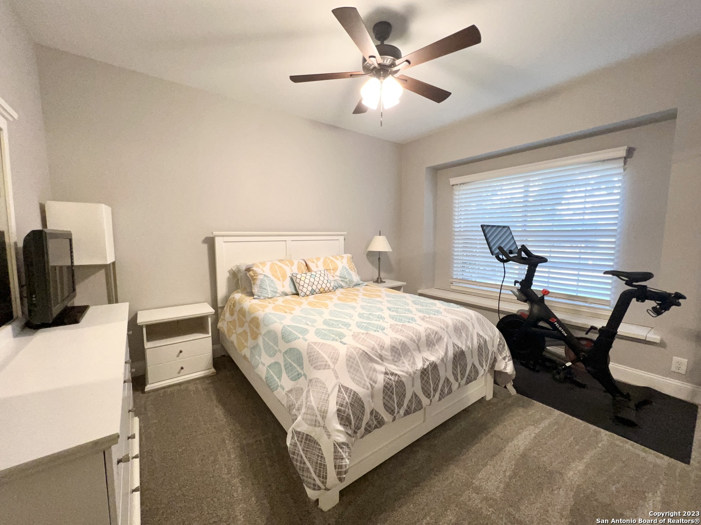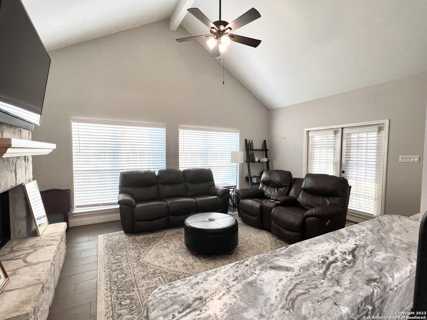 Rare find...tasteful, extensively remodeled Fair Oaks Ranch golf course home with pool! Enjoy fantastic, set-back views of the golf course from back patio/pool on .49 acre, cul-de-sac lot. Custom, rock one-story home has 3 bedrooms/2.5 baths/2.5 garage, 3 fireplaces & skylights for added light. Open floor plan flows with 2 living areas split by updated wet bar, formal dining, kitchen with breakfast, two secondary bedrooms with shared bath, & study/office. Gorgeous wood-look porcelain tile, newer light fixtures/ceiling fans, & fresh paint/carpet throughout home interior. Stunning kitchen has updated cabinets, appliances, granite & backsplash. Spa-like master bath suite w/fireplace has soaking tub, beautiful shower, updated granite counters, & private access to pool. Secondary bath has new tub/tile and granite counters on sinks. Entertainers delight with patio/semi-private pool/expanded fenced area. Excellent Boerne ISD schools & Fair Oaks Ranch Community. The Rim/La Cantera shopping are minutes away. Don't miss this opportunity to be on the Fair Oaks Ranch golf course!