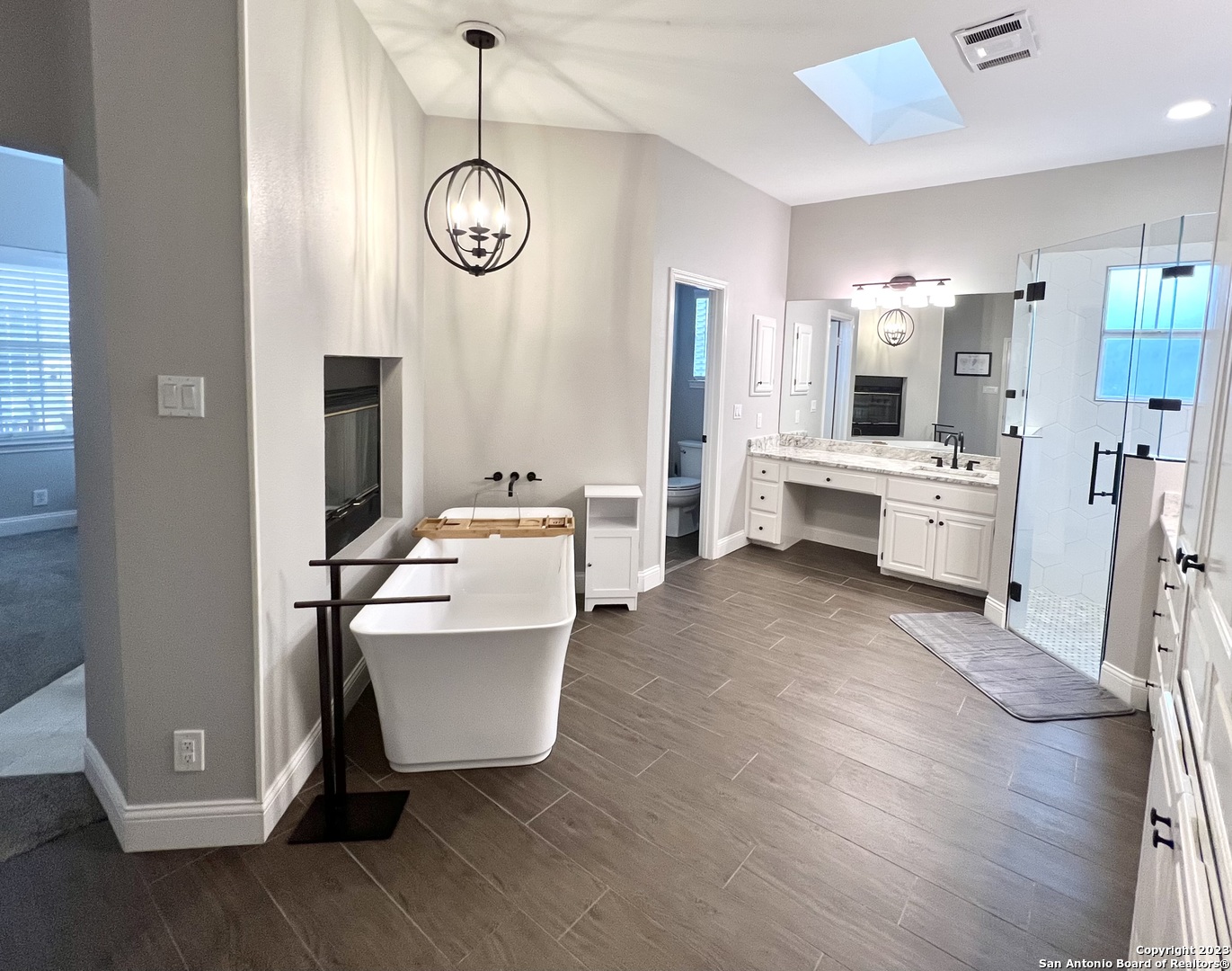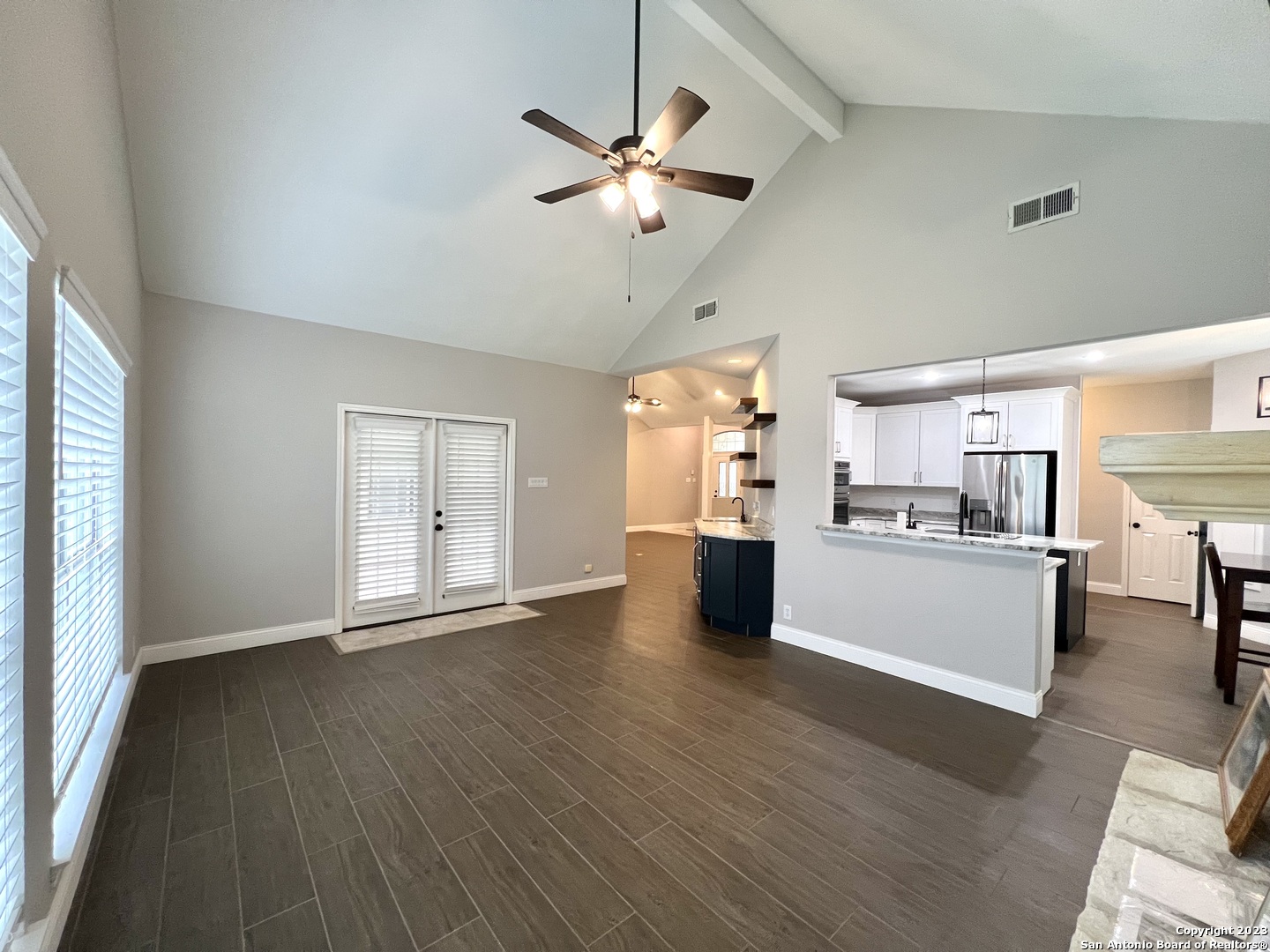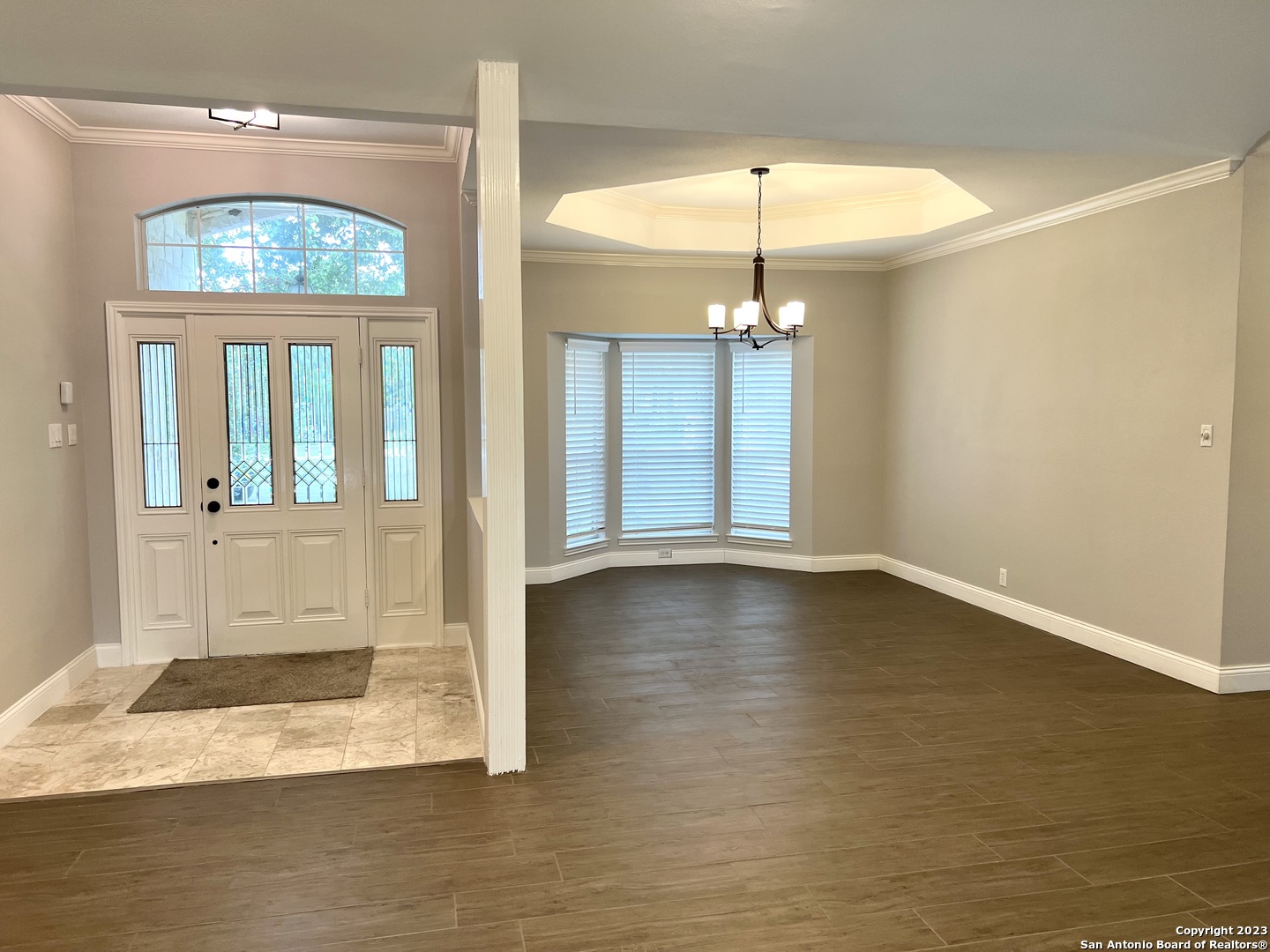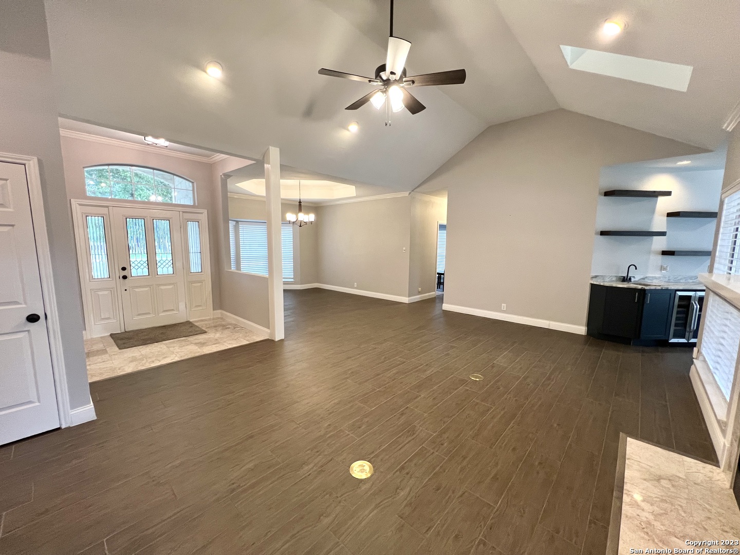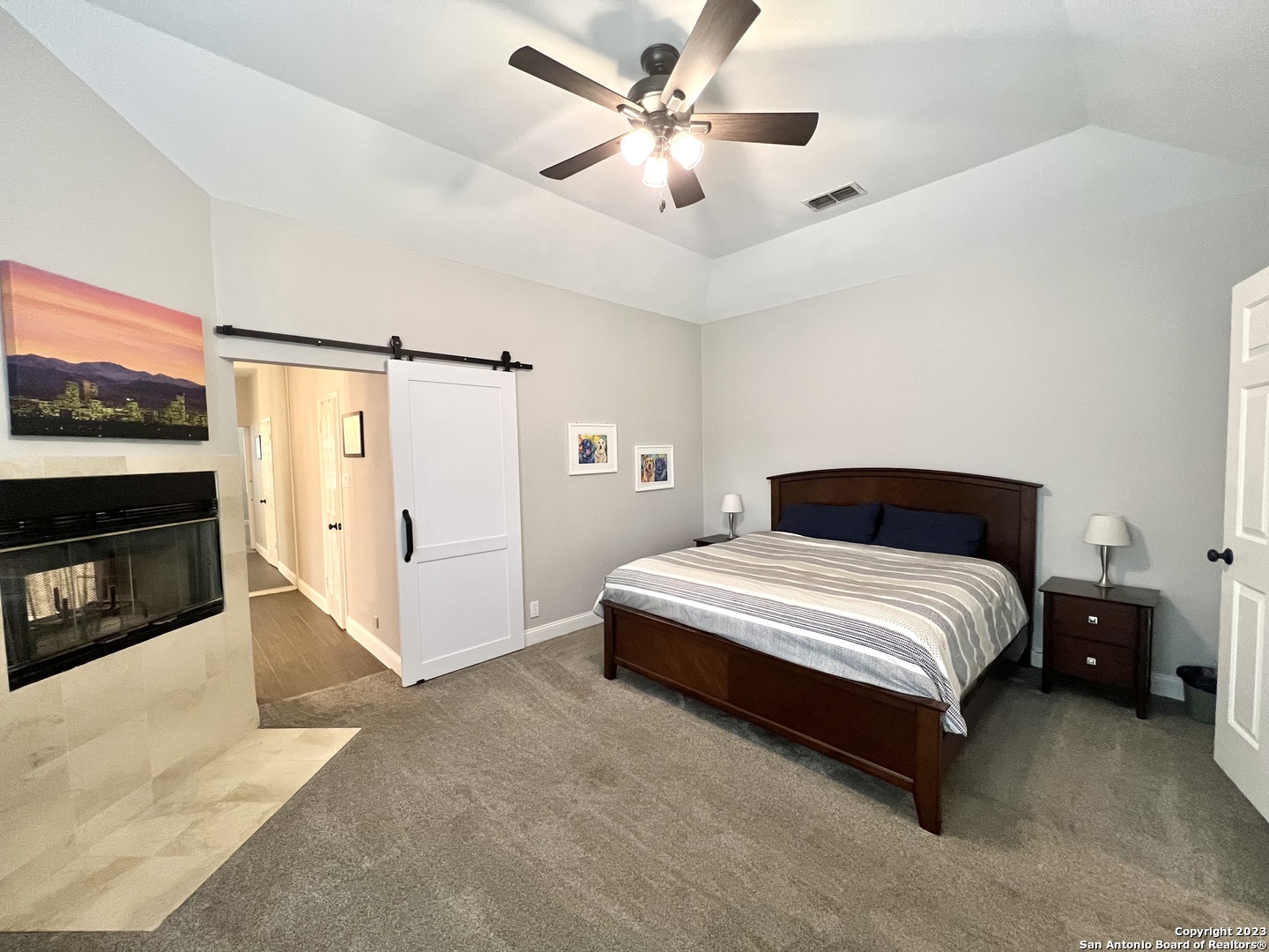 Rare find...tasteful, extensively remodeled Fair Oaks Ranch golf course home with pool! Enjoy fantastic, set-back views of the golf course from back patio/pool on .49 acre, cul-de-sac lot. Custom, rock one-story home has 3 bedrooms/2.5 baths/2.5 garage, 3 fireplaces & skylights for added light. Open floor plan flows with 2 living areas split by updated wet bar, formal dining, kitchen with breakfast, two secondary bedrooms with shared bath, & study/office. Gorgeous wood-look porcelain tile, newer light fixtures/ceiling fans, & fresh paint/carpet throughout home interior. Stunning kitchen has updated cabinets, appliances, granite & backsplash. Spa-like master bath suite w/fireplace has soaking tub, beautiful shower, updated granite counters, & private access to pool. Secondary bath has new tub/tile and granite counters on sinks. Entertainers delight with patio/semi-private pool/expanded fenced area. Excellent Boerne ISD schools & Fair Oaks Ranch Community. The Rim/La Cantera shopping are minutes away. Don't miss this opportunity to be on the Fair Oaks Ranch golf course!