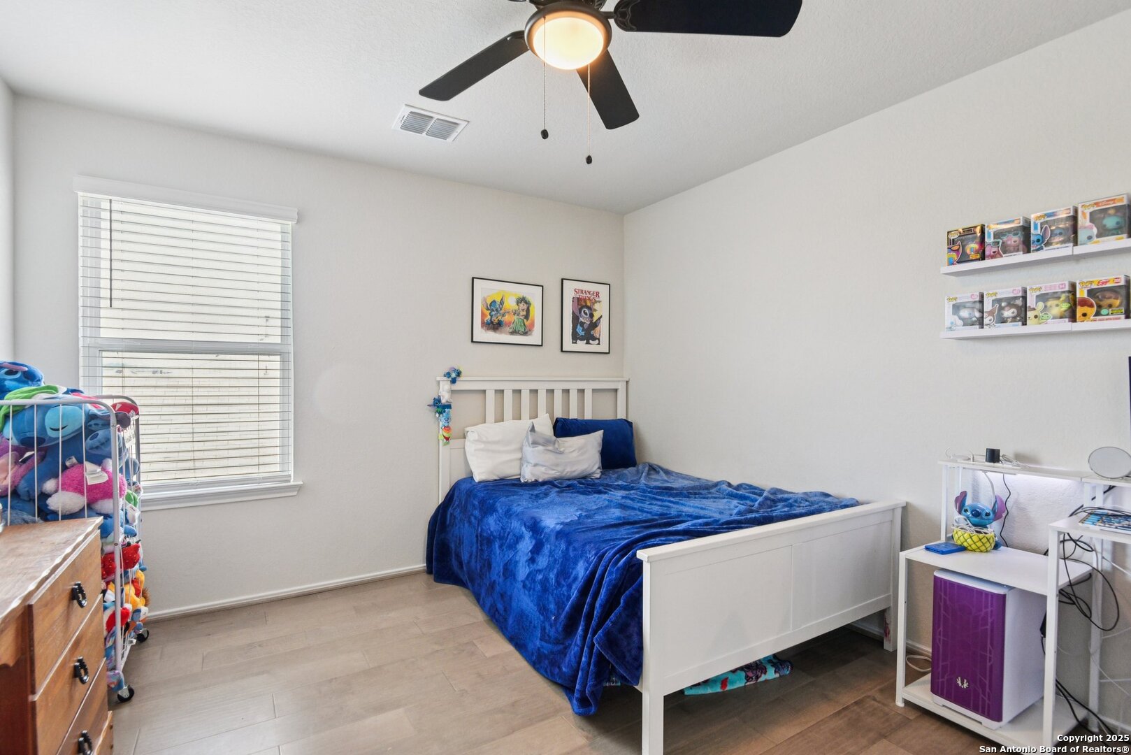 Welcome to this beautifully maintained 4-bedroom, 2.5-bathroom home nestled in the desirable Copper Canyon community. With a welcoming front porch and timeless curb appeal, this two-story residence offers comfort, style, and functionality throughout. Step inside to discover an open-concept floorplan that flows seamlessly from the spacious living area to a well-appointed kitchen featuring wood-finish cabinetry, ample counter space, bar seating, and upgraded hardware. A formal dining room provides the perfect setting for entertaining or everyday meals. The private primary suite is located on the main floor and includes a luxurious bathroom with a double vanity, garden tub, separate shower, and a generous walk-in closet. Upstairs, you'll find a versatile flex room-ideal for a home office, media room, or workout space. Additional features include wood flooring, upgraded ceiling fans, a water softener system, and a high-performance air purifier. Enjoy outdoor living with a covered patio enclosed by a railing, and a fully fenced backyard for added privacy. Residents of Copper Canyon enjoy access to outstanding community amenities including a sparkling pool, scenic walking trails, a playground, BBQ grills, and a park-like setting that encourages relaxation and recreation. Don't miss this opportunity to make 29545 Lost Copper your new address in one of the area's most sought-after neighborhoods!