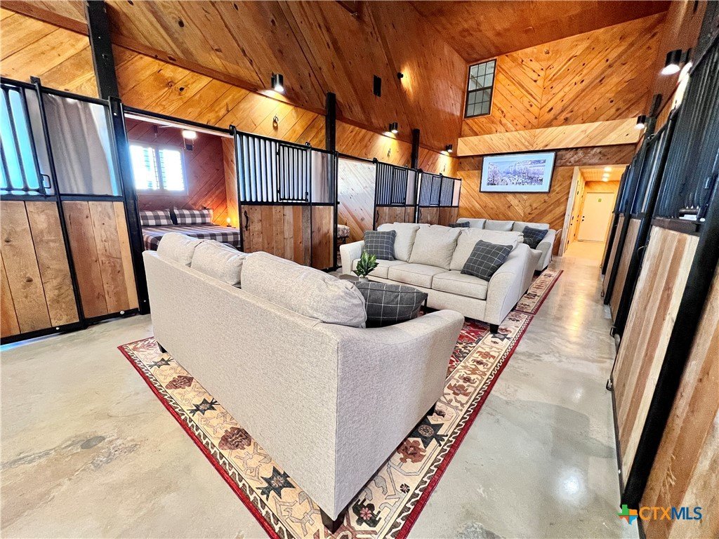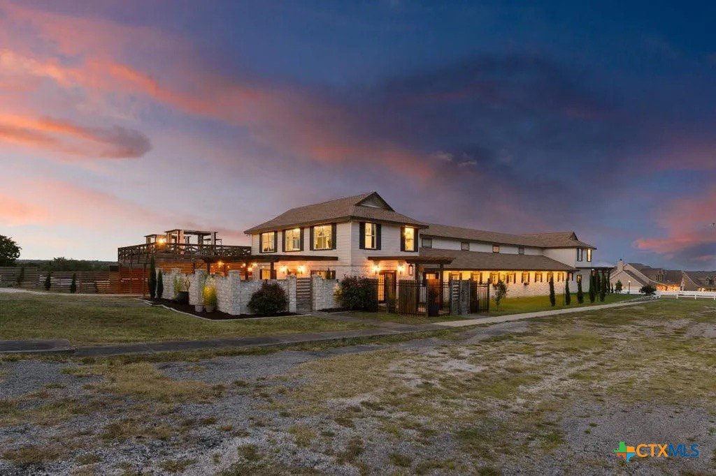 Welcome to The Stables, a one-of-a-kind estate offering over 9,000 square feet of living space on 10+ acres within a gated horse community featuring private riding trails. This remarkable property includes 23 bedrooms, 10 bathrooms, two full kitchens, and three spacious living areas, making it ideal for large households, or licensed group housing providers. Designed with equine enthusiasts in mind, the property features a horse arena, outdoor stalls, and pastures for grazing with Oak Trees. Enjoy an infinity pool with hot tub overlooking the serene Hill Country landscape. Per HOA guidelines, this is one of the few parcels approved for equine commercial use, offering rare flexibility for therapeutic or recovery programs incorporating Equine Services. Appraised for $2,056,000 in August of 2022. Selling As is. No Short term renting allowed. Subdivision potential.