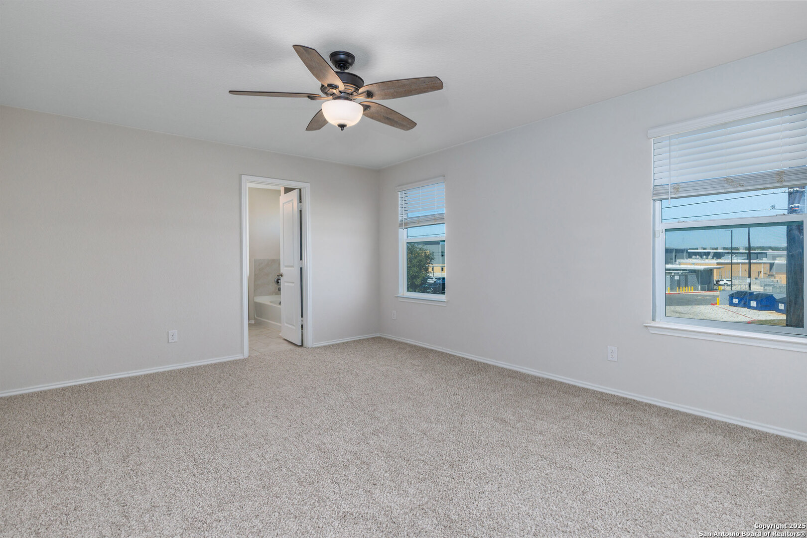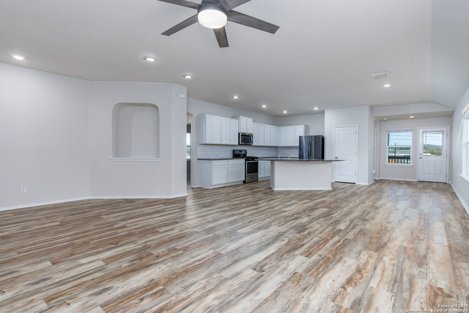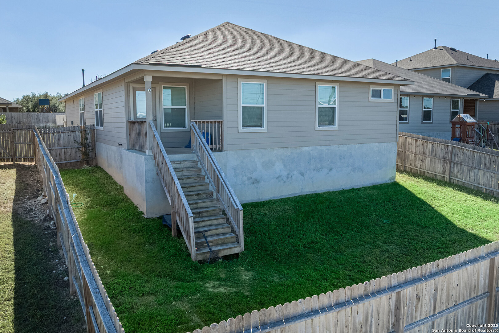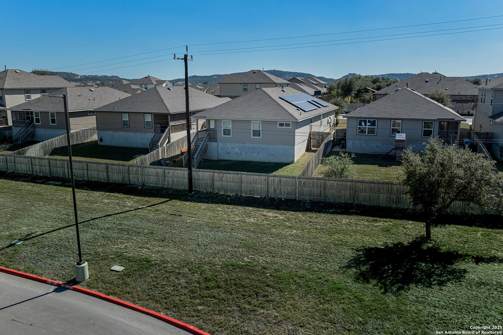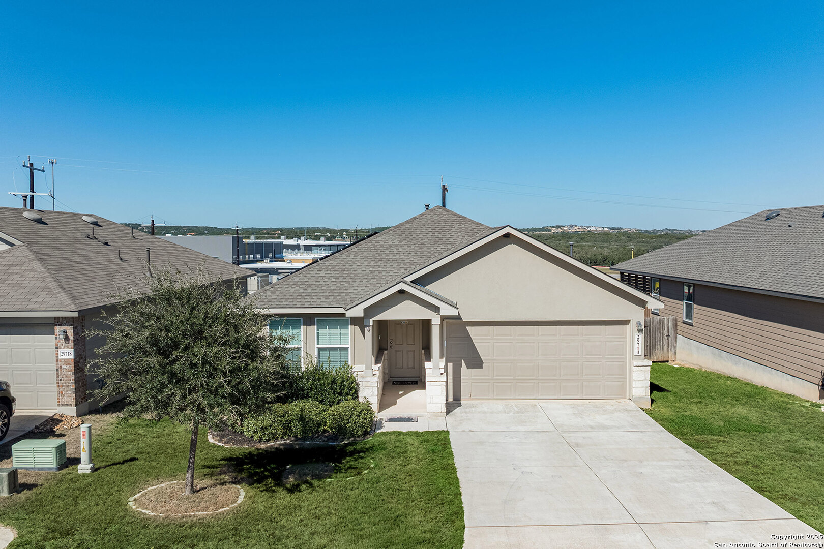 Welcome home to this single story turn key 4-Bedroom home located in Amenity rich Copper Canyon Subdivision in Bulverde! This Thoughtfully designed 4 bedroom, 2 bathroom Single-story home offers 1901 square feet of modern MOVE-IN-READY living space! The Spacious main living area connects seamlessly to the island kitchen, equipped with ample counter space for meal prep or entertaining. The private primary bedroom includes a large walk in closet, double vanity and separate tub/ shower combination. The three secondary bedrooms are well proportioned offering comfortable and defined living areas. Enjoy the Texas Weather on the covered patio overlooking the fully fenced backyard. Residents of the Copper Canyon community benefit from an outstanding array of shared amenities, including a community pool, sports court, and neighborhood park/playground. Home will sell with appliances, solar panels to be paid off and transferred to new owner at closing.