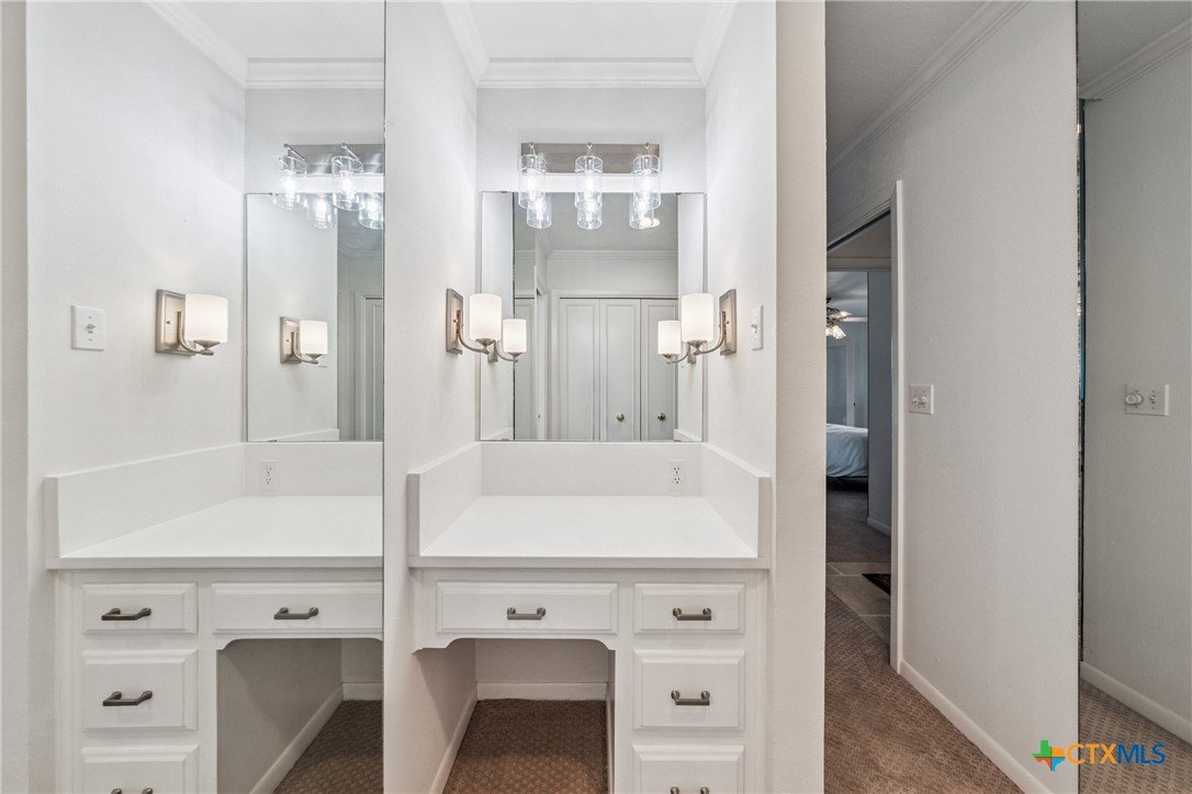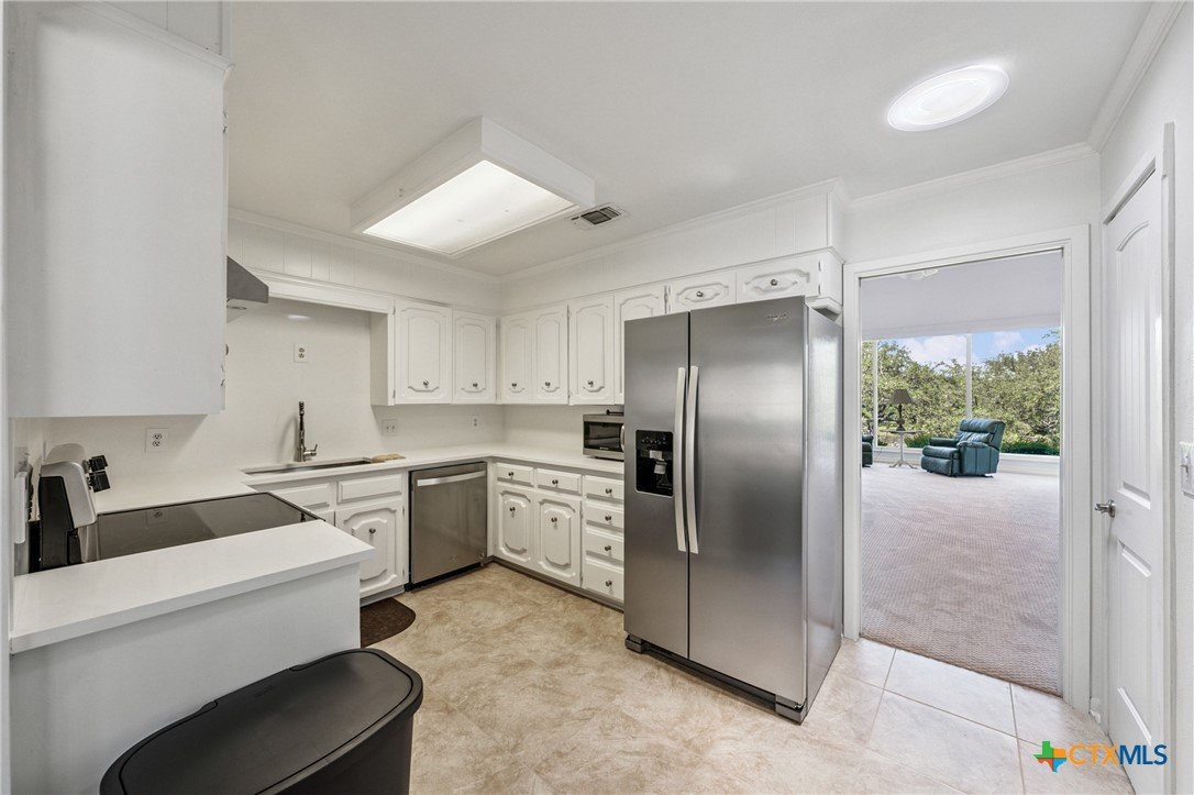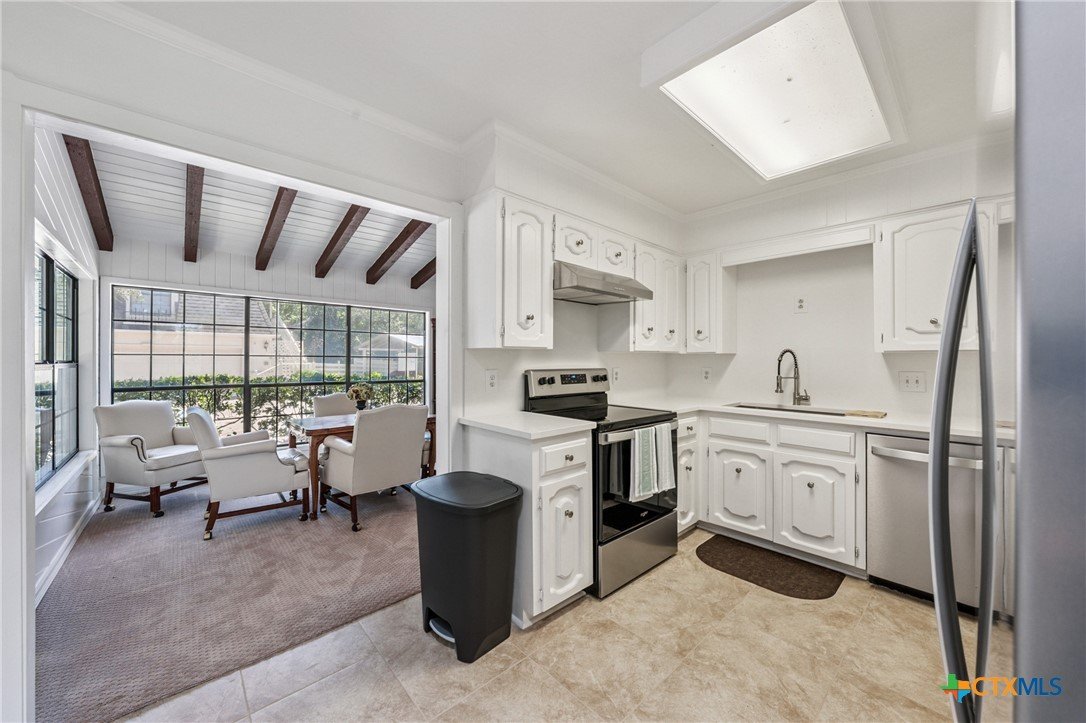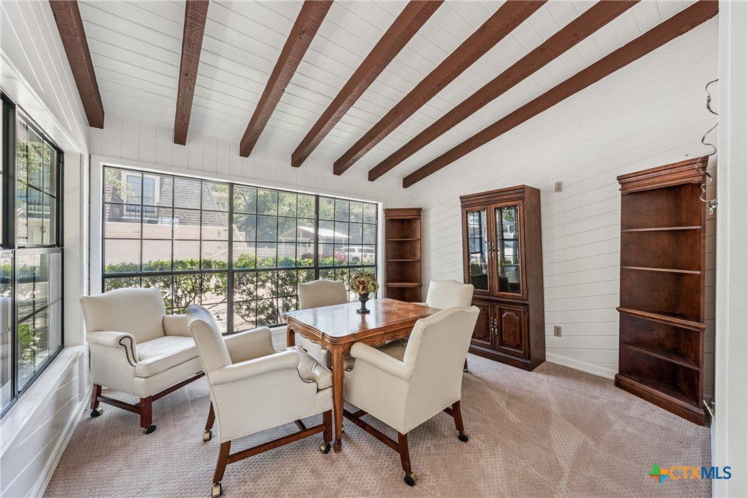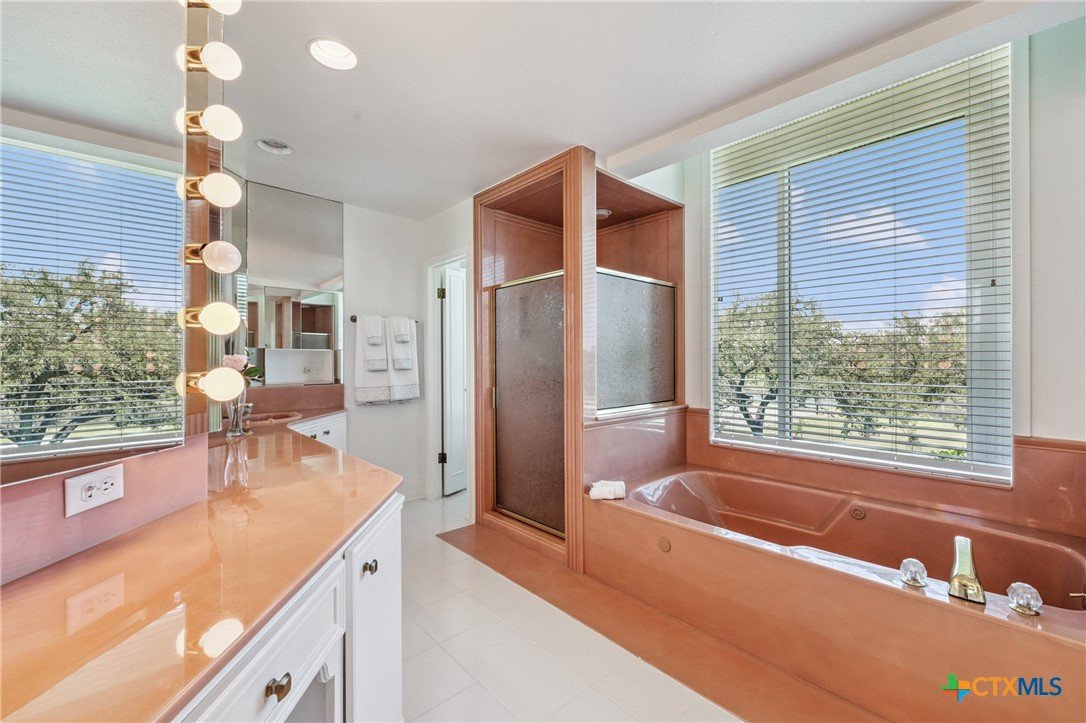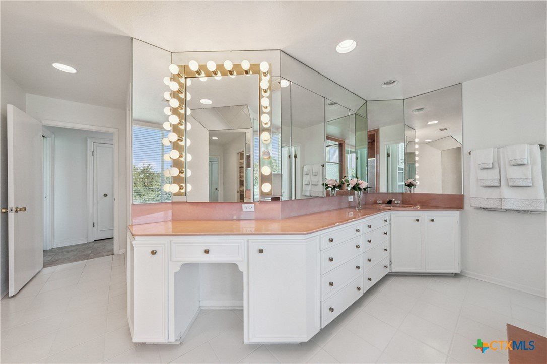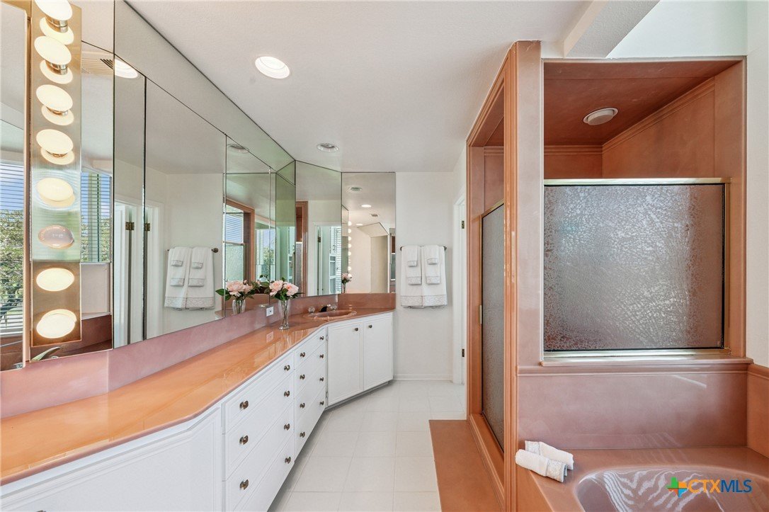 Experience luxury living in this spacious penthouse with stunning views of Salado Creek located in the heart of Mill Creek overlooking Sherrill Park. Entertain in the grand living room with expansive windows that capture the picturesque view of Salado Creek and enjoy the warmth of the striking antique walk-in stone fireplace with 19th century wood paneling and molding. Step inside and immediately be greeted with stunning, one of a kind European chandelier in the formal dining. This property has been totally remodeled with updates to include carpet, lighting, air conditioning, roofing, windows, title flooring, fixtures, and painting throughout. The home boasts two fully equipped kitchens, each with its own cozy breakfast nook—perfect for multi-generational living, entertaining, or extended stays. The main home boasts grand living room, 4 bedrooms, 5 bathrooms. Additionally there is a detached office with two car garage and a fully remodeled guest apartment with efficiency kitchen, bathroom and covered golf card parking. This unique property combines comfort, privacy, and scenic beauty in the heart of Salado.