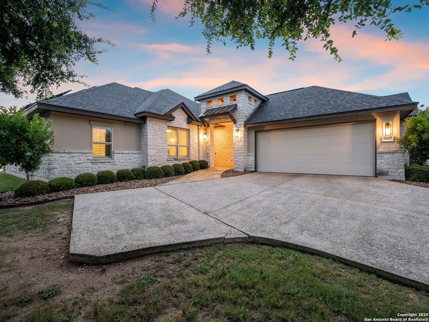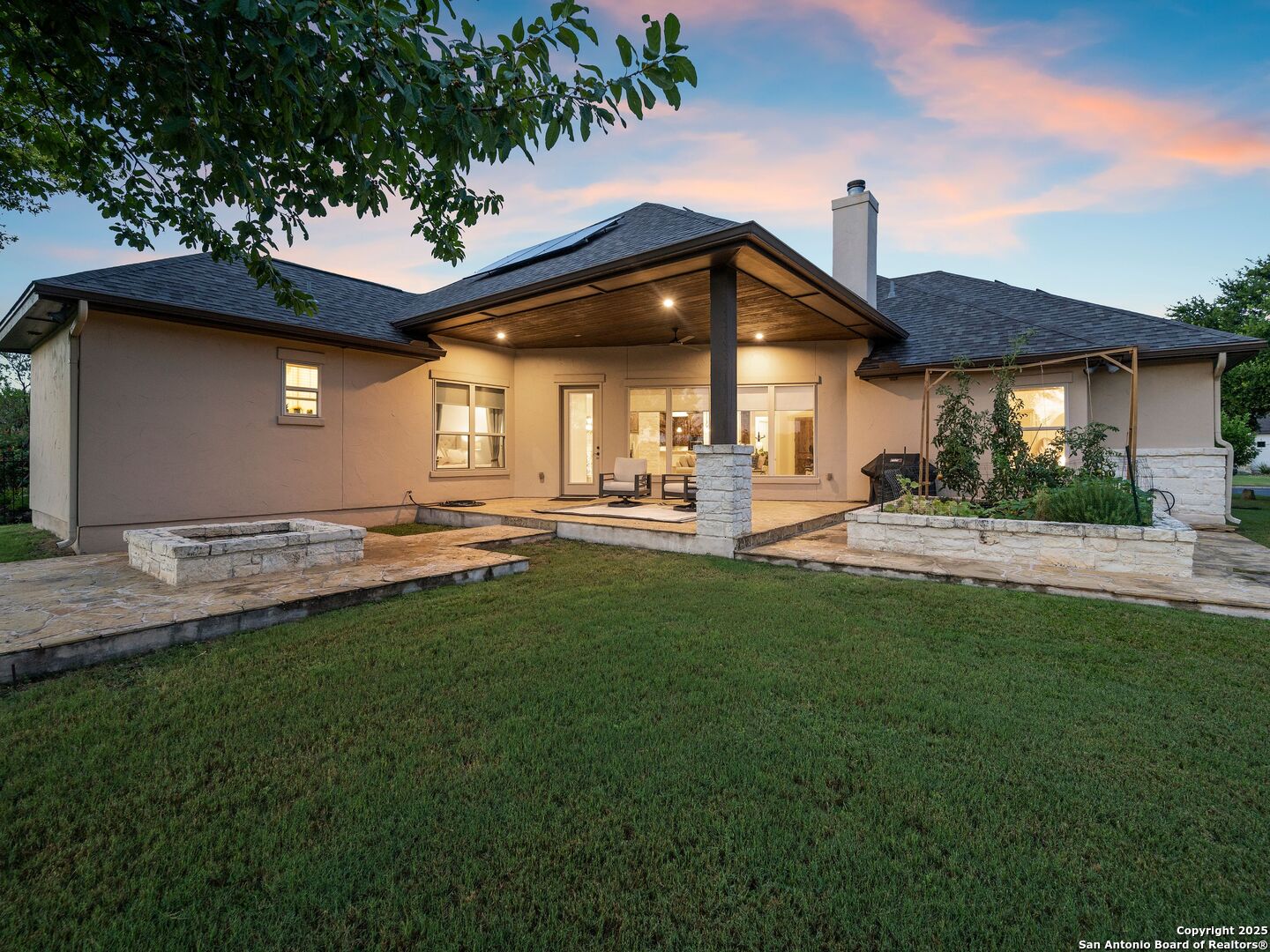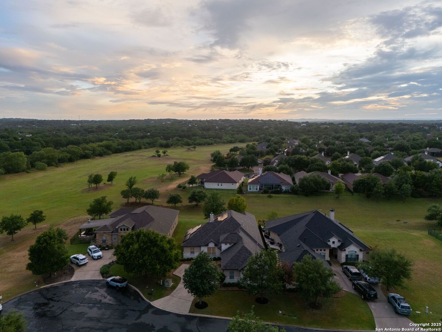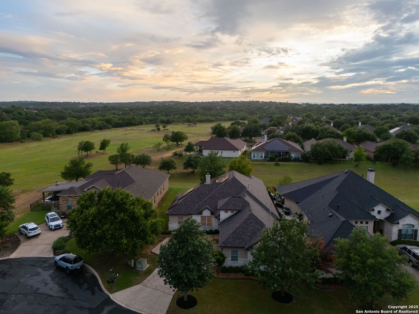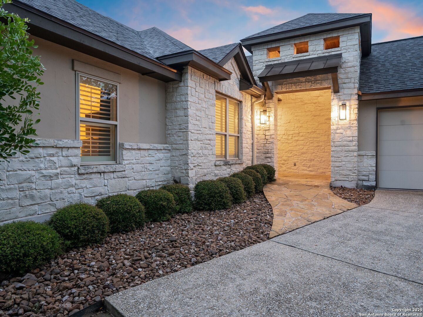 This beautifully updated one-story home offers a thoughtfully designed floor plan that perfectly balances comfort, functionality, and style. Freshly painted and equipped with brand-new solar panels, it's both energy-efficient and move-in ready. Enjoy tranquil greenbelt views from the spacious backyard, where a large covered patio and built-in fire pit provide the perfect space for relaxing or entertaining under the open sky. Inside, the open-concept kitchen and living area are filled with natural light from expansive picture windows, creating a bright and inviting atmosphere. The kitchen features custom cabinetry, elegant granite countertops, a statement vent hood, and an eat-in bar that's ideal for casual meals or gathering with guests. Additional highlights include a separate office, an eat-in dining area, and three generously sized bedrooms, offering flexibility for both work and leisure. Set in a well-maintained neighborhood known for its lush landscaping and beautiful homes, the property offers a sense of privacy and peaceful living, often accompanied by deer sightings just beyond your backyard. Perfectly situated just off Fair Oaks Ranch Blvd near the golf course, this home is ideally located between the vibrant city of San Antonio and the charm of Boerne, and is part of the highly rated Boerne ISD. Schedule your showing today!