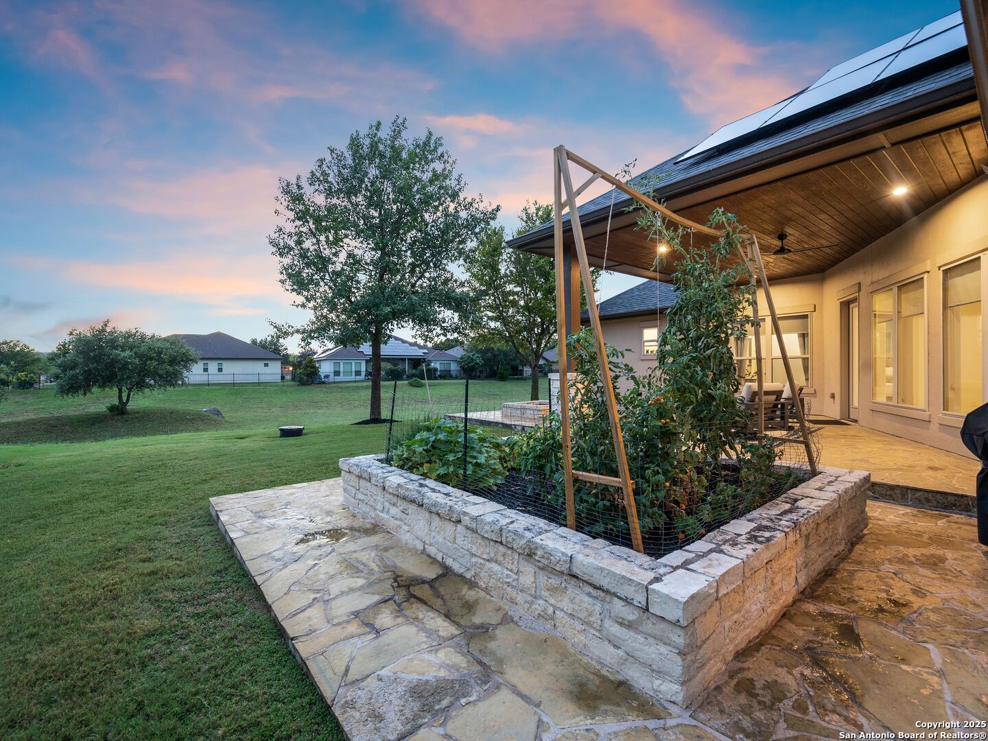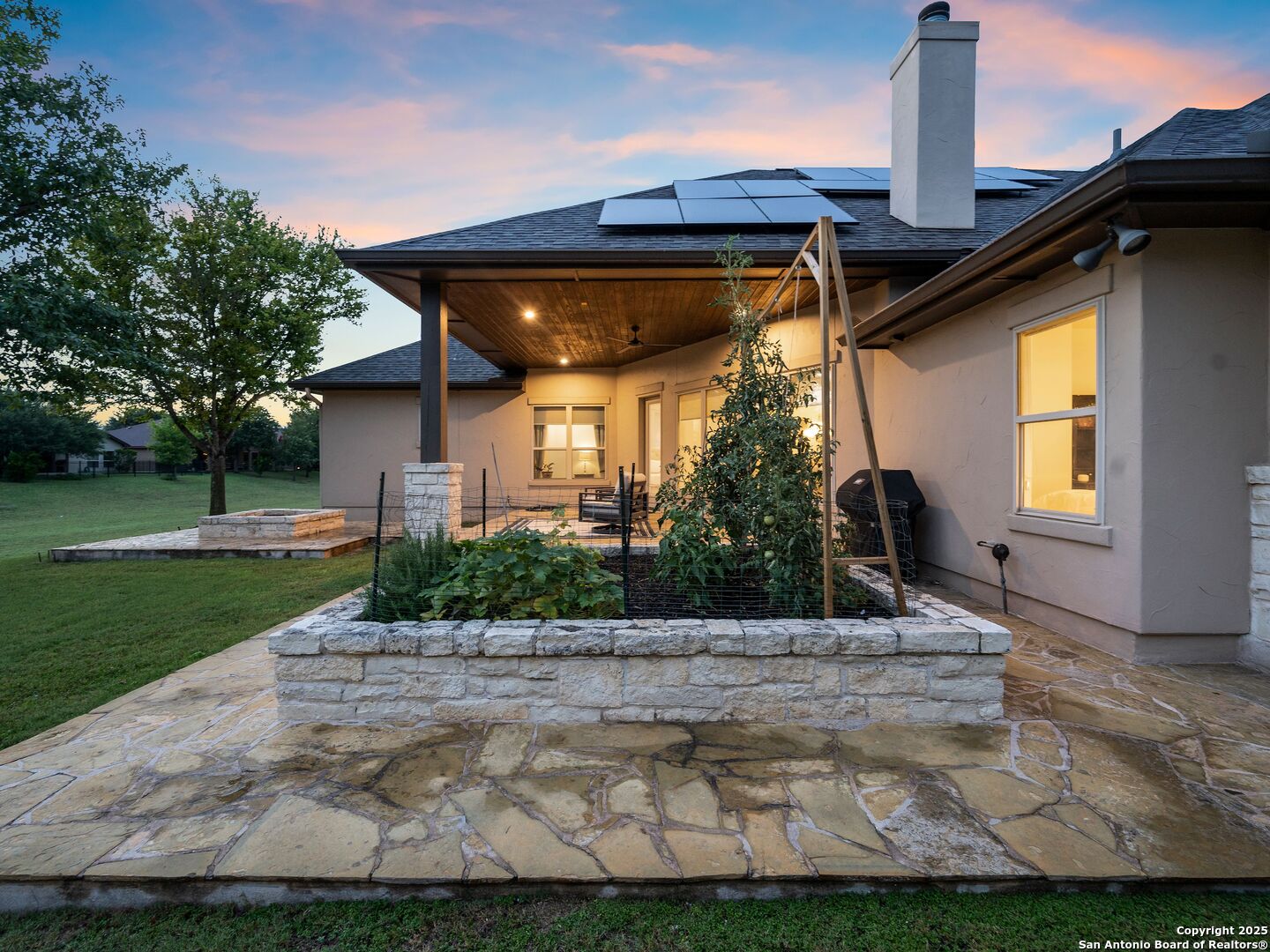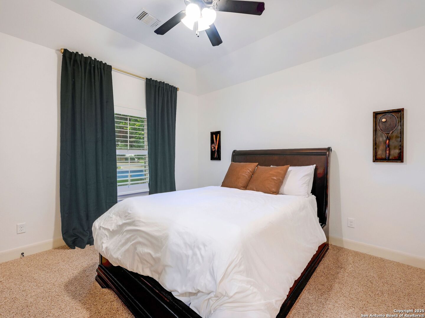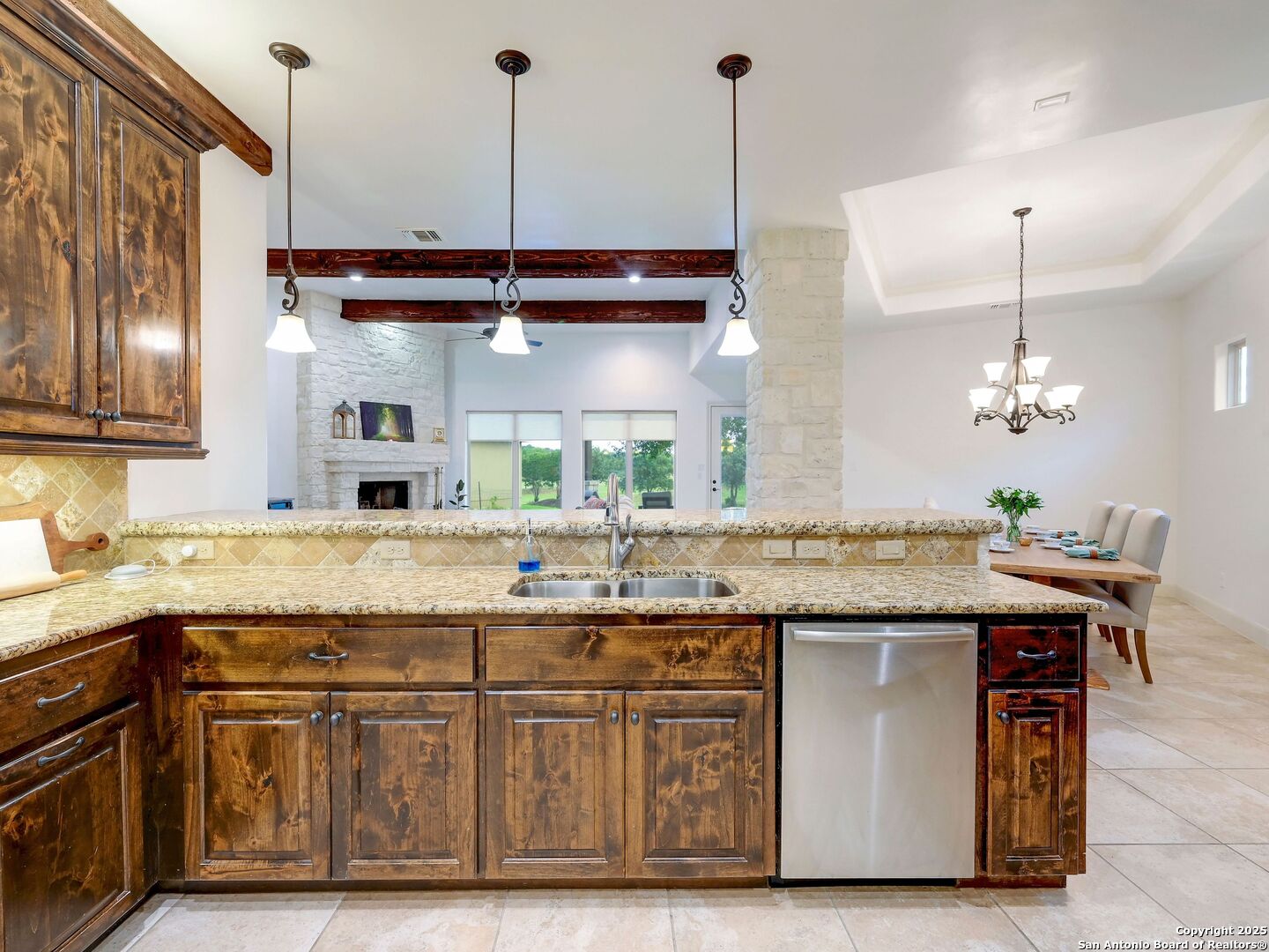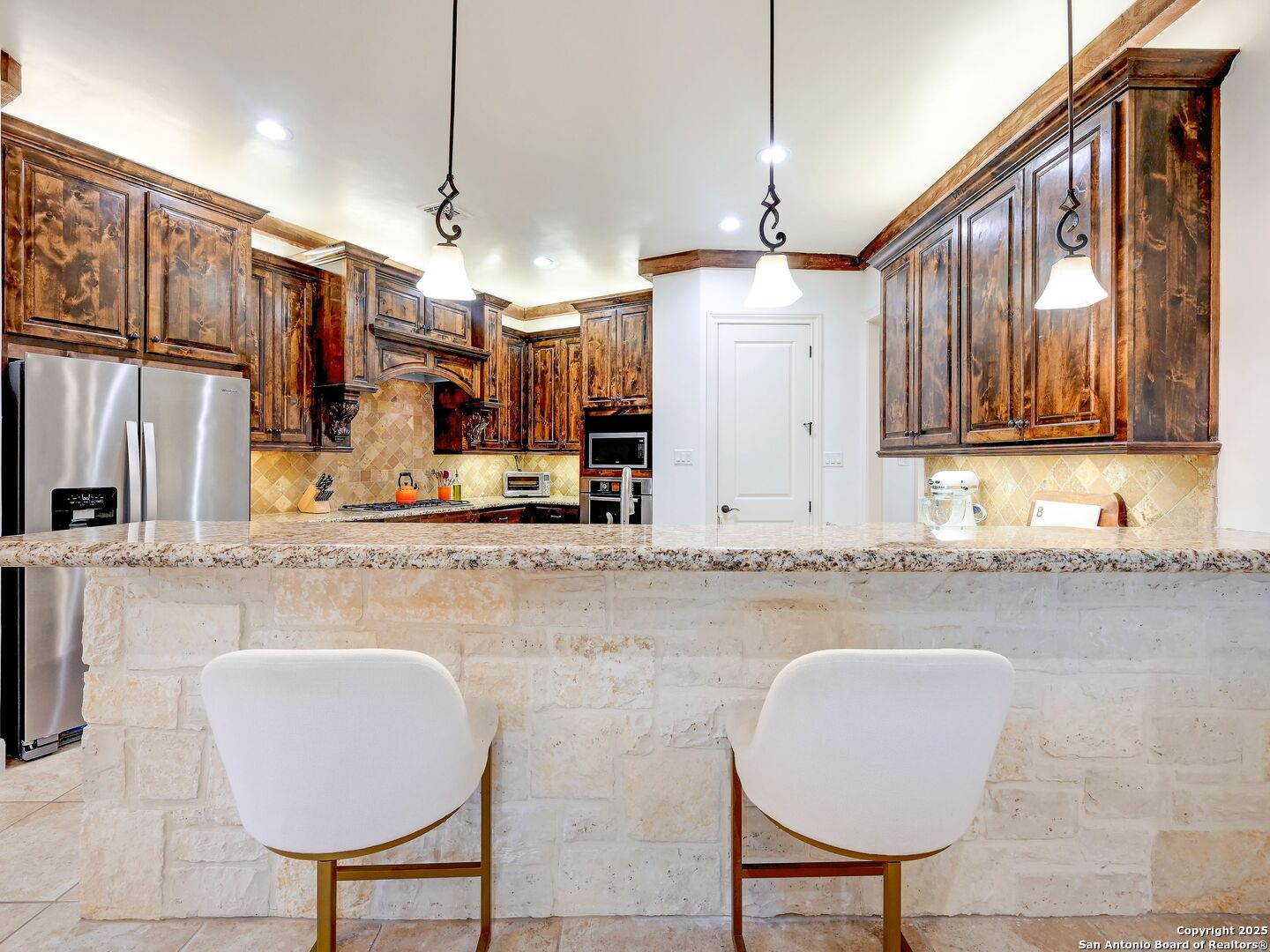 This beautifully updated one-story home offers a thoughtfully designed floor plan that perfectly balances comfort, functionality, and style. Freshly painted and equipped with brand-new solar panels, it's both energy-efficient and move-in ready. Enjoy tranquil greenbelt views from the spacious backyard, where a large covered patio and built-in fire pit provide the perfect space for relaxing or entertaining under the open sky. Inside, the open-concept kitchen and living area are filled with natural light from expansive picture windows, creating a bright and inviting atmosphere. The kitchen features custom cabinetry, elegant granite countertops, a statement vent hood, and an eat-in bar that's ideal for casual meals or gathering with guests. Additional highlights include a separate office, an eat-in dining area, and three generously sized bedrooms, offering flexibility for both work and leisure. Set in a well-maintained neighborhood known for its lush landscaping and beautiful homes, the property offers a sense of privacy and peaceful living, often accompanied by deer sightings just beyond your backyard. Perfectly situated just off Fair Oaks Ranch Blvd near the golf course, this home is ideally located between the vibrant city of San Antonio and the charm of Boerne, and is part of the highly rated Boerne ISD. Schedule your showing today!