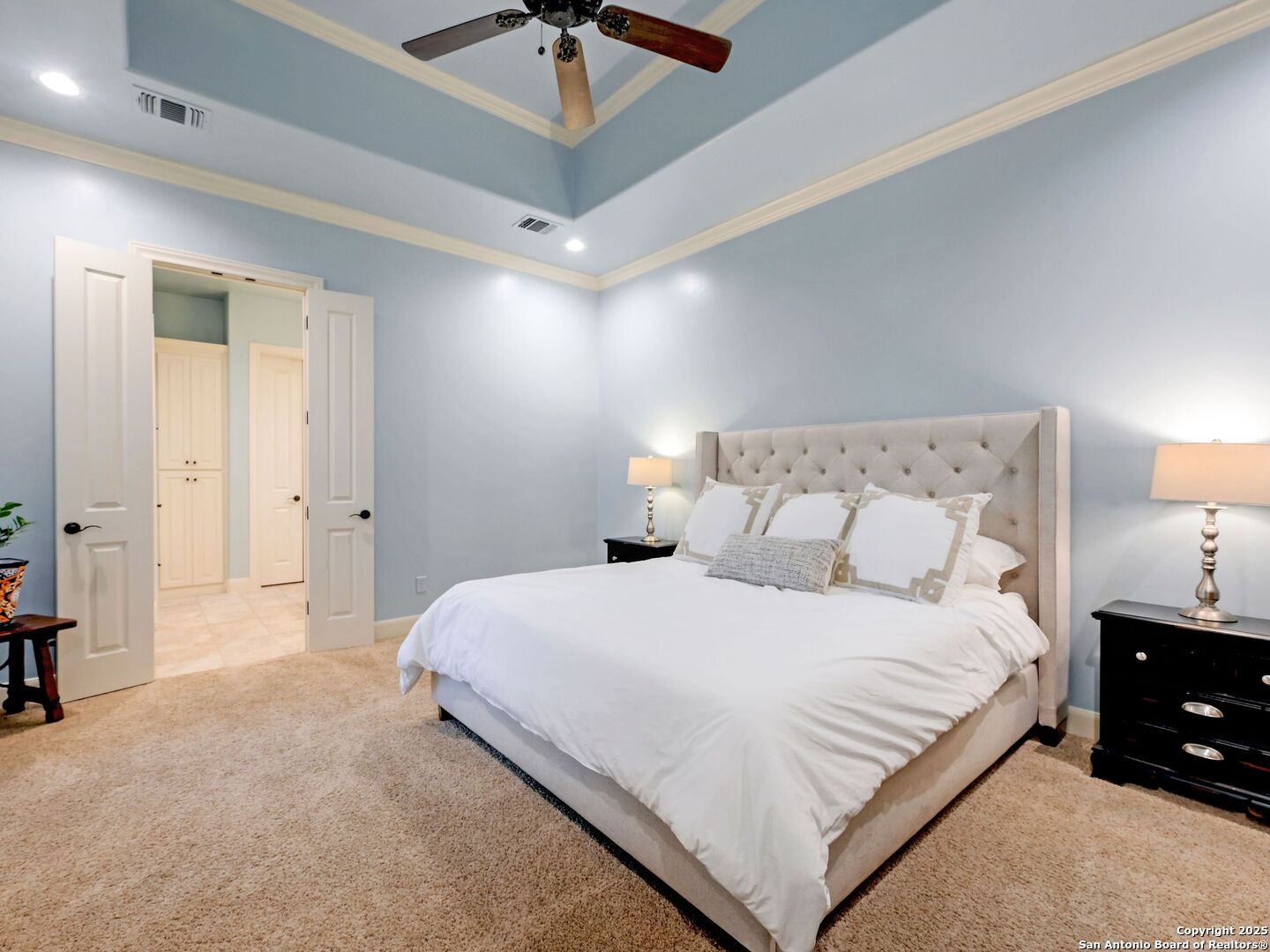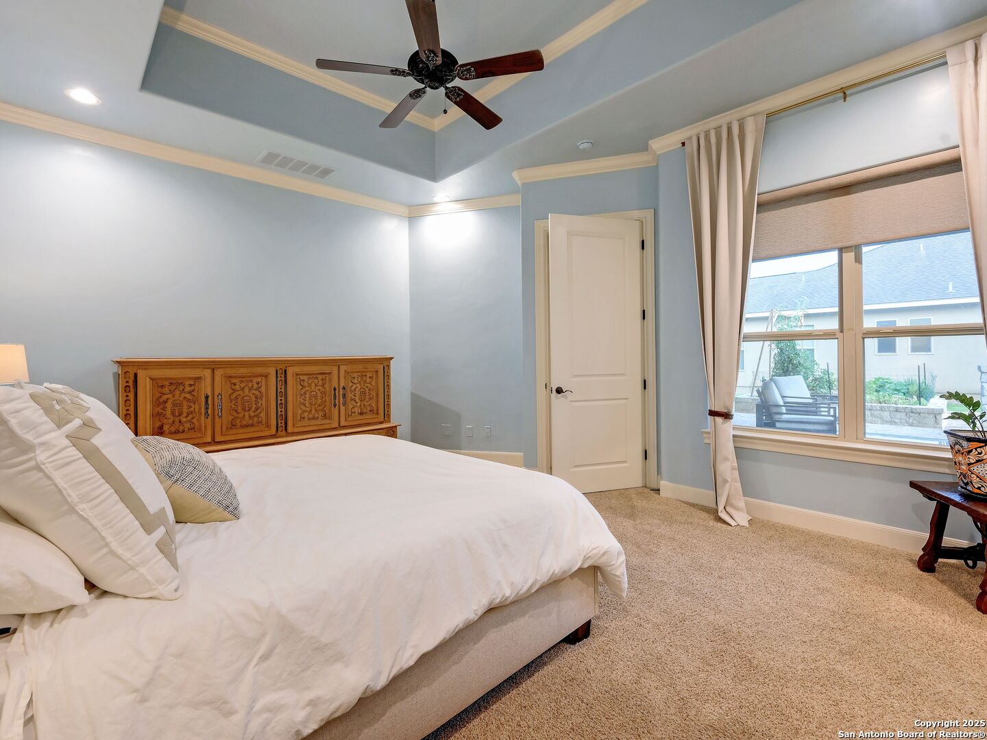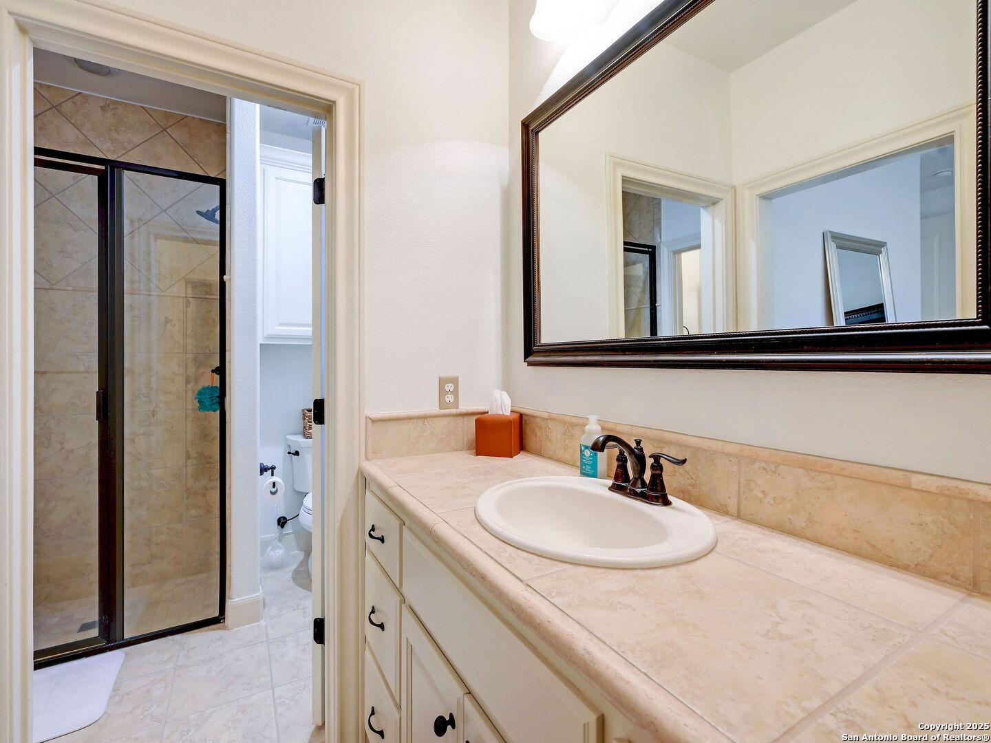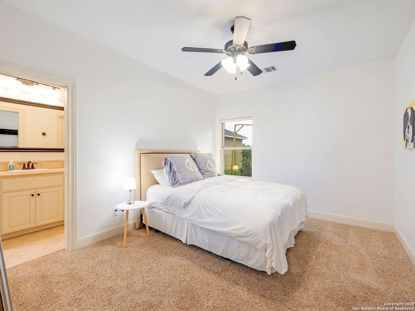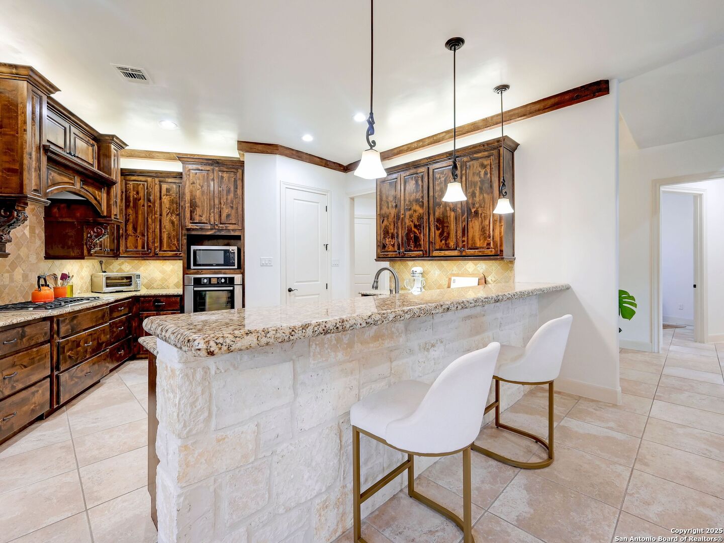 This beautifully updated one-story home offers a thoughtfully designed floor plan that perfectly balances comfort, functionality, and style. Freshly painted and equipped with brand-new solar panels, it's both energy-efficient and move-in ready. Enjoy tranquil greenbelt views from the spacious backyard, where a large covered patio and built-in fire pit provide the perfect space for relaxing or entertaining under the open sky. Inside, the open-concept kitchen and living area are filled with natural light from expansive picture windows, creating a bright and inviting atmosphere. The kitchen features custom cabinetry, elegant granite countertops, a statement vent hood, and an eat-in bar that's ideal for casual meals or gathering with guests. Additional highlights include a separate office, an eat-in dining area, and three generously sized bedrooms, offering flexibility for both work and leisure. Set in a well-maintained neighborhood known for its lush landscaping and beautiful homes, the property offers a sense of privacy and peaceful living, often accompanied by deer sightings just beyond your backyard. Perfectly situated just off Fair Oaks Ranch Blvd near the golf course, this home is ideally located between the vibrant city of San Antonio and the charm of Boerne, and is part of the highly rated Boerne ISD. Schedule your showing today!