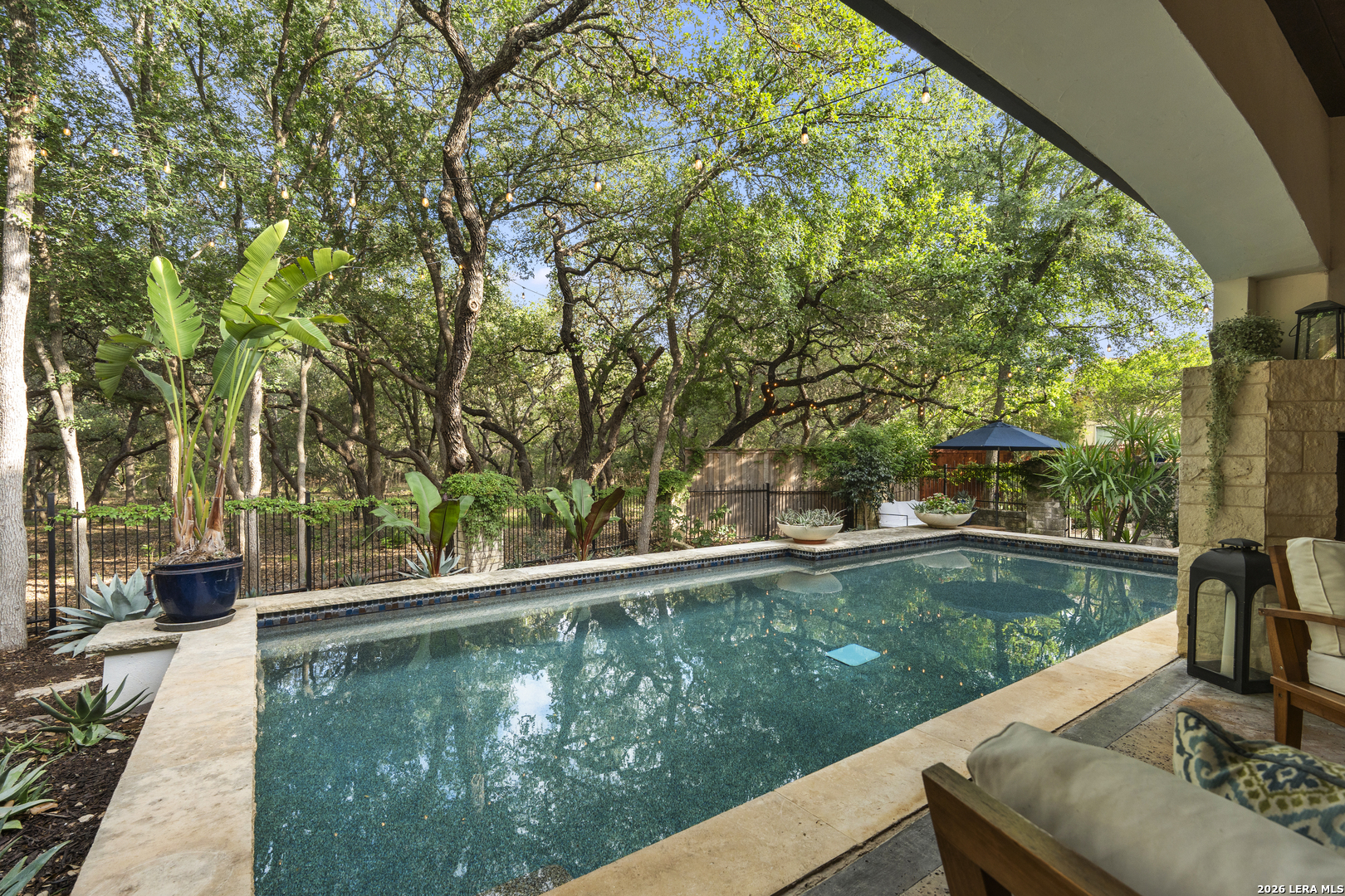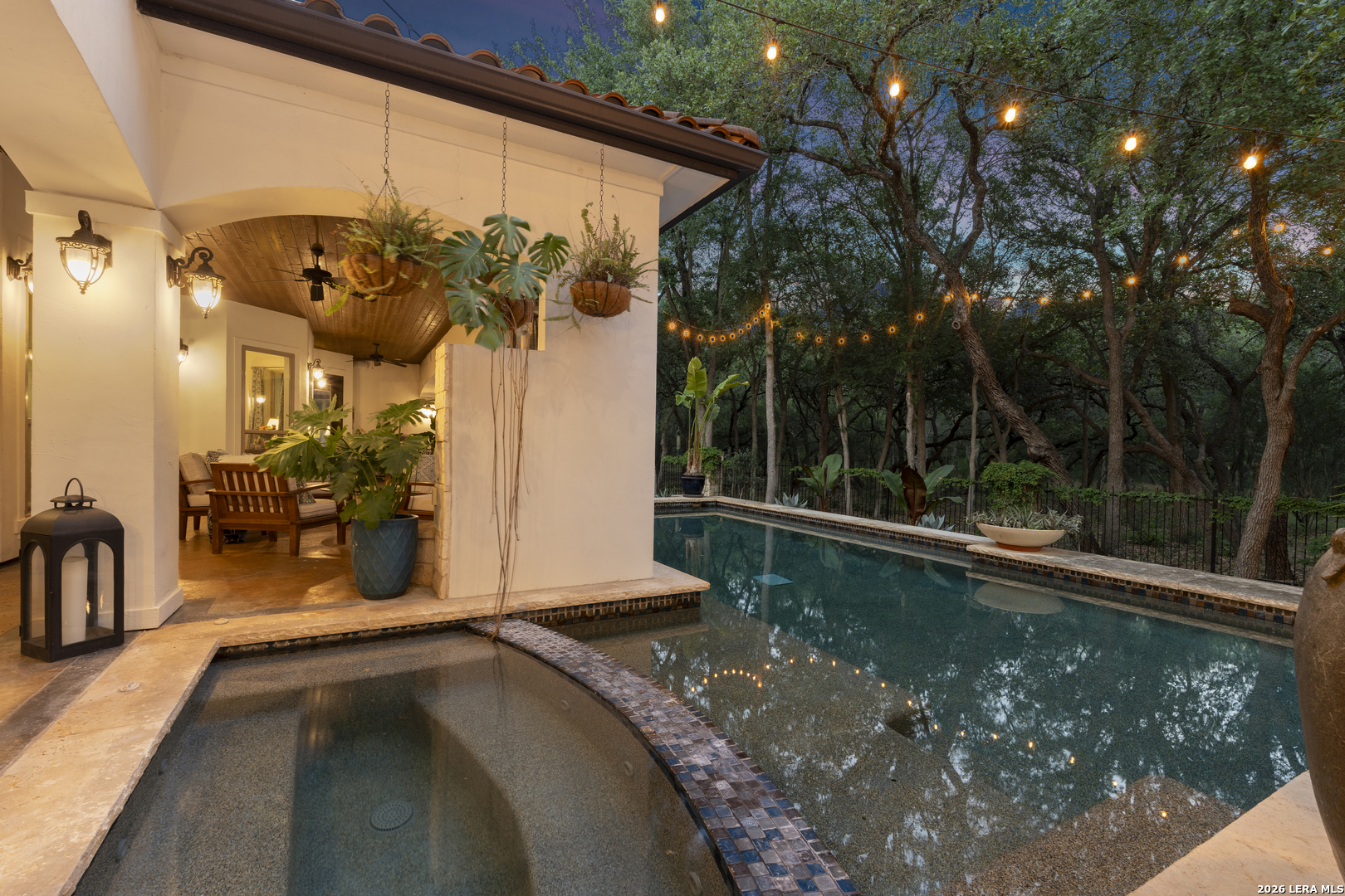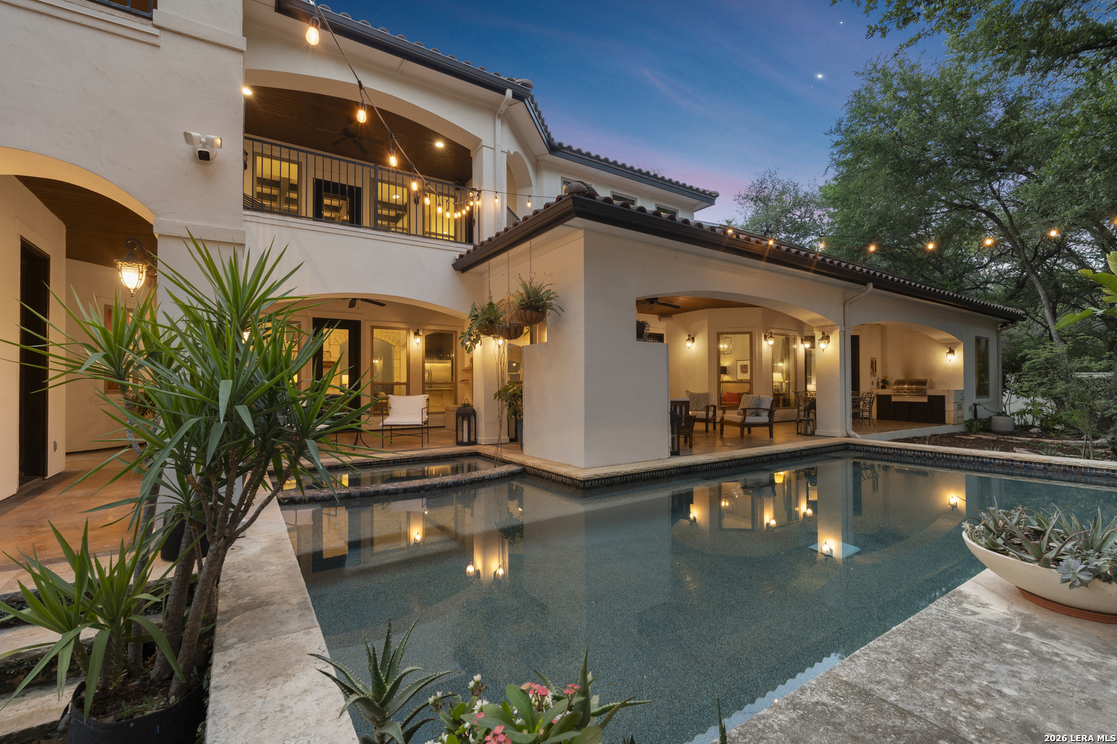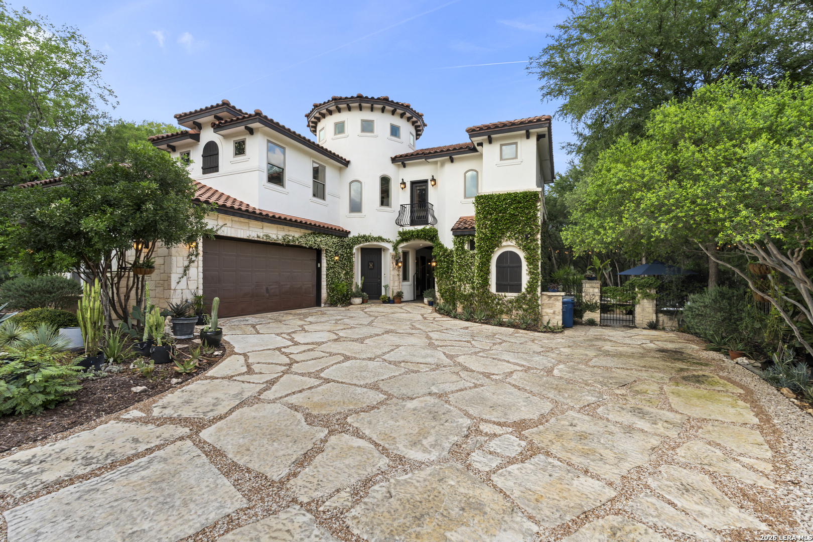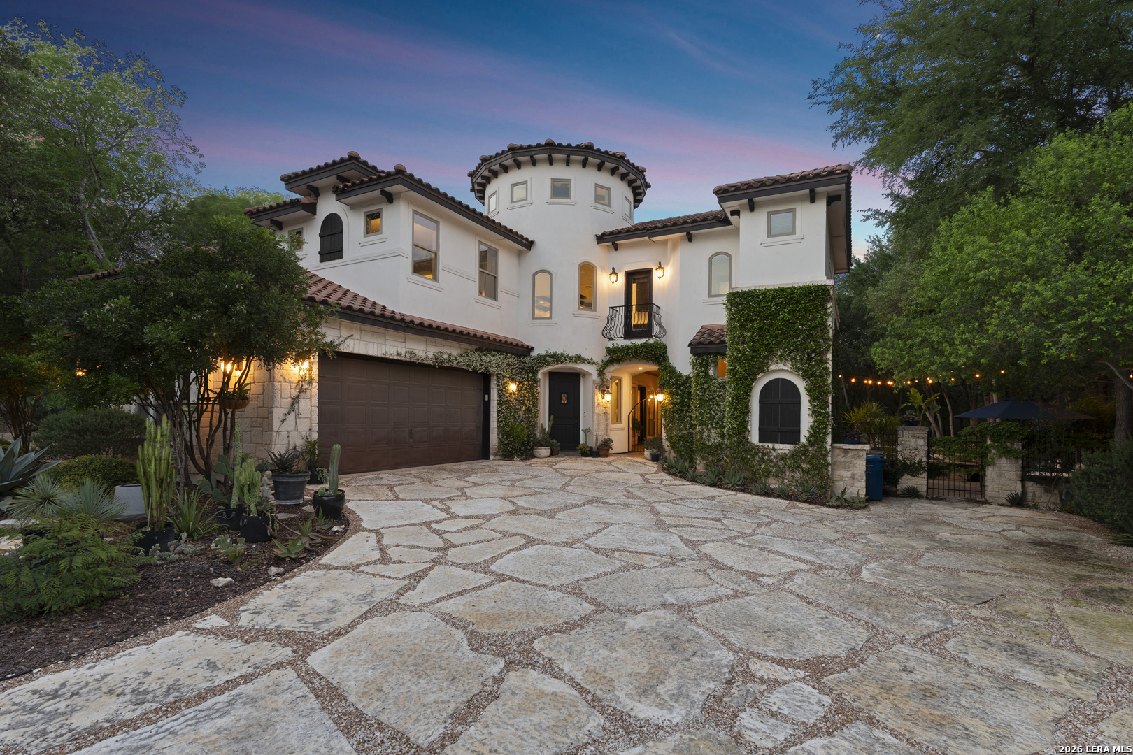 Set behind a long private drive on a rare .48 acre greenbelt lot, this Italian inspired villa offers a level of privacy, scale, and resort style living seldom found in San Antonio. From the moment you arrive, the home makes a lasting impression. Exceptional curb appeal is framed by over $250,000 in thoughtfully designed, drought tolerant, cold hardy landscaping that blends beautifully with the natural surroundings. Designed for both everyday living and exceptional entertaining, the outdoor spaces are a true highlight. The recently resurfaced heated pool and spa are perfectly positioned to overlook the lush greenbelt, while multiple covered patios create seamless indoor/outdoor living. A casita offers flexibility for guests or a private office. Inside, the home combines warmth and scale with a highly functional layout. The kitchen is well appointed with a builtin refrigerator, gas cooktop, and double ovens. The primary suite features a sitting area, direct patio access to the pool, and a spacious walk in closet. Upstairs, a secondary primary suite offers its own private laundry-perfect for multi-generational living or extended guests. New carpet throughout the upper level adds a move in ready touch. Behind the scenes, the home is equipped with a suite of high performance features designed for comfort and efficiency, including solar panels, spray foam insulation and radiant barrier, delivering a quieter, more comfortable living environment with the added benefit of long term energy savings. Modern convenience meets timeless design with whole home automation controlling lighting, climate, and sound. Tucked within a small, gated enclave yet just minutes from 1604, I10 and 410, close to the medical center area, and premier shopping and dining, this is a property that offers both privacy and accessibility, an increasingly rare combination. Homes of this caliber, on lots of this size and setting, rarely come to market.