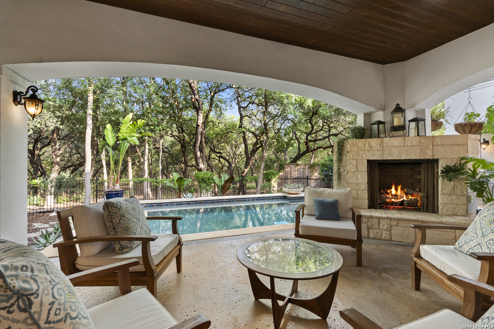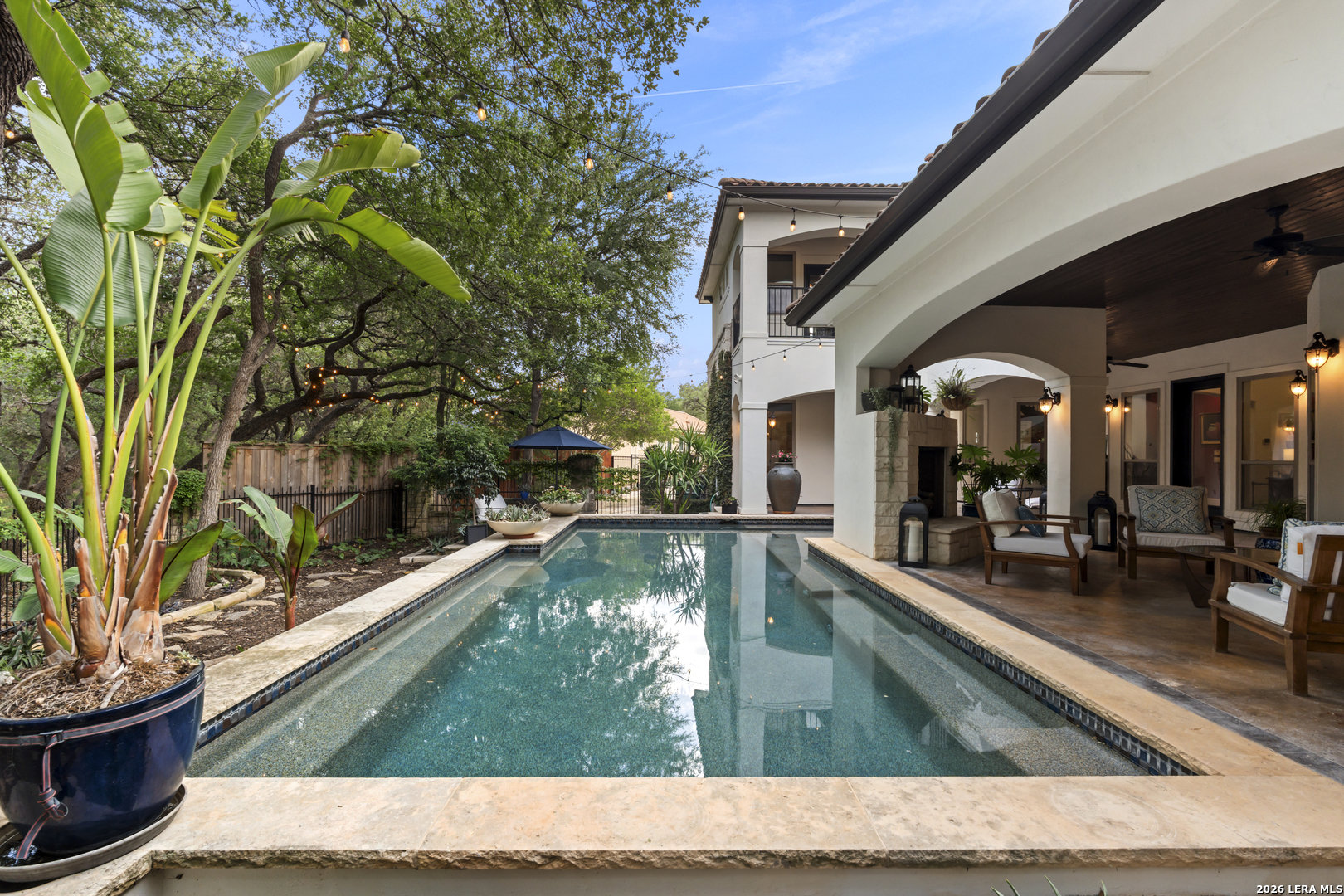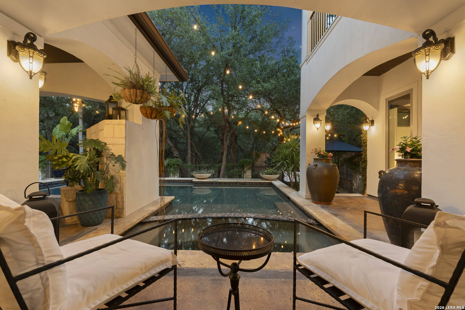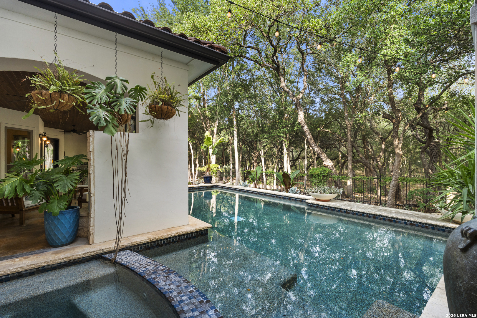 Set behind a long private drive on a rare .48 acre greenbelt lot, this Italian inspired villa offers a level of privacy, scale, and resort style living seldom found in San Antonio. From the moment you arrive, the home makes a lasting impression. Exceptional curb appeal is framed by over $250,000 in thoughtfully designed, drought tolerant, cold hardy landscaping that blends beautifully with the natural surroundings. Designed for both everyday living and exceptional entertaining, the outdoor spaces are a true highlight. The recently resurfaced heated pool and spa are perfectly positioned to overlook the lush greenbelt, while multiple covered patios create seamless indoor/outdoor living. A casita offers flexibility for guests or a private office. Inside, the home combines warmth and scale with a highly functional layout. The kitchen is well appointed with a builtin refrigerator, gas cooktop, and double ovens. The primary suite features a sitting area, direct patio access to the pool, and a spacious walk in closet. Upstairs, a secondary primary suite offers its own private laundry-perfect for multi-generational living or extended guests. New carpet throughout the upper level adds a move in ready touch. Behind the scenes, the home is equipped with a suite of high performance features designed for comfort and efficiency, including solar panels, spray foam insulation and radiant barrier, delivering a quieter, more comfortable living environment with the added benefit of long term energy savings. Modern convenience meets timeless design with whole home automation controlling lighting, climate, and sound. Tucked within a small, gated enclave yet just minutes from 1604, I10 and 410, close to the medical center area, and premier shopping and dining, this is a property that offers both privacy and accessibility, an increasingly rare combination. Homes of this caliber, on lots of this size and setting, rarely come to market.