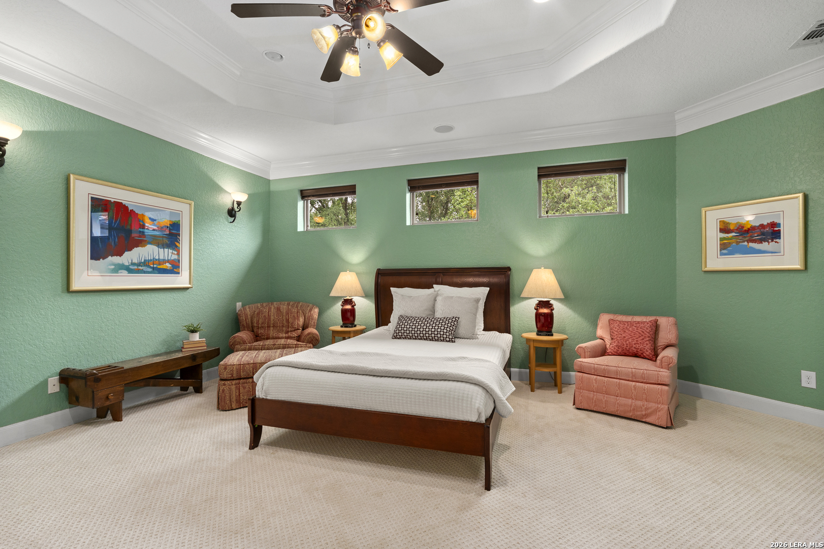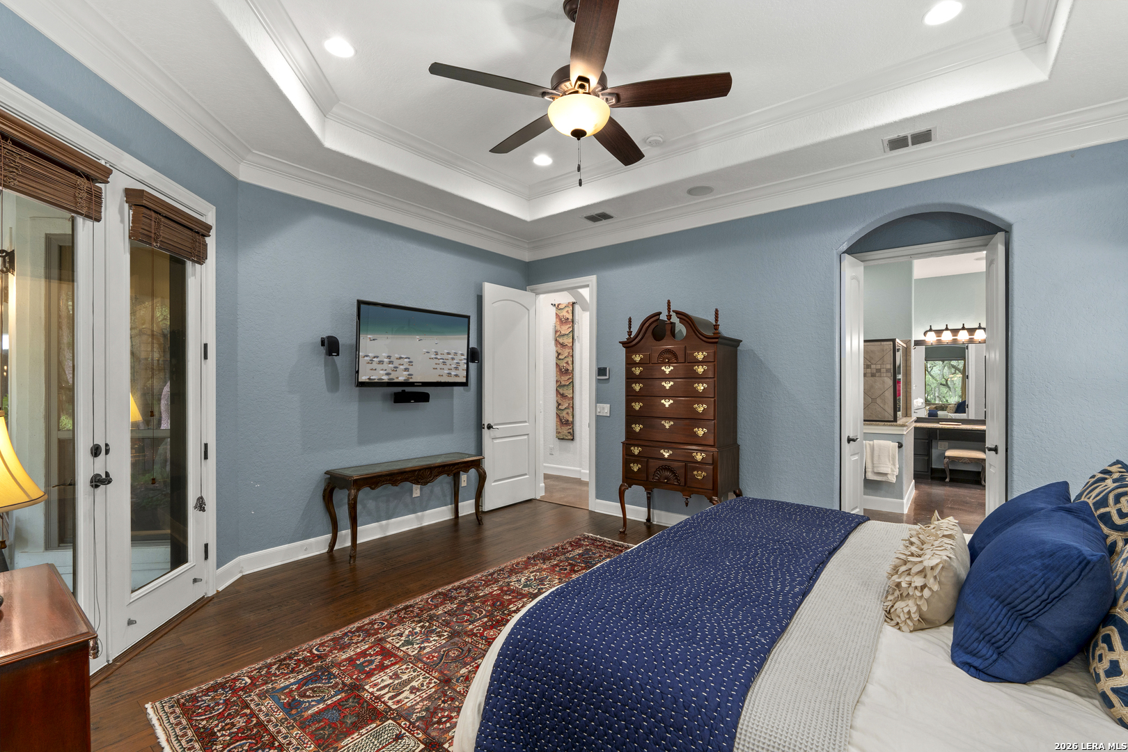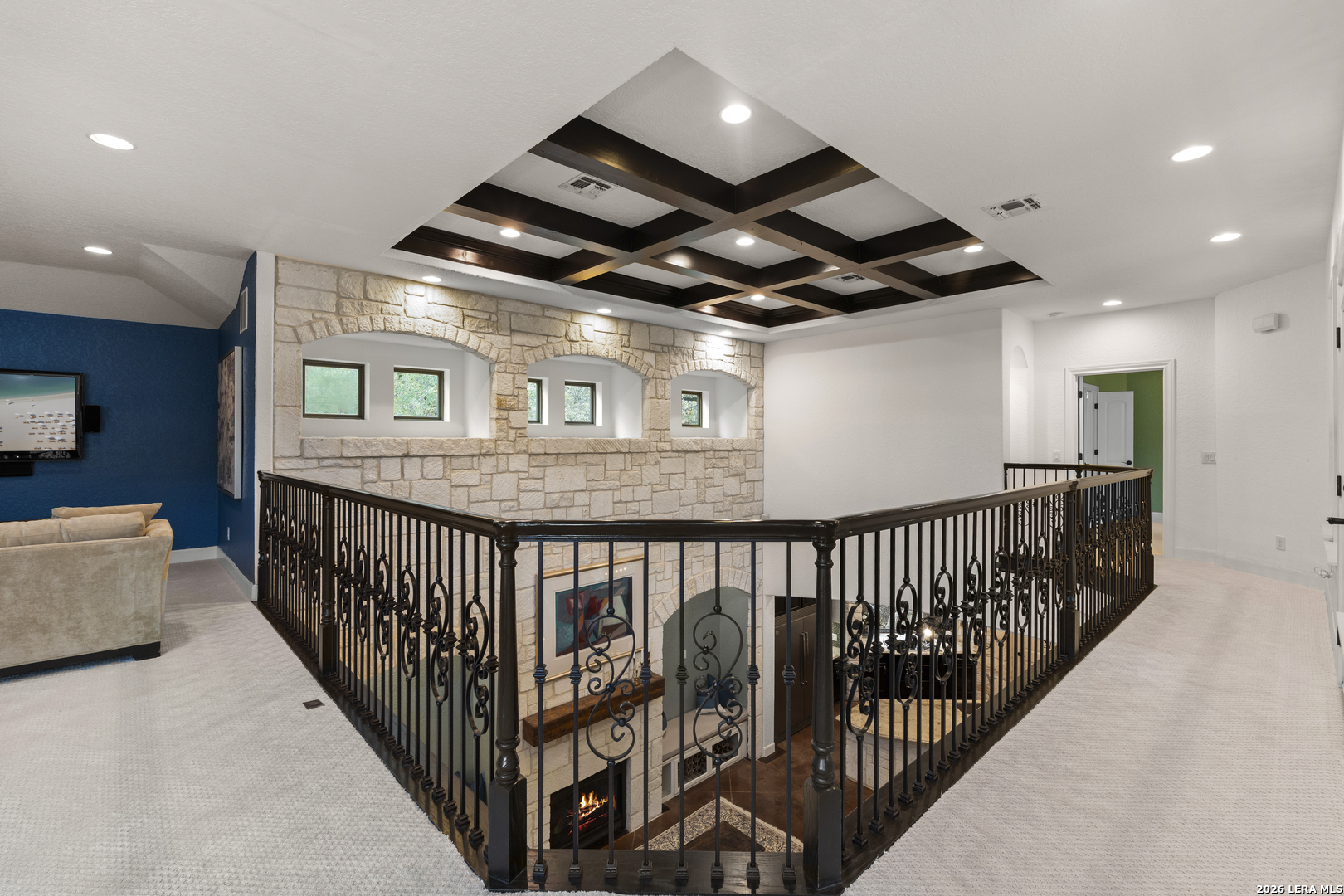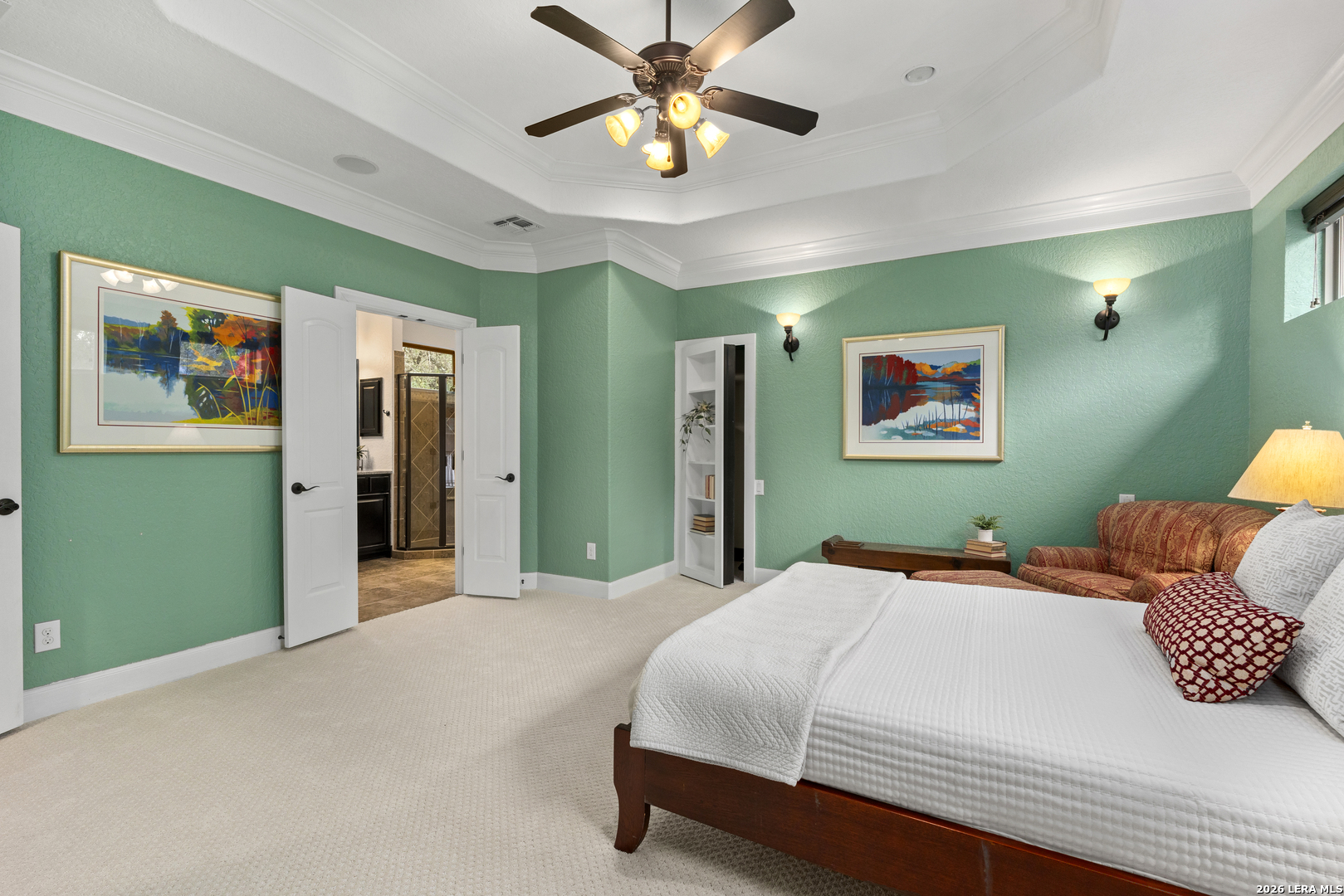 Set behind a long private drive on a rare .48 acre greenbelt lot, this Italian inspired villa offers a level of privacy, scale, and resort style living seldom found in San Antonio. From the moment you arrive, the home makes a lasting impression. Exceptional curb appeal is framed by over $250,000 in thoughtfully designed, drought tolerant, cold hardy landscaping that blends beautifully with the natural surroundings. Designed for both everyday living and exceptional entertaining, the outdoor spaces are a true highlight. The recently resurfaced heated pool and spa are perfectly positioned to overlook the lush greenbelt, while multiple covered patios create seamless indoor/outdoor living. A casita offers flexibility for guests or a private office. Inside, the home combines warmth and scale with a highly functional layout. The kitchen is well appointed with a builtin refrigerator, gas cooktop, and double ovens. The primary suite features a sitting area, direct patio access to the pool, and a spacious walk in closet. Upstairs, a secondary primary suite offers its own private laundry-perfect for multi-generational living or extended guests. New carpet throughout the upper level adds a move in ready touch. Behind the scenes, the home is equipped with a suite of high performance features designed for comfort and efficiency, including solar panels, spray foam insulation and radiant barrier, delivering a quieter, more comfortable living environment with the added benefit of long term energy savings. Modern convenience meets timeless design with whole home automation controlling lighting, climate, and sound. Tucked within a small, gated enclave yet just minutes from 1604, I10 and 410, close to the medical center area, and premier shopping and dining, this is a property that offers both privacy and accessibility, an increasingly rare combination. Homes of this caliber, on lots of this size and setting, rarely come to market.
