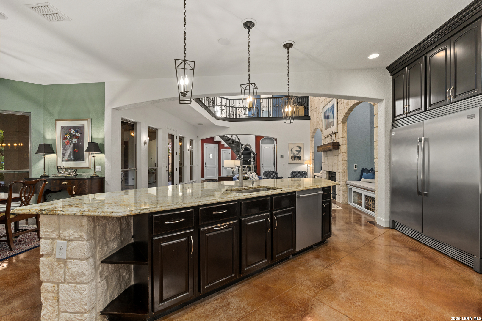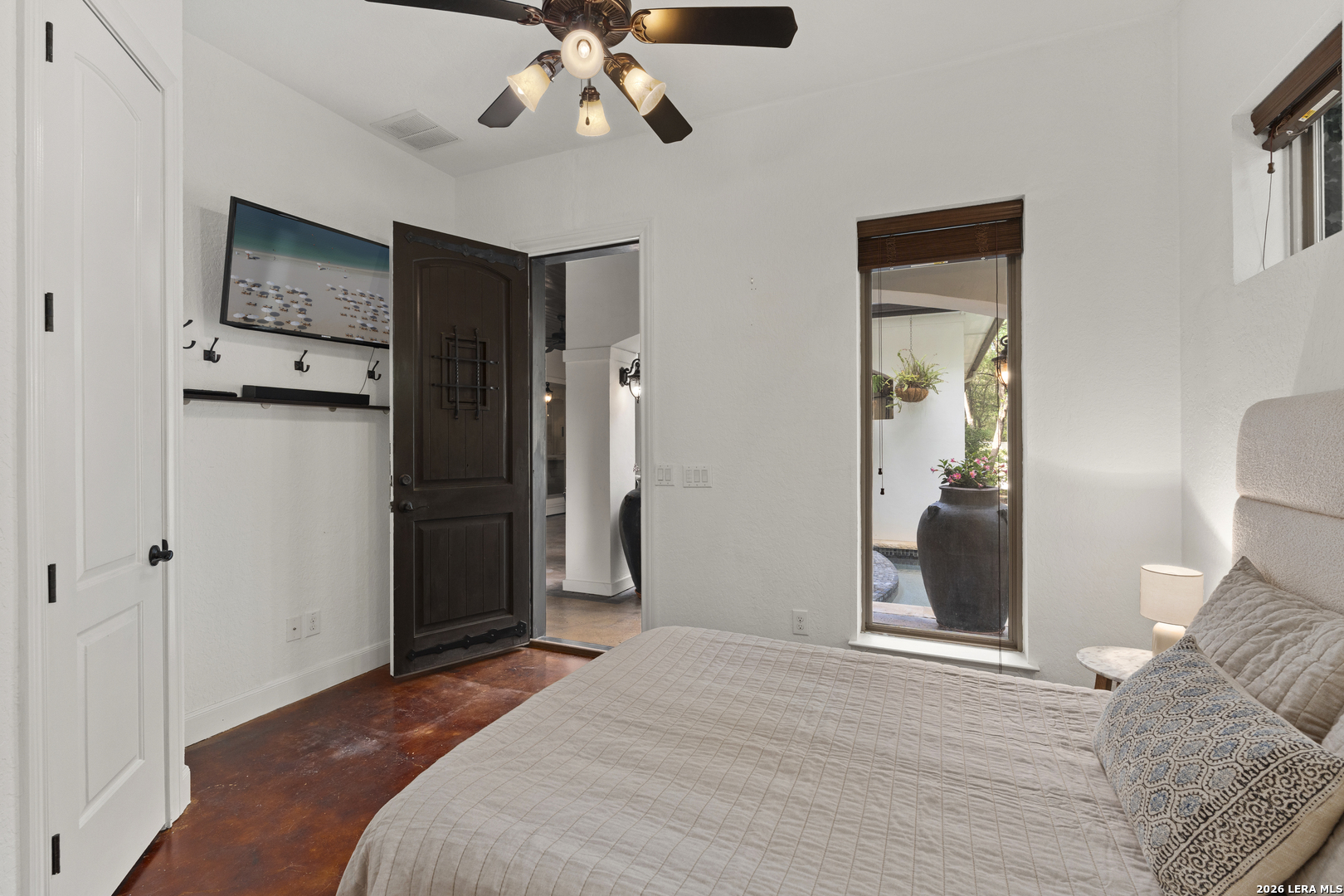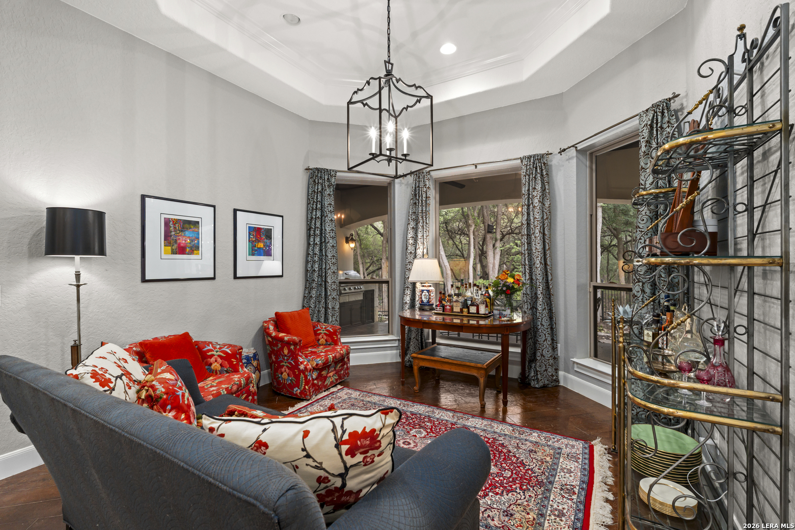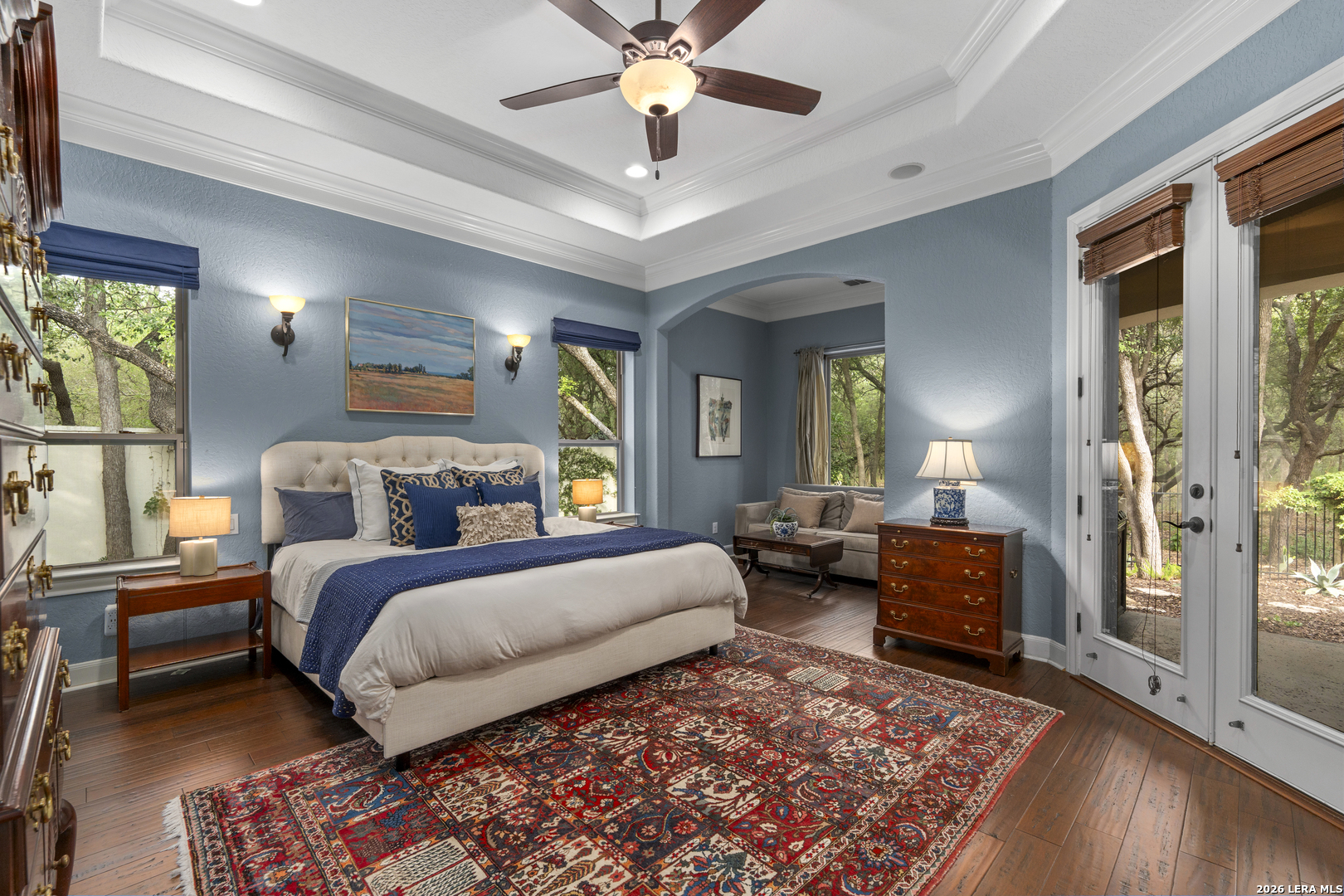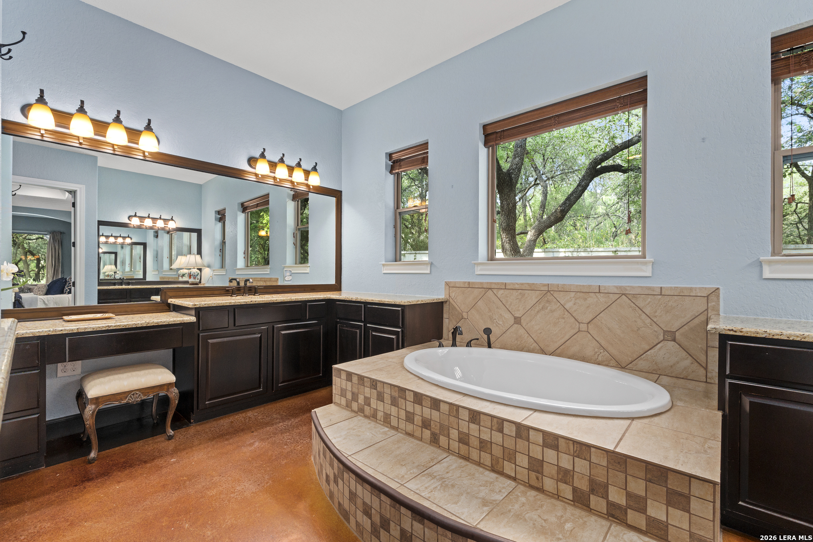 Set behind a long private drive on a rare .48 acre greenbelt lot, this Italian inspired villa offers a level of privacy, scale, and resort style living seldom found in San Antonio. From the moment you arrive, the home makes a lasting impression. Exceptional curb appeal is framed by over $250,000 in thoughtfully designed, drought tolerant, cold hardy landscaping that blends beautifully with the natural surroundings. Designed for both everyday living and exceptional entertaining, the outdoor spaces are a true highlight. The recently resurfaced heated pool and spa are perfectly positioned to overlook the lush greenbelt, while multiple covered patios create seamless indoor/outdoor living. A casita offers flexibility for guests or a private office. Inside, the home combines warmth and scale with a highly functional layout. The kitchen is well appointed with a builtin refrigerator, gas cooktop, and double ovens. The primary suite features a sitting area, direct patio access to the pool, and a spacious walk in closet. Upstairs, a secondary primary suite offers its own private laundry-perfect for multi-generational living or extended guests. New carpet throughout the upper level adds a move in ready touch. Behind the scenes, the home is equipped with a suite of high performance features designed for comfort and efficiency, including solar panels, spray foam insulation and radiant barrier, delivering a quieter, more comfortable living environment with the added benefit of long term energy savings. Modern convenience meets timeless design with whole home automation controlling lighting, climate, and sound. Tucked within a small, gated enclave yet just minutes from 1604, I10 and 410, close to the medical center area, and premier shopping and dining, this is a property that offers both privacy and accessibility, an increasingly rare combination. Homes of this caliber, on lots of this size and setting, rarely come to market.