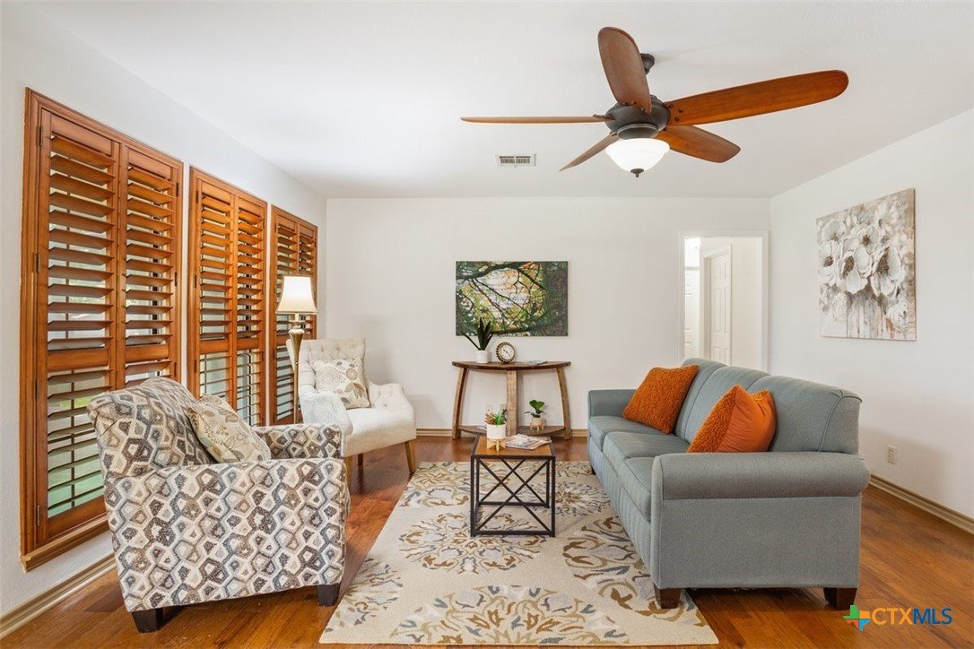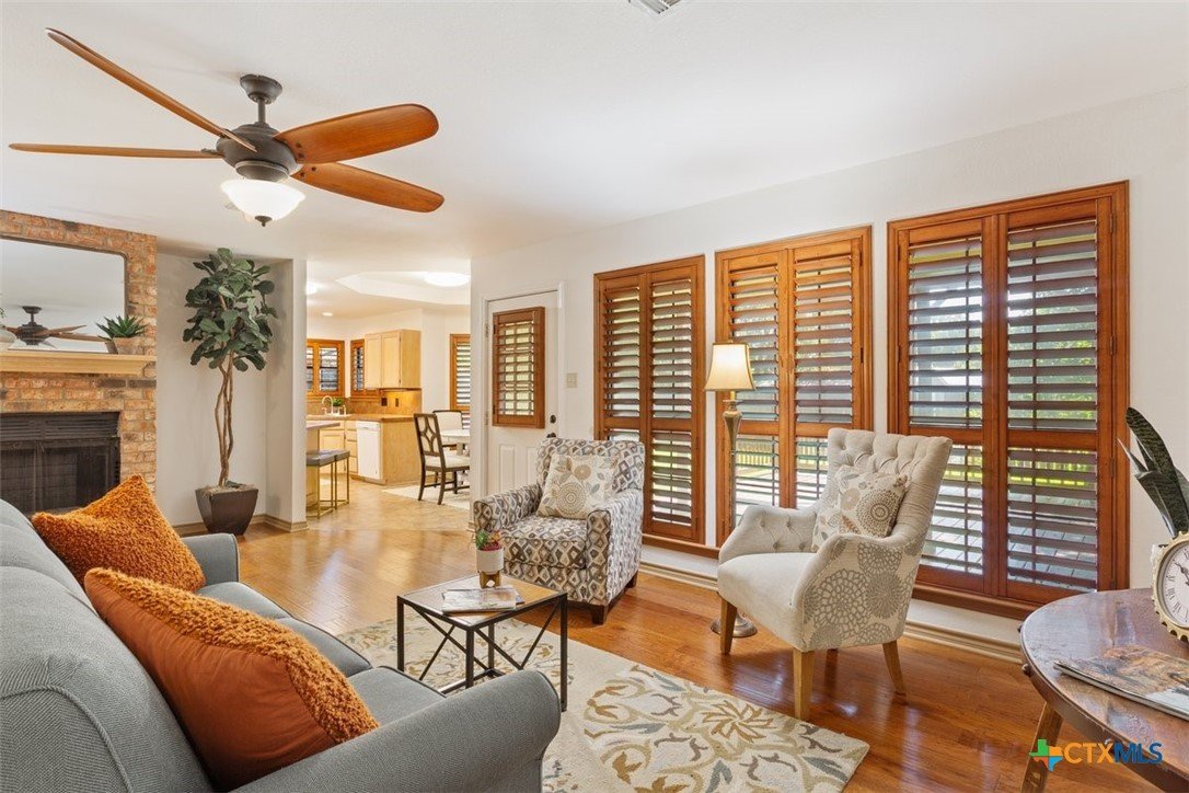 Belton Schools, Central Belton location. Close to shopping, schools and Belton Lake. This pristine one owner home has a beautifully manicured, established fenced park like yard. Enjoy the huge backyard deck with cover for all your family fun. This 3/2 has a nice breakfast area, kitchen and living room that open to each other. Beautiful brick wood burning fireplace makes all the living nice and cozy. The primary is large and features access to the patio/deck. The suite has dual vanities, separate shower, soaking tub and his and her closets. All bedrooms have real wooden hunter ceiling fans. This home has recent shingles, HVAC and beautiful hand scraped hickory floors and wooden shutters throughout. Priced to sell