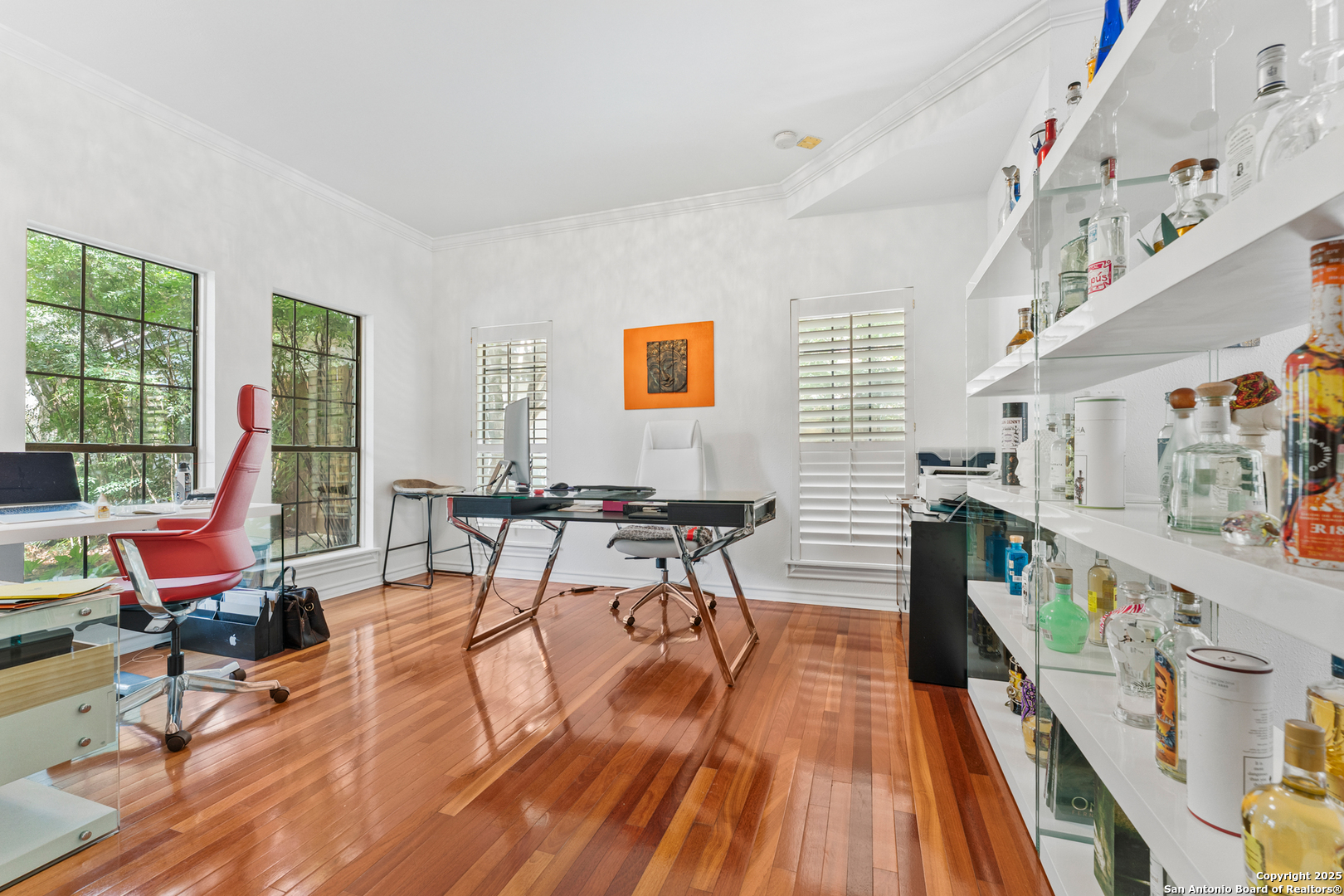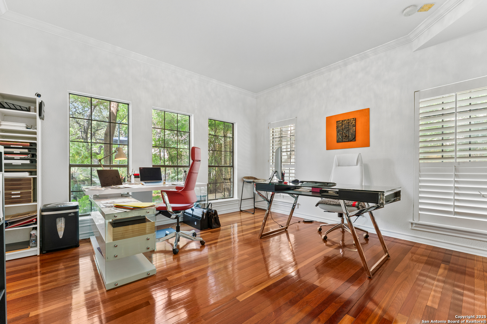 OPEN HOUSE SUNDAY 2:00-5:00 pm. STUNNING TRADITIONAL MASTERPIECE WITH A MODERN FLAIR! Situated on a quiet secluded cul de sac lot with a remarkably flexible floor plan, this four bedroom four and a half bath home offers a space for every need both indoors and out. Inside you will find gleaming Brazilian Cherry Wood floors complimented with ceramic tile, two living areas, separate formal dining, high ceilings, gas log fireplace, contemporary lighting, a modern island kitchen with upgraded appliances, reverse osmosis water filtration system, instant hot water dispenser, hard counters, plantation shutters, and more. The primary suite is downstairs with a beautifully updated bath and offers both privacy and convenience, plus an adjoining bonus room/study that is suitable for any use, and is currently used as an additional primary closet. Upstairs is the music room and three additional bedrooms, one of which includes an additional 13 X 10 foot reading/sitting room. The back yard resembles a country club like setting with a pool, hot tub, seating, decking, mature landscaping and plenty of privacy. Detached garage offers one functioning garage space while the second space has been converted to a maid's or guest suite with a full bath that doubles as a pool bath as well. Lovingly cared for, maintained, and updated by one owner for 23 years, this one of a kind estate can now finally be yours if you act fast. Dining room light fixture is excluded and is being replaced by seller.