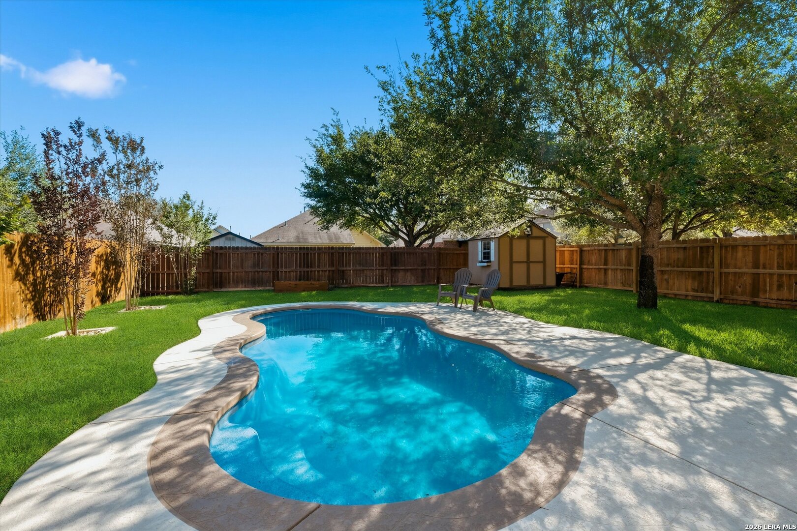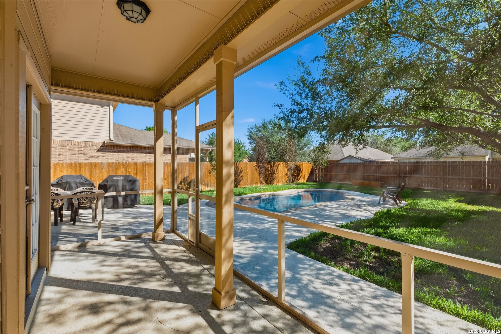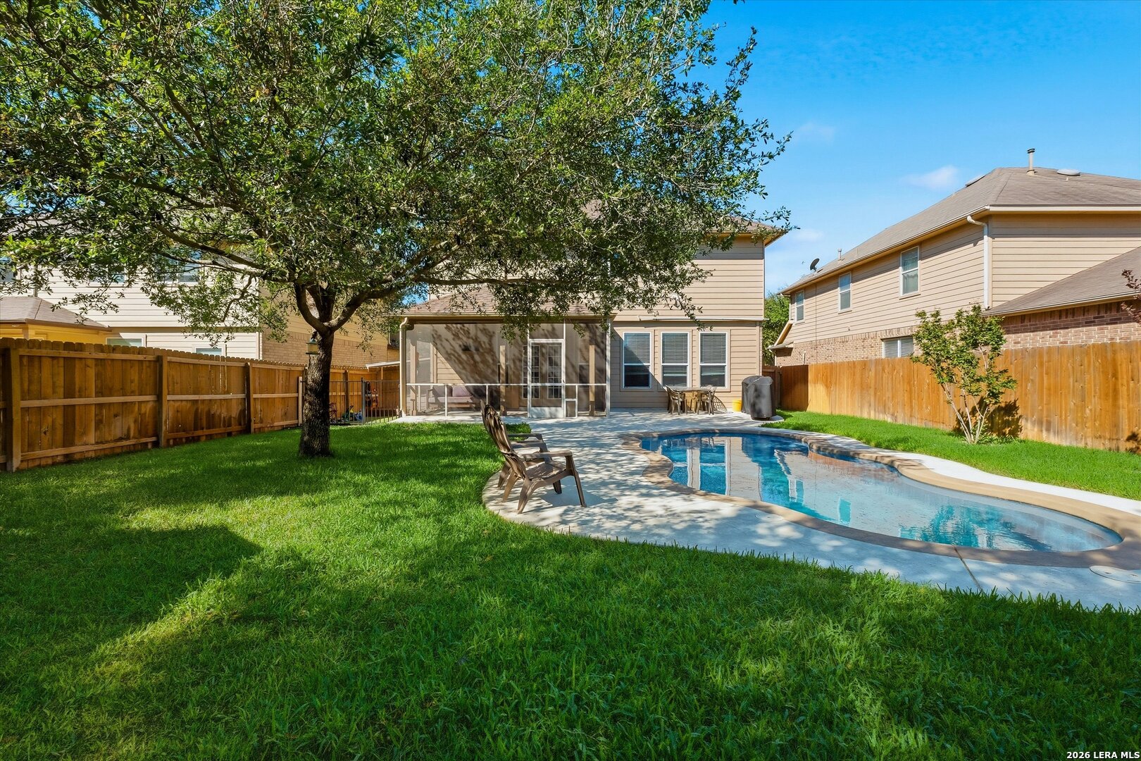 "OPEN HOUSE 04/11/2026 from 12:00 PM to 3:00 PM" Welcome to this beautifully maintained two-story home in the sought-after Sedona community of Schertz, where mature trees and inviting curb appeal set the tone for what's inside. Step through the covered front porch into an open concept main living area featuring wood-look tile flooring and bright natural light, creating a warm and welcoming space for everyday living and entertaining. The kitchen is thoughtfully designed with granite countertops, stainless steel appliances, and gas cooking, offering both style and functionality while seamlessly connecting to the dining area. Upstairs, the spacious primary suite provides a private retreat with a double vanity, separate tub, and shower, while three additional bedrooms offer flexibility for guests, work, or hobbies. Step outside to your own backyard escape, where you can relax inside your screened-in patio or take a dip in the pool. Beyond the home, residents enjoy access to top-rated schools and a prime location near major highways, shopping, and dining, making daily life both convenient and connected. The Sedona community enhances the lifestyle with a resort-style pool, wading pool, open-air pavilion, amphitheater, miles of hike-and-bike trails, greenbelts, ponds, and a centrally located city park, along with a basketball court that also accommodates pickleball and a playground-offering spaces for recreation, relaxation, and connection throughout the neighborhood. This is where your next chapter begins!