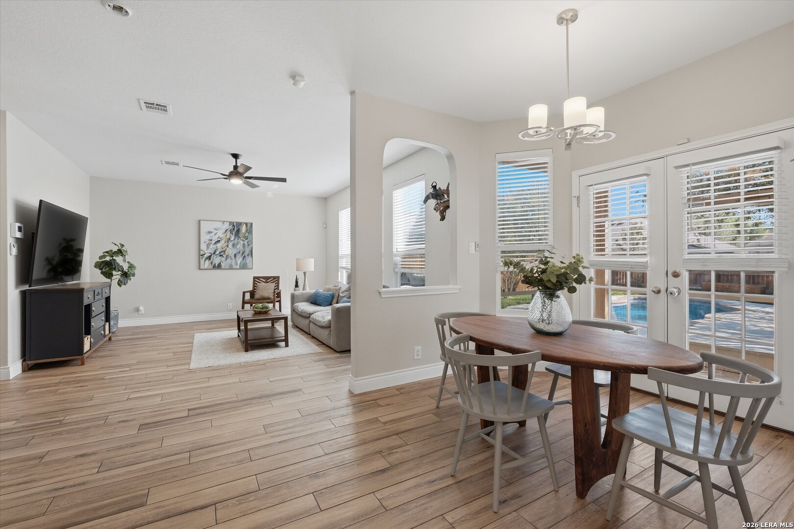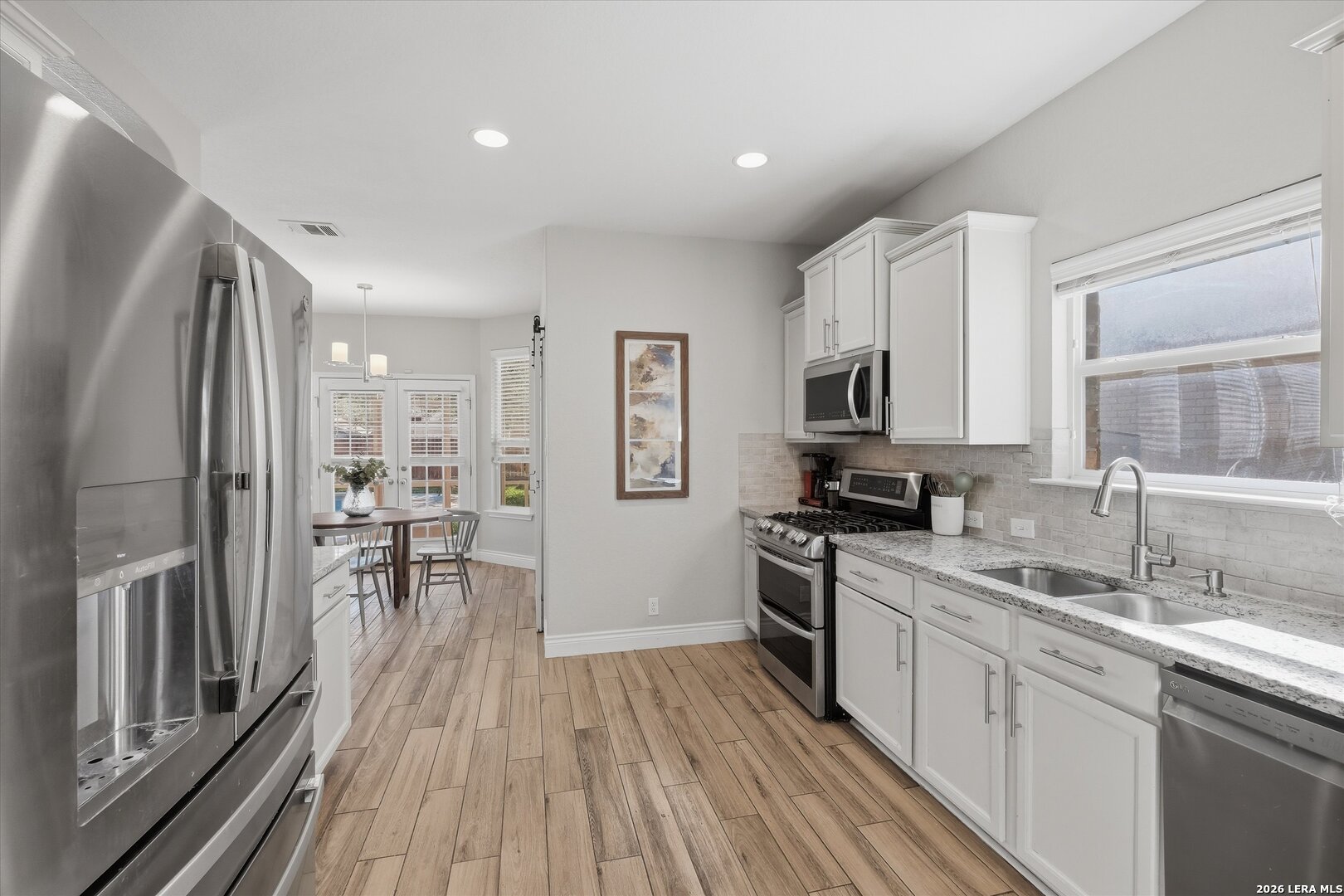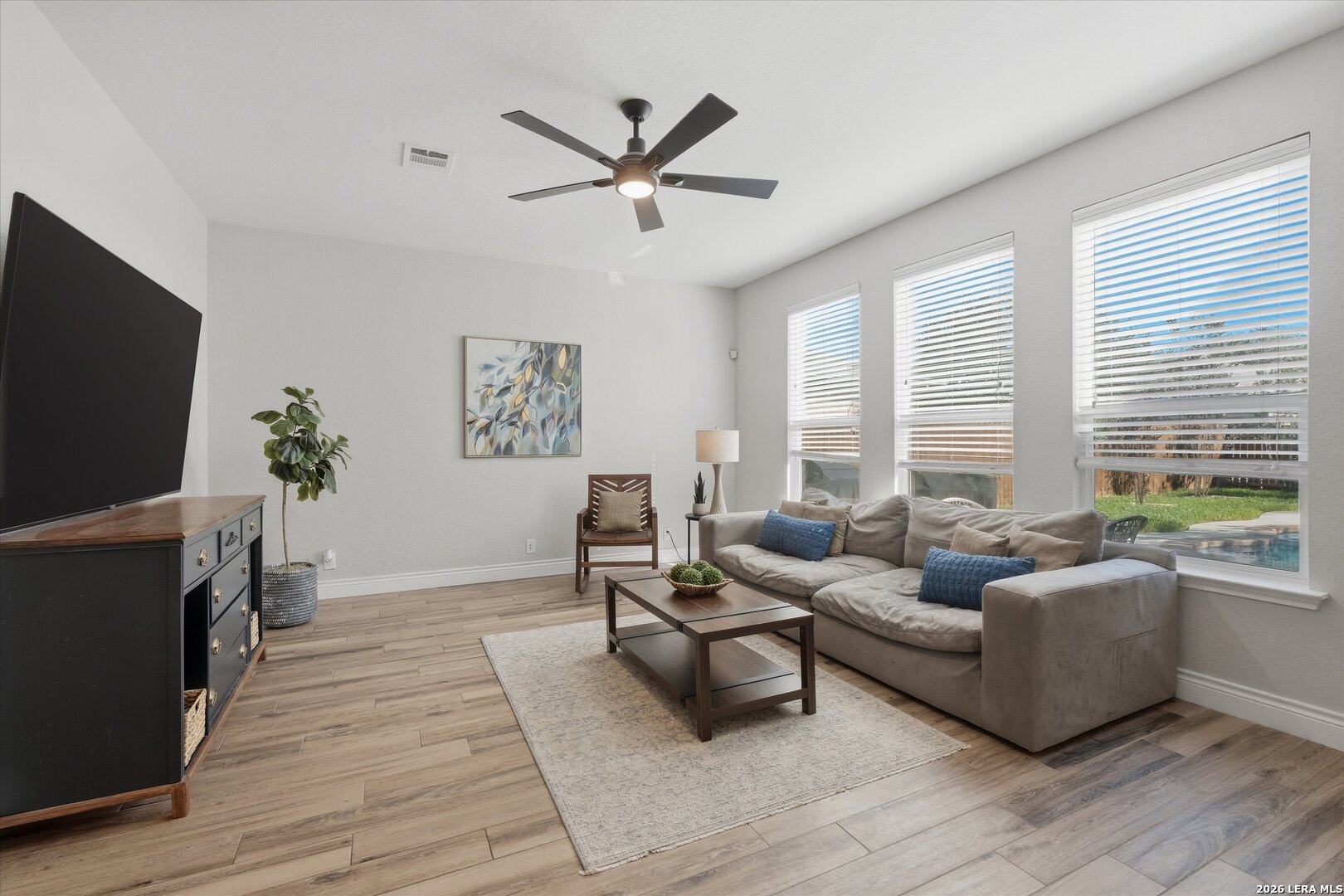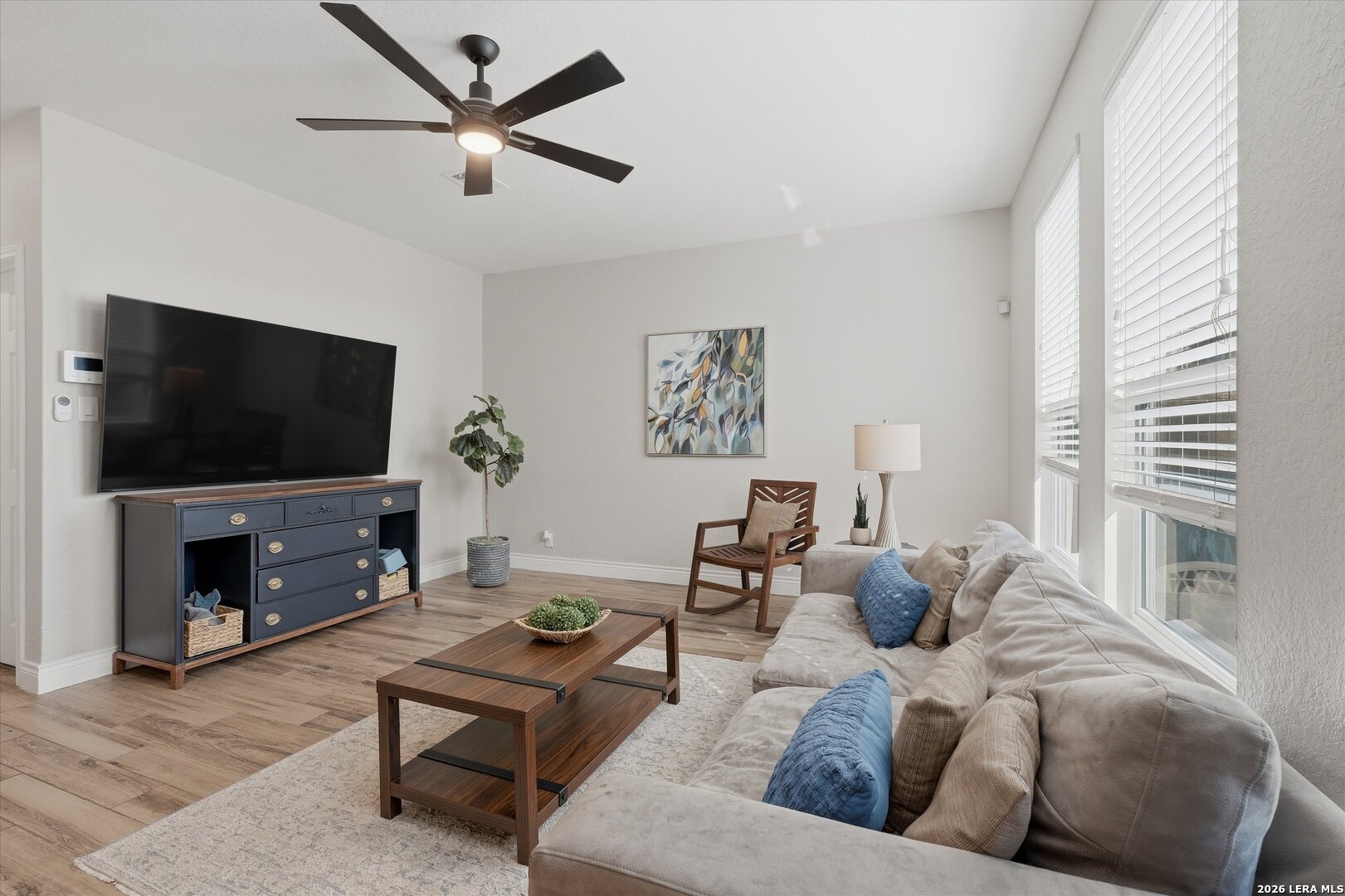 "OPEN HOUSE 04/11/2026 from 12:00 PM to 3:00 PM" Welcome to this beautifully maintained two-story home in the sought-after Sedona community of Schertz, where mature trees and inviting curb appeal set the tone for what's inside. Step through the covered front porch into an open concept main living area featuring wood-look tile flooring and bright natural light, creating a warm and welcoming space for everyday living and entertaining. The kitchen is thoughtfully designed with granite countertops, stainless steel appliances, and gas cooking, offering both style and functionality while seamlessly connecting to the dining area. Upstairs, the spacious primary suite provides a private retreat with a double vanity, separate tub, and shower, while three additional bedrooms offer flexibility for guests, work, or hobbies. Step outside to your own backyard escape, where you can relax inside your screened-in patio or take a dip in the pool. Beyond the home, residents enjoy access to top-rated schools and a prime location near major highways, shopping, and dining, making daily life both convenient and connected. The Sedona community enhances the lifestyle with a resort-style pool, wading pool, open-air pavilion, amphitheater, miles of hike-and-bike trails, greenbelts, ponds, and a centrally located city park, along with a basketball court that also accommodates pickleball and a playground-offering spaces for recreation, relaxation, and connection throughout the neighborhood. This is where your next chapter begins!