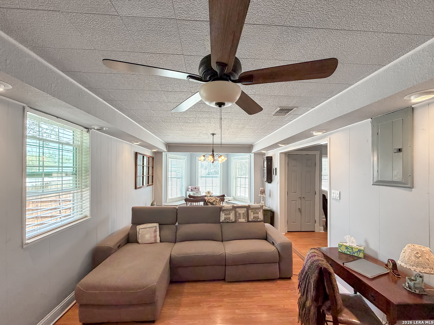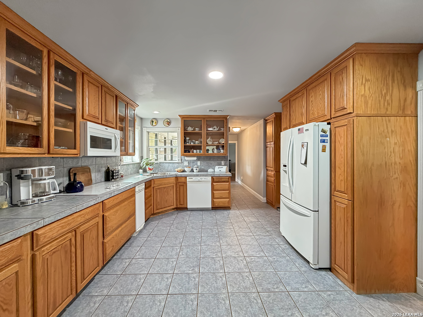 Welcome to your Canyon Lake retreat, where space, comfort, and functionality come together on an impressive double lot with 116 feet of road frontage. This 3-bedroom, 2-bath home offers the perfect blend of everyday livability and room to grow-inside and out. Step inside to find a spacious layout featuring two separate living areas, ideal for entertaining, relaxing, or creating a dedicated office or flex space. The large kitchen is truly the heart of the home, offering abundant cabinetry-including beautiful glass-front cabinet doors, plenty of counter space, and room to gather. Whether you're hosting holidays or enjoying a quiet morning coffee, this kitchen delivers both charm and practicality. The oversized primary suite is complete with a generous walk-in closet and an en-suite bath designed for relaxation. Enjoy a jetted soaking tub and a separate walk-in shower. Additional bedrooms are well-sized and versatile, perfect for family, guests, or hobbies. The oversized two-car garage offers more than just parking, with dedicated workshop space for projects, storage, or creative pursuits. Outside, the property continues to impress with a screened in back porch. A detached, finished shed equipped with water and electricity provides endless possibilities-think studio, office, gym, or additional workspace. Privacy fencing creates a secure and peaceful setting. There's even space for RV parking, making it easy to store your recreational vehicles right at home. With its expansive double lot, mature oak trees and flexible living spaces, this Canyon Lake property offers comfort, privacy, and the space to truly make it your own.