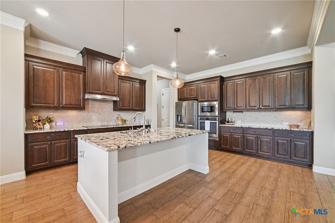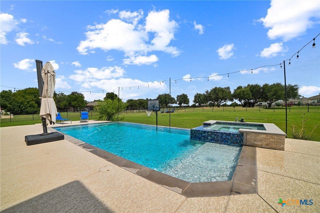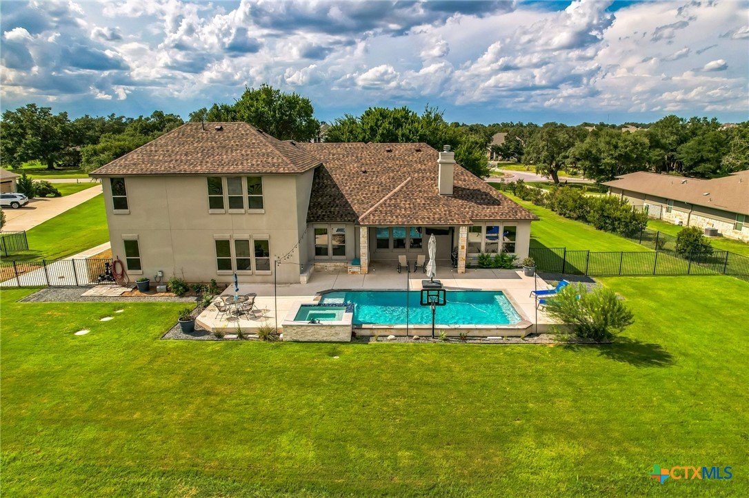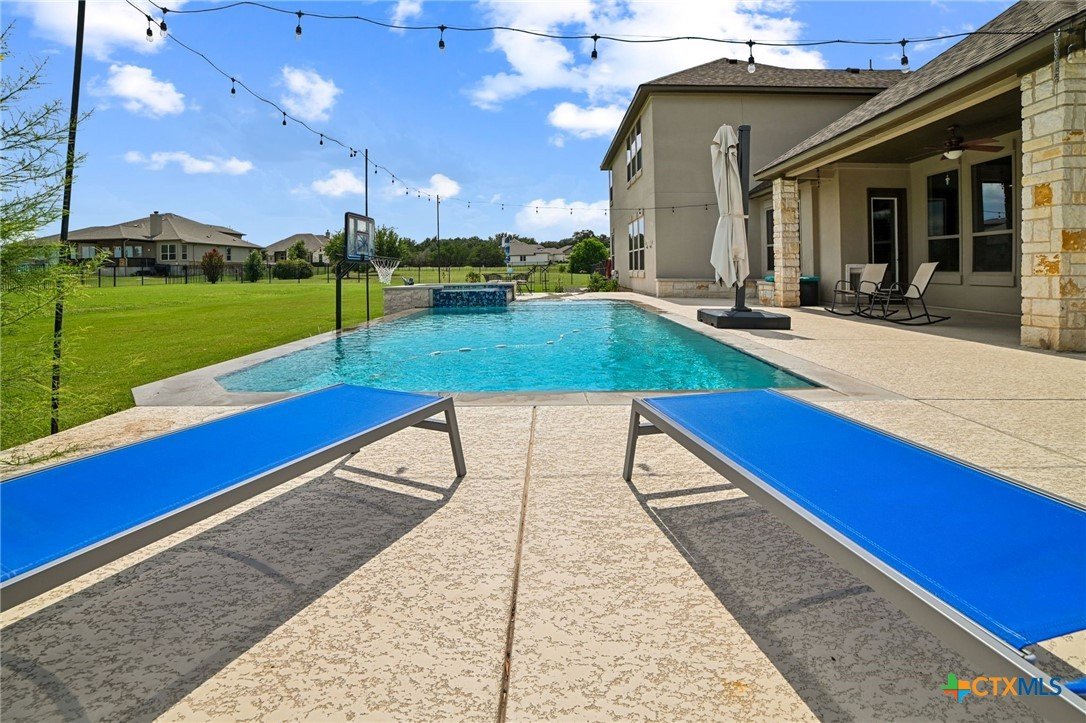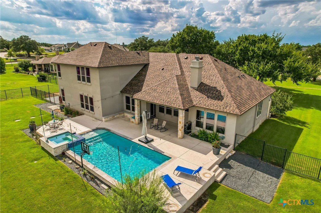 Welcome to 301 Umbrella Sky — where Hill Country charm meets modern luxury! This stunning Drees-built beauty sits on over an acre of peaceful Texas landscape, offering 4 bedrooms, 3.5 baths, and 3,787 sq ft of thoughtfully designed living space. Step inside and you’ll feel the difference — a bright, open floor plan anchored by a beautiful stone fireplace, BRAND NEW carpet just installed throughout, and elegant plantation shutters in every room. The chef’s kitchen steals the show with its generous island, endless storage, and the added feature of night-light accent lighting that casts a cozy theater-style glow in both the kitchen and living room — perfect for movie nights or relaxed evenings at home. Upstairs, discover a private guest suite with its own bedroom, bath, and living area — ideal for visitors, teens, or your dream home office. Outside, unwind by your sparkling pool, soak in the revamped spa with new tile, or enjoy a fireside chat under the stars. Exterior down-lights highlight the home’s curb appeal after dark, while mature trees frame the front yard and the sprawling backyard awaits your custom touch — add trees, gardens, or your own privacy oasis. Recent updates include a new $35K roof (2025), cool-coated pool deck, revamped spa and extended driveway for extra parking. Zoned to top-rated Liberty Hill ISD, this home blends peaceful country living with easy access to city conveniences. 301 Umbrella Sky isn’t just a home — it’s a lifestyle. Come see why this Liberty Hill gem shines day and night!