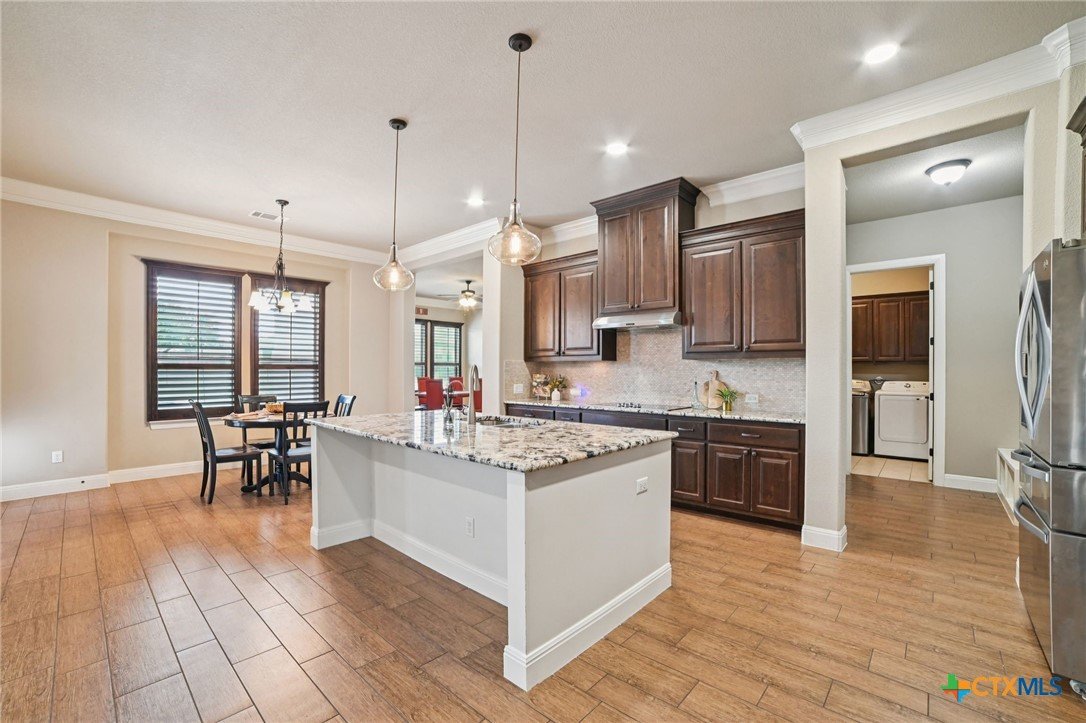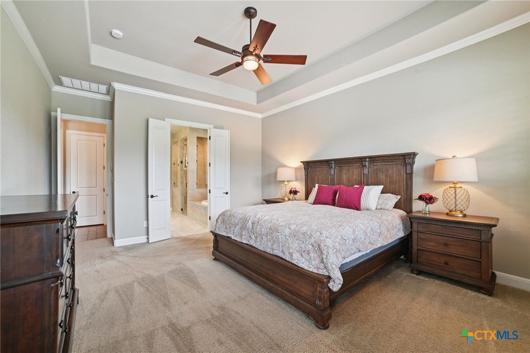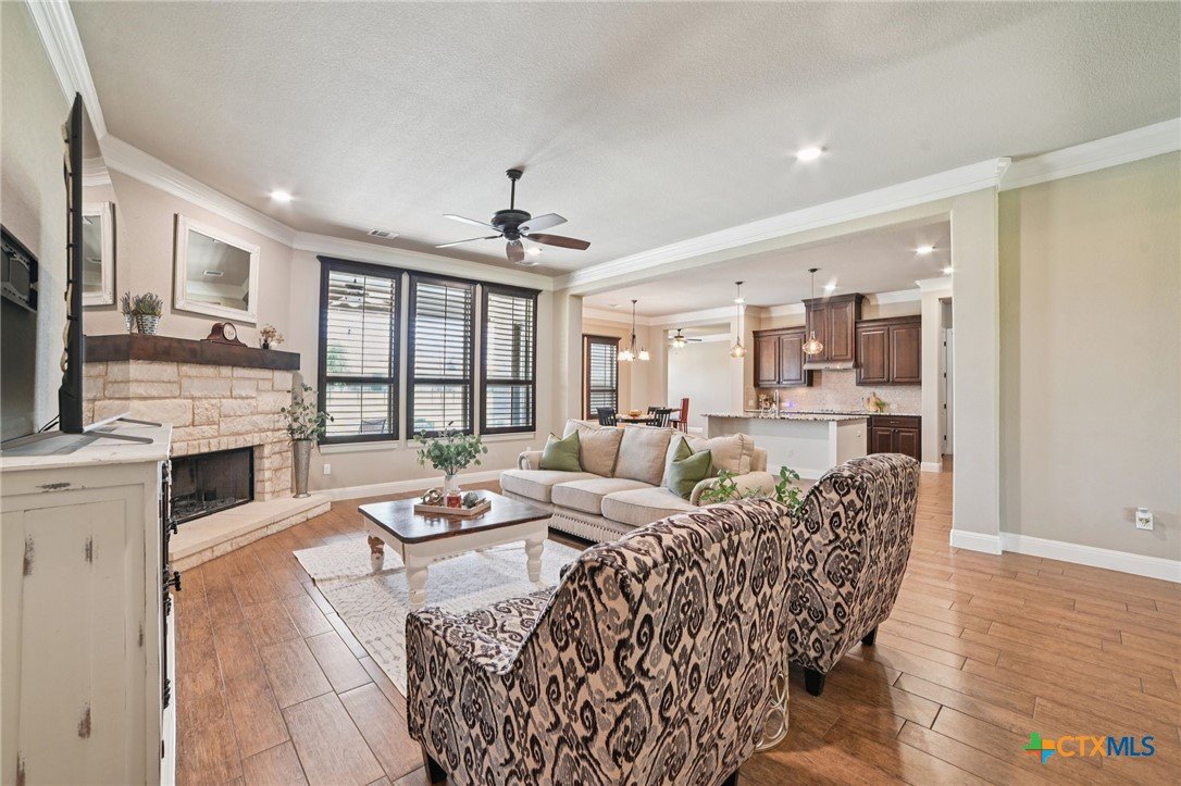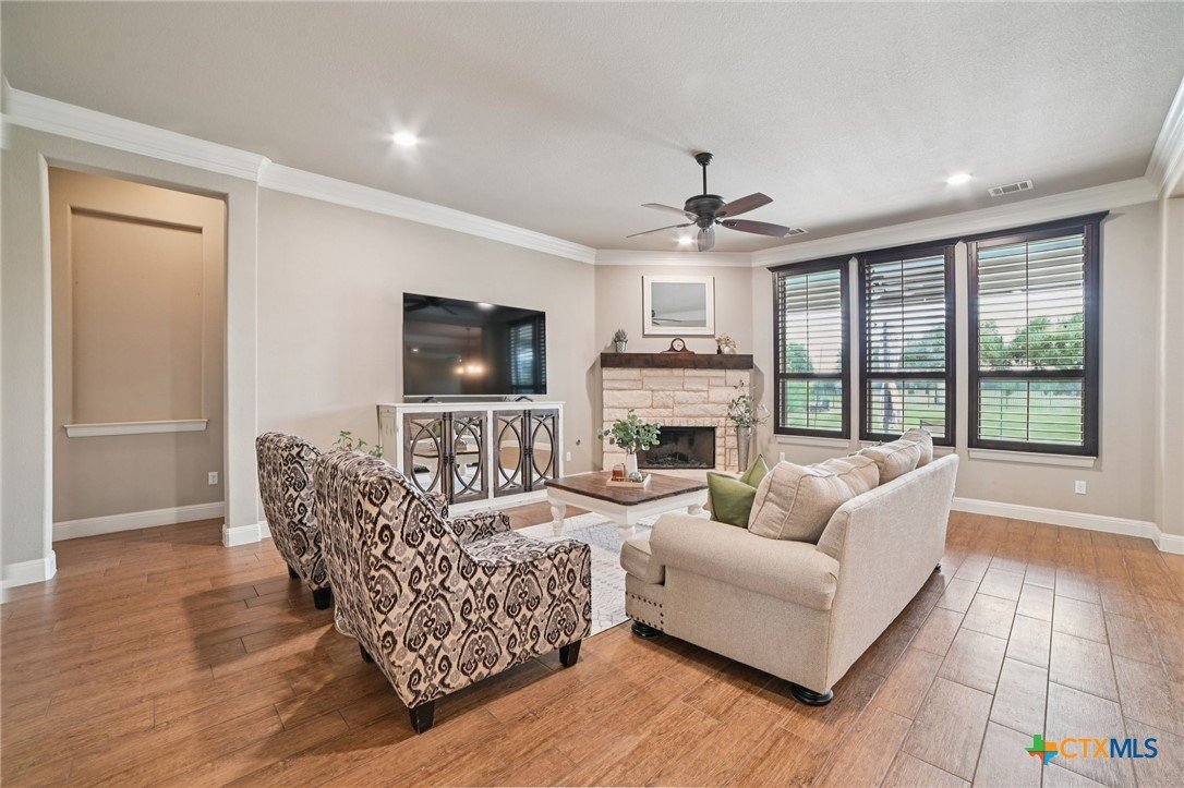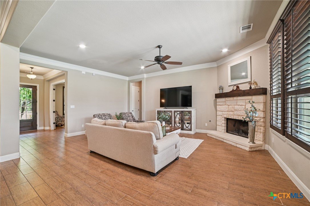 Welcome to 301 Umbrella Sky — where Hill Country charm meets modern luxury! This stunning Drees-built beauty sits on over an acre of peaceful Texas landscape, offering 4 bedrooms, 3.5 baths, and 3,787 sq ft of thoughtfully designed living space. Step inside and you’ll feel the difference — a bright, open floor plan anchored by a beautiful stone fireplace, BRAND NEW carpet just installed throughout, and elegant plantation shutters in every room. The chef’s kitchen steals the show with its generous island, endless storage, and the added feature of night-light accent lighting that casts a cozy theater-style glow in both the kitchen and living room — perfect for movie nights or relaxed evenings at home. Upstairs, discover a private guest suite with its own bedroom, bath, and living area — ideal for visitors, teens, or your dream home office. Outside, unwind by your sparkling pool, soak in the revamped spa with new tile, or enjoy a fireside chat under the stars. Exterior down-lights highlight the home’s curb appeal after dark, while mature trees frame the front yard and the sprawling backyard awaits your custom touch — add trees, gardens, or your own privacy oasis. Recent updates include a new $35K roof (2025), cool-coated pool deck, revamped spa and extended driveway for extra parking. Zoned to top-rated Liberty Hill ISD, this home blends peaceful country living with easy access to city conveniences. 301 Umbrella Sky isn’t just a home — it’s a lifestyle. Come see why this Liberty Hill gem shines day and night!