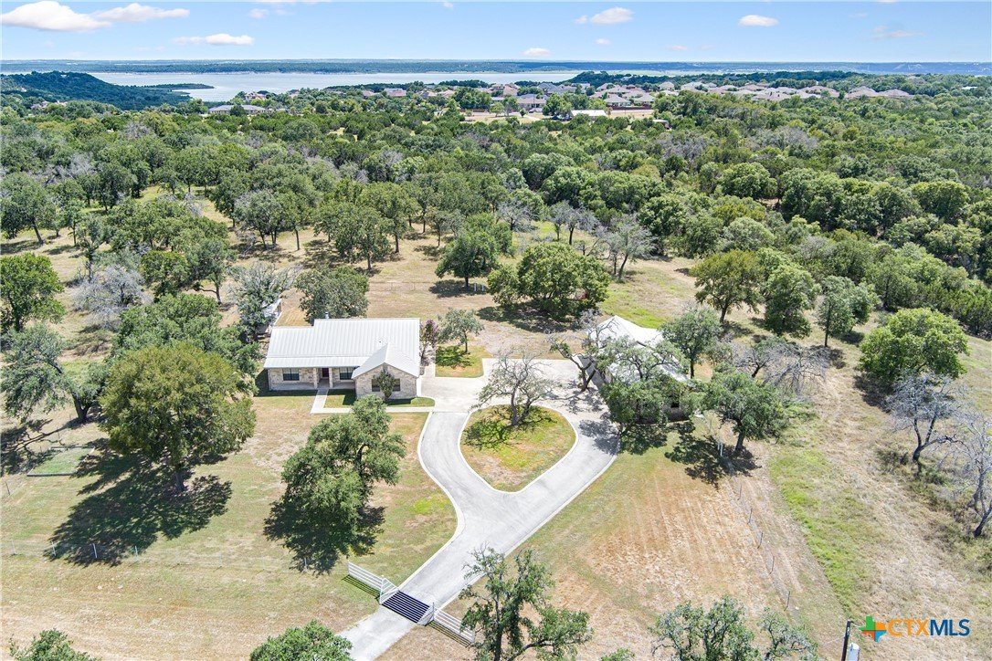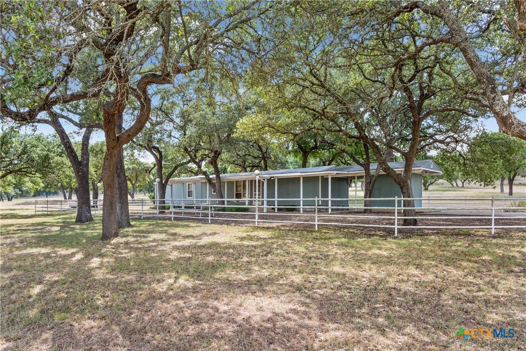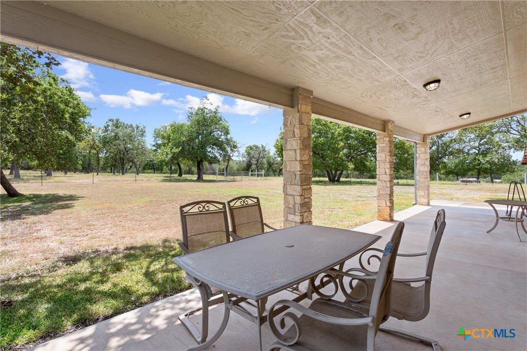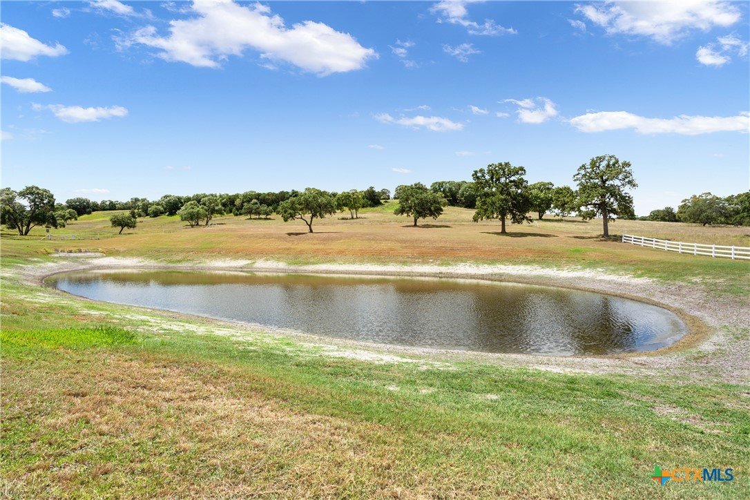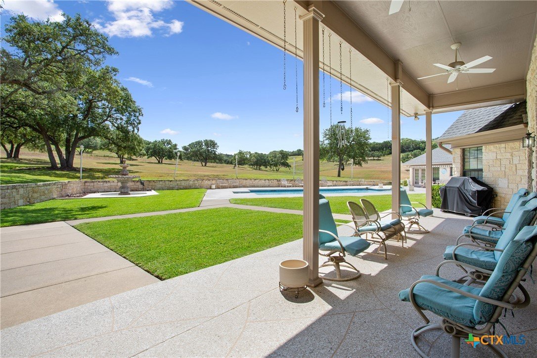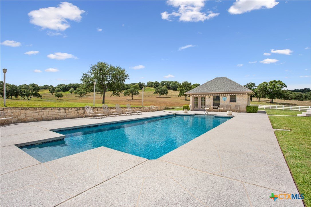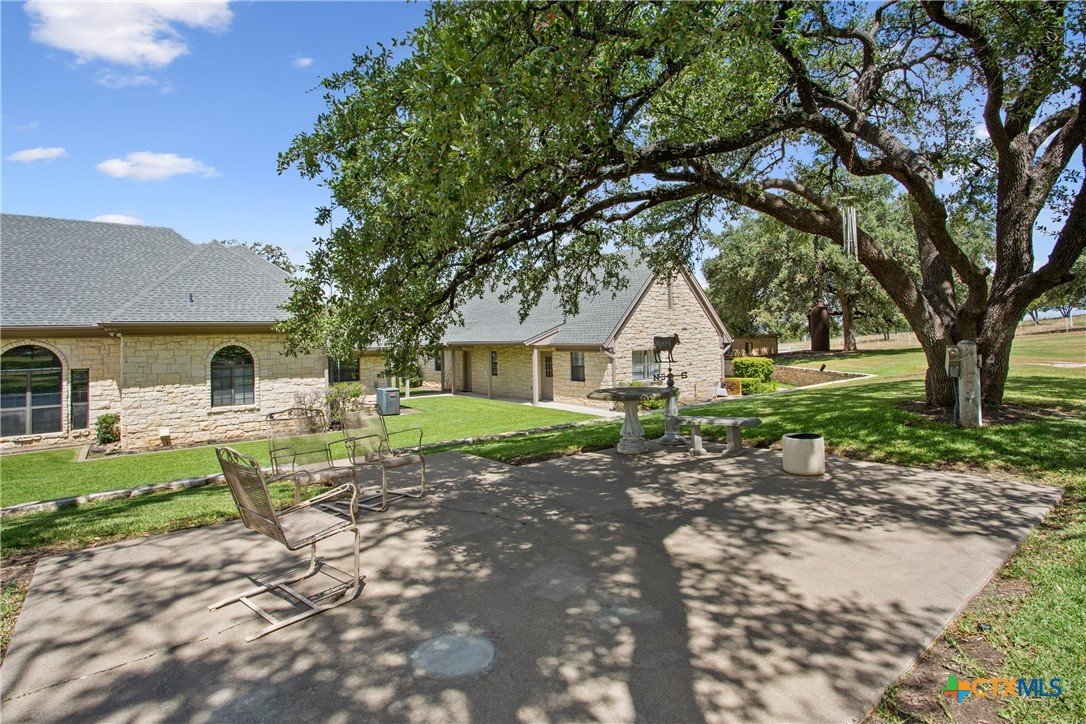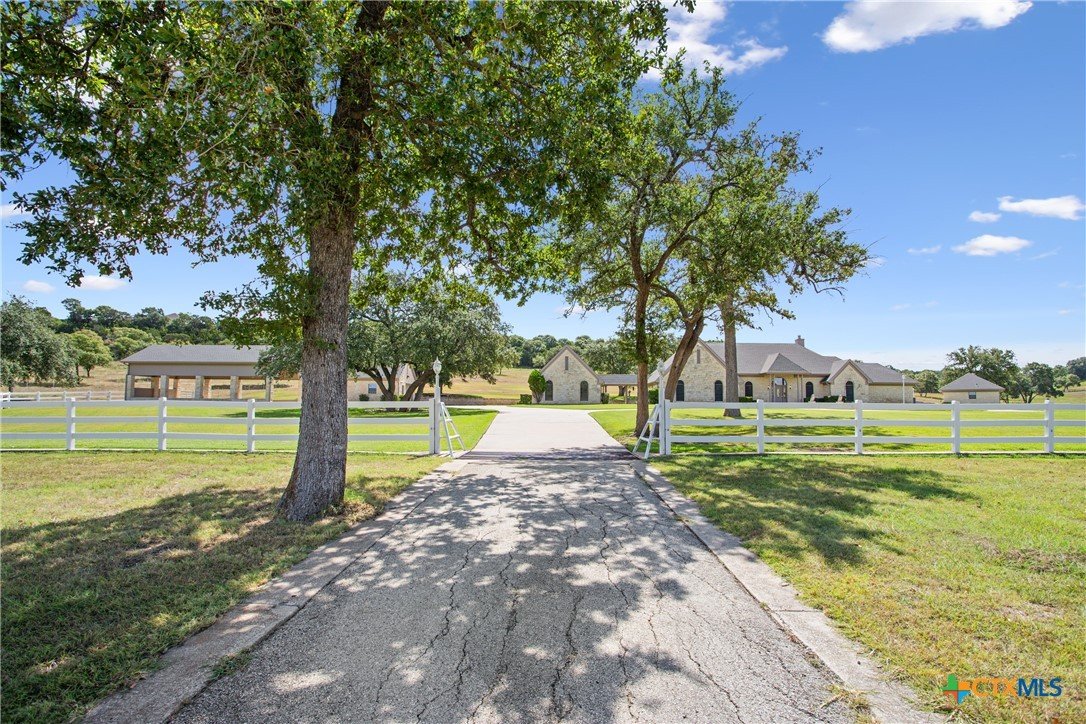 Situated on 191 acres in Nolanville, Texas, this substantial custom stone residence boasts a circular driveway, fenced premises, a spacious carport, and a garage for over 5 cars. The property also includes a pool with a pool/guest house, along with a covered patio. With 4 bedrooms and 2 bathrooms, the residence spans over 5300 square feet and features office space, beamed ceilings, a wood-burning fireplace, a wet bar, and a formal dining room. The expansive master bedroom offers a double vanity, a garden tub, and ample natural light. Additionally, the property includes a large stock tank.
