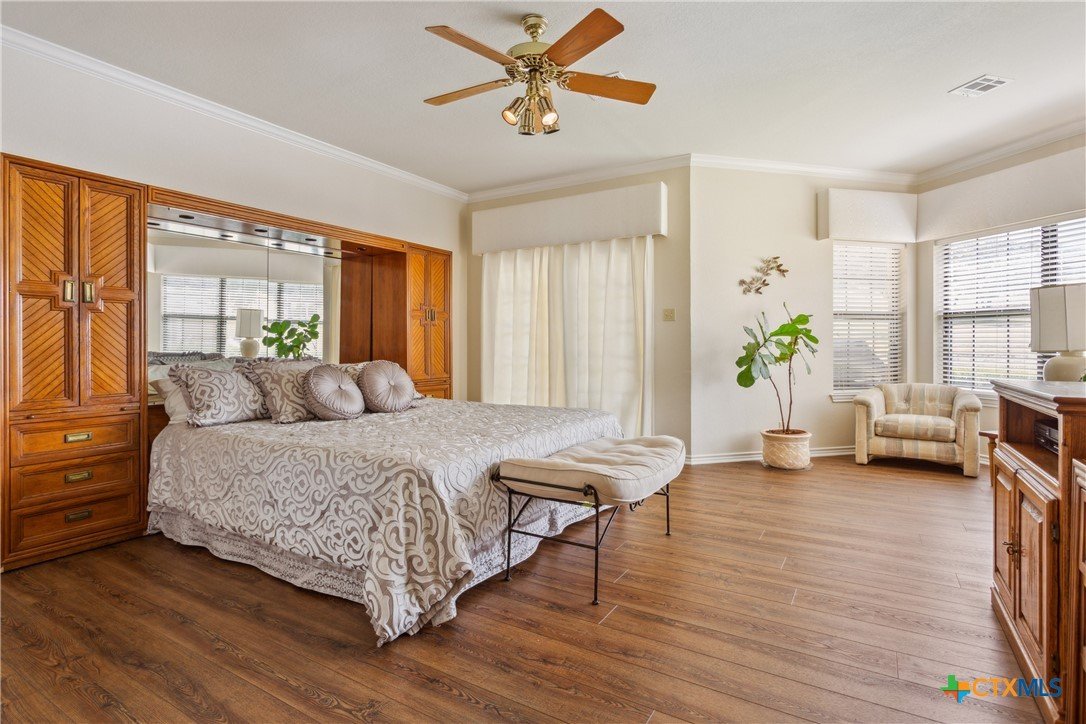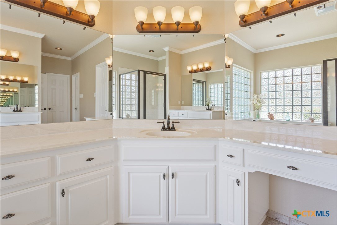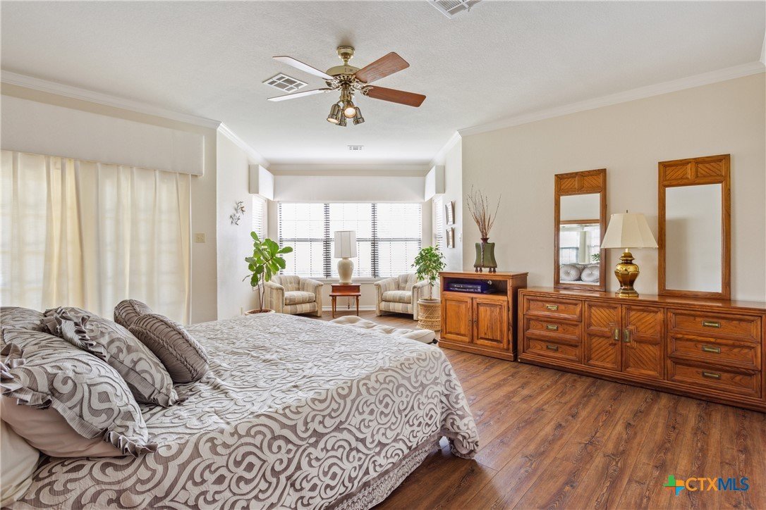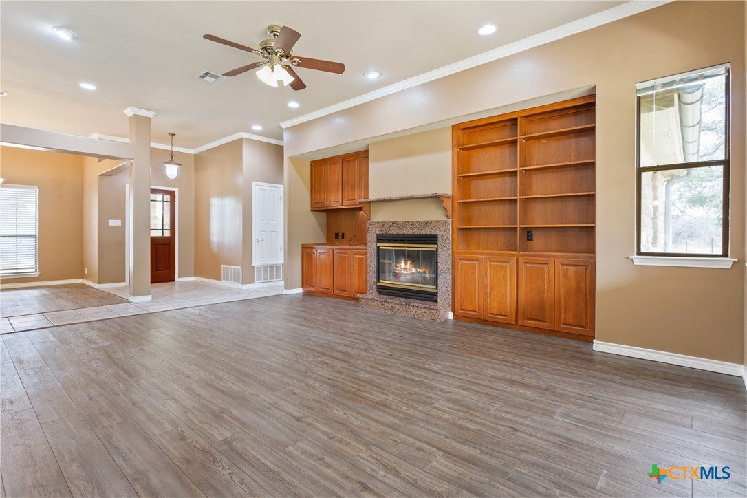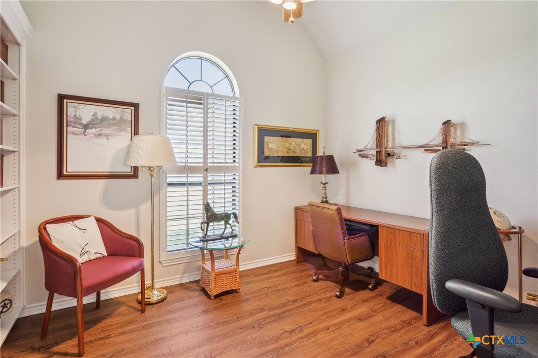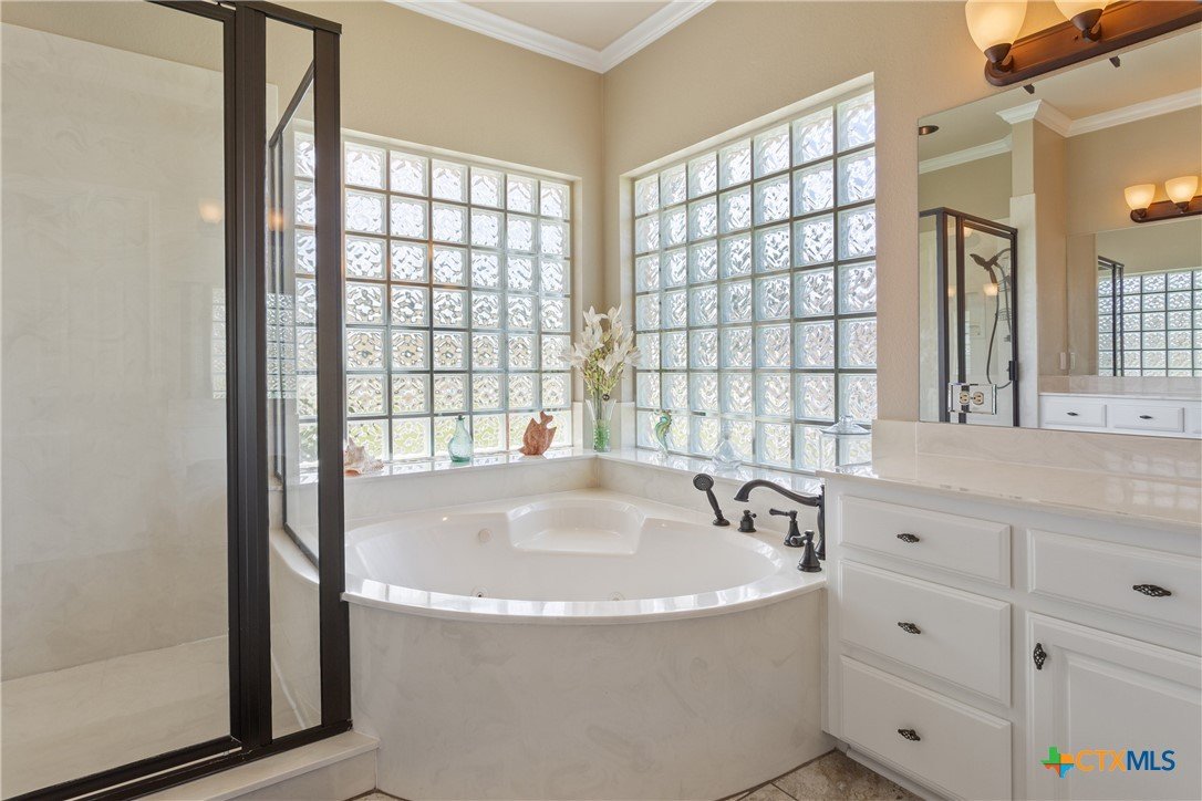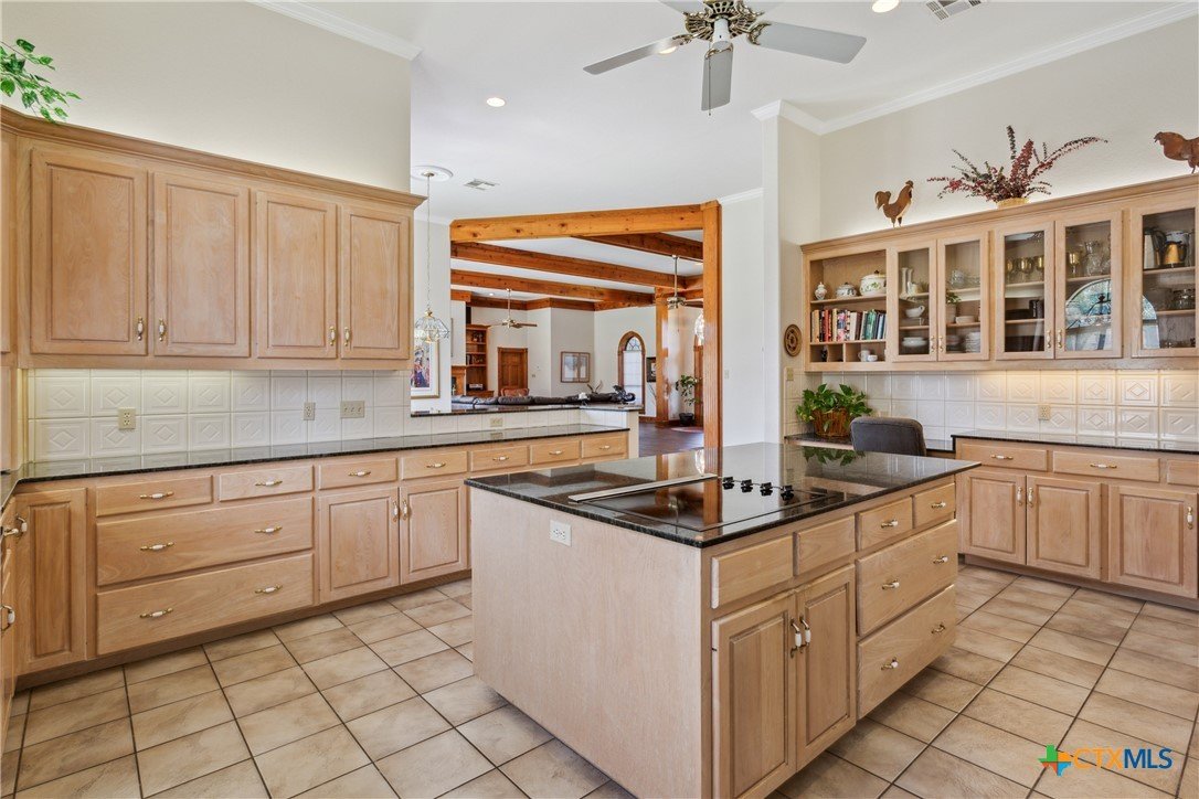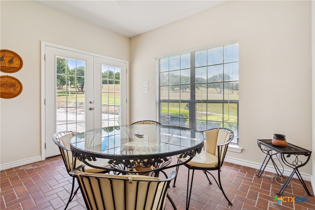 Situated on 191 acres in Nolanville, Texas, this substantial custom stone residence boasts a circular driveway, fenced premises, a spacious carport, and a garage for over 5 cars. The property also includes a pool with a pool/guest house, along with a covered patio. With 4 bedrooms and 2 bathrooms, the residence spans over 5300 square feet and features office space, beamed ceilings, a wood-burning fireplace, a wet bar, and a formal dining room. The expansive master bedroom offers a double vanity, a garden tub, and ample natural light. Additionally, the property includes a large stock tank.
