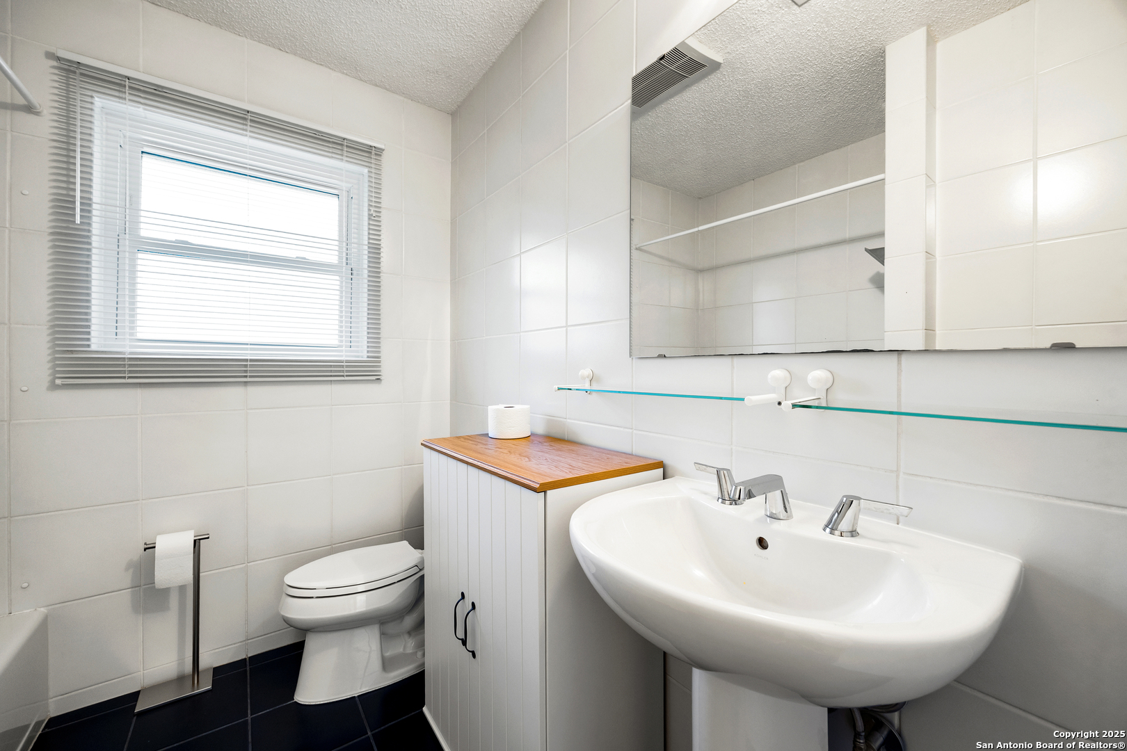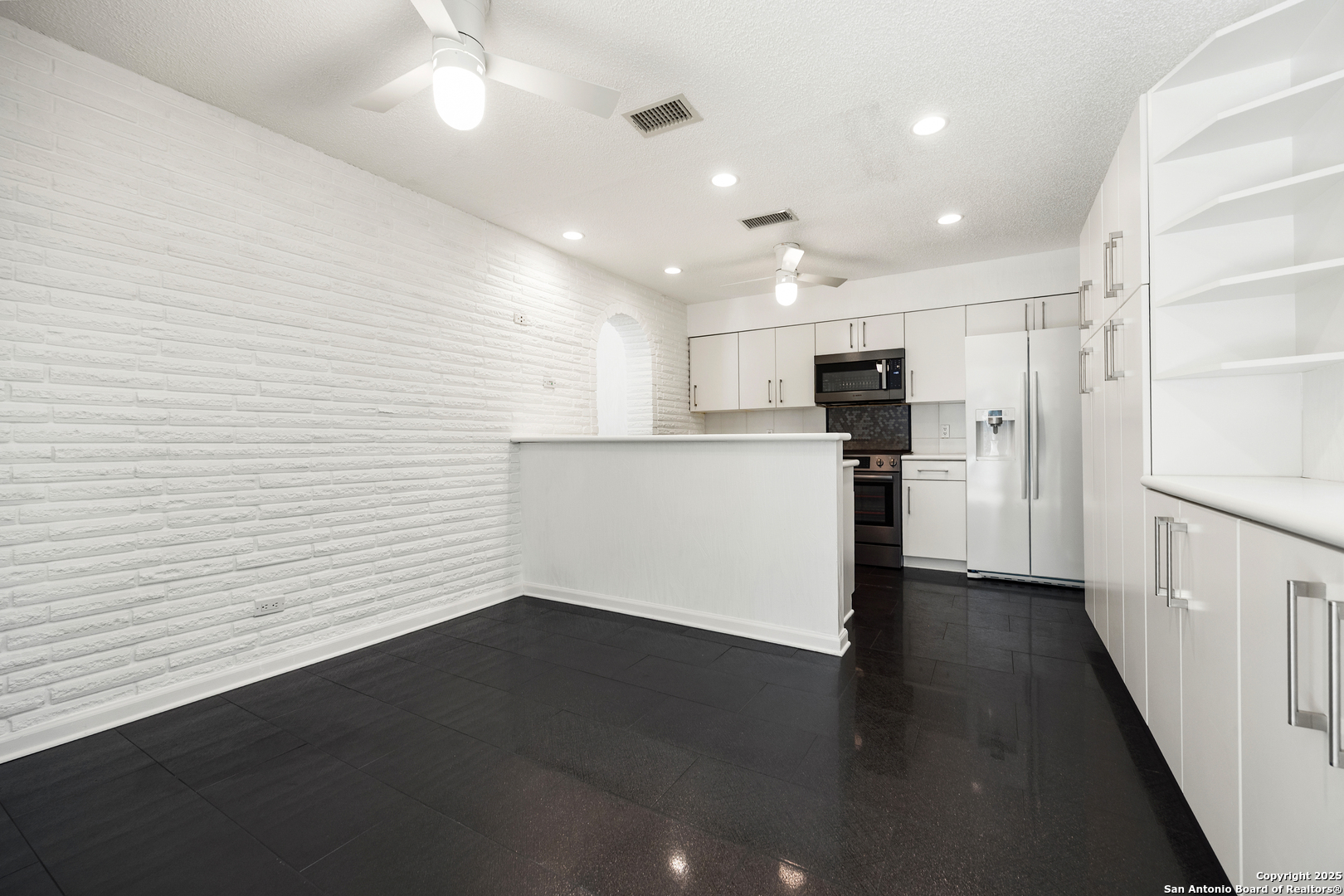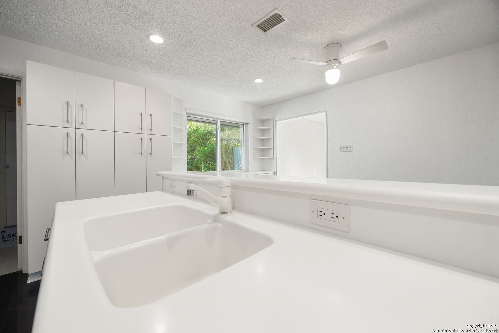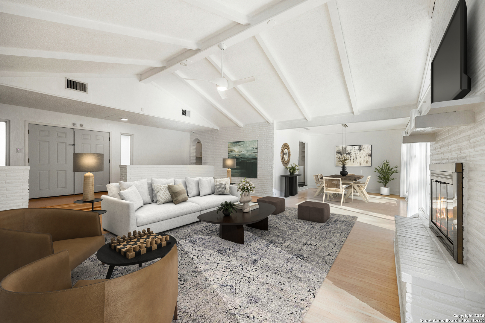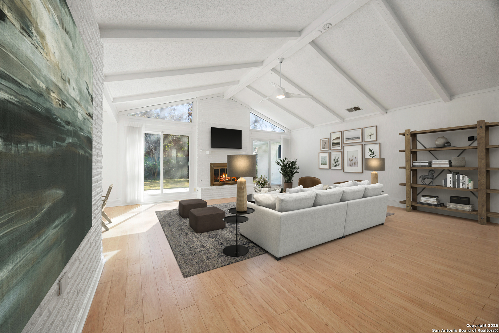 Welcome to this lovingly maintained single-story home situated on a generous 0.22-acre lot in the well-established Charter Oaks neighborhood. Surrounded by mature oak trees, this community offers a tranquil setting while remaining conveniently close to everything the city has to offer. The inviting living room is filled with natural light and showcases a vaulted wood-beamed ceiling, cozy fireplace, and an exposed brick accent wall that adds warmth and character. Light, on-trend flooring flows seamlessly into the dining area, where a large sliding glass door opens to a peaceful backyard shaded by mature trees-an ideal space to enjoy morning coffee or unwind after a long day. The kitchen features a breakfast nook, breakfast bar seating, and updated appliances. The thoughtfully designed layout offers 3 spacious bedrooms and 2 fully remodeled, sleek, modern bathrooms. An oversized laundry room located just off the two-car garage offers built-in cabinetry and a dedicated storage closet for added organization and convenience. Additional highlights: Refrigerator, washer, and dryer, along with the solar equipment are included with the sale. No HOA! Conviently located near schools with easy access to Loop 410 and I-10, as well as a multitude of shopping and dining options nearby. Don't miss out. Schedule your showing today!
