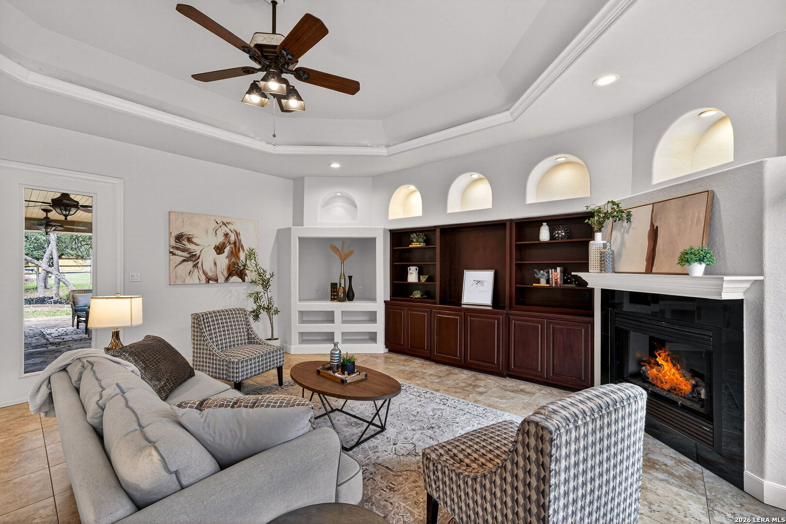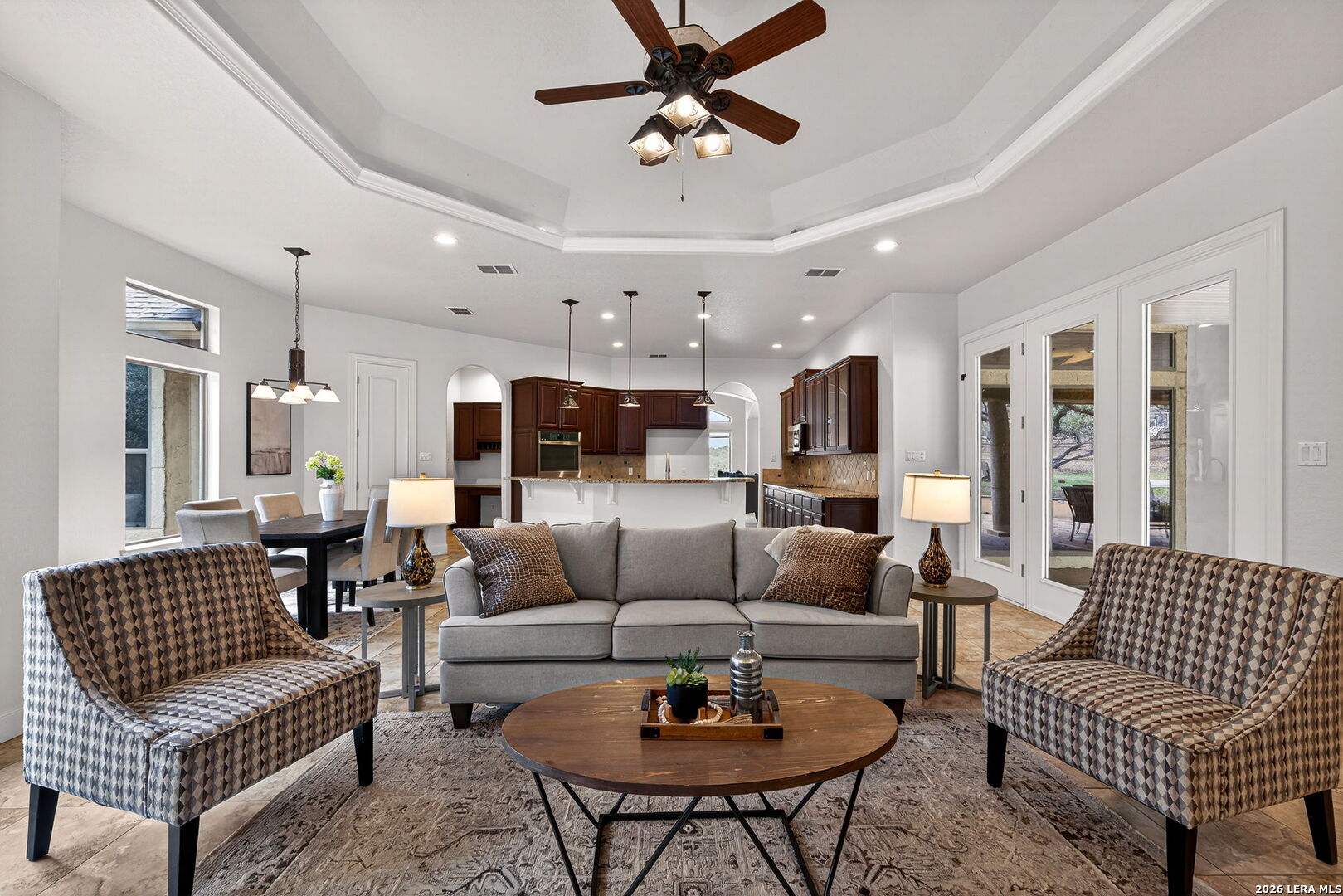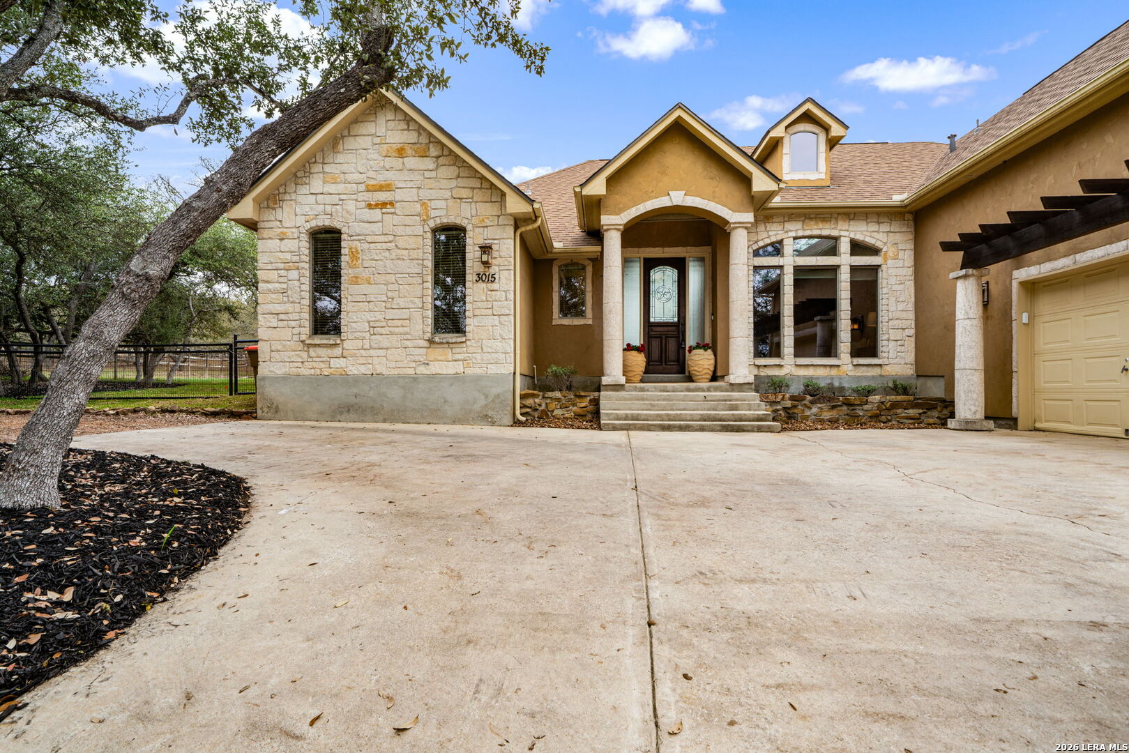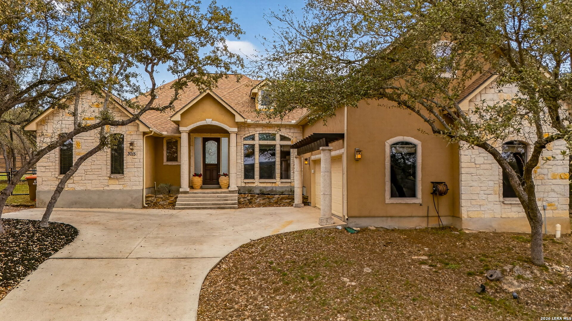 OPEN HOUSE Saturday and Sunday March 21-22 1-3pm **MOVE IN READY** Stop by and see the new landscaping and beautifully staged home!! BeautifuL 3-bedroom, 2.5-bath home with a study on 1.05 acres in the highly desirable River Crossing community. Recently repainted and featuring new appliances, this home combines elegance and comfort with exquisite ceiling details, custom built-ins, and fresh paint throughout. The spacious island kitchen offers granite countertops, a breakfast bar, and opens seamlessly to the inviting family room. Recent updates include a 2-year-old roof, 360 sprinkler system, two A/C units (one under 3 years old), two new water heaters, and new carpet in the bedrooms and primary closet. Enjoy community amenities including a golf course, pool and country club (membership required), and private Guadalupe River access.