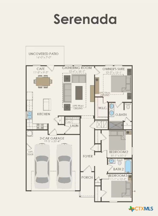 NEW CONSTRUCTION BY CENTEX HOMES! Available March 2026! The move in ready Serenada lives larger than its square footage, and offers bright open-plan living spaces and three spacious bedrooms.