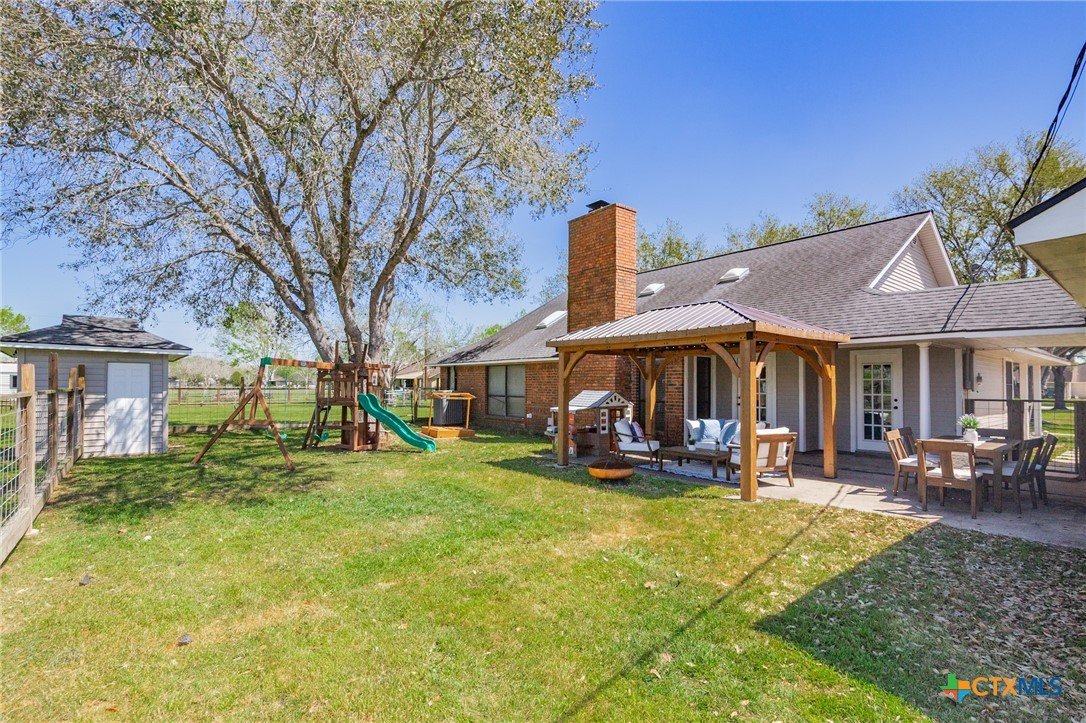 Charming Country Living in Desirable Nursery – Welcome to 302 Crawford! Discover the perfect blend of space, style, and serenity just minutes from Victoria! Set on 1.42 acres in the highly sought-after Nursery area, this beautifully maintained 3-bedroom, 3-bath home offers room to grow—both inside and out. Step inside and enjoy two spacious living areas designed for relaxing and entertaining, a flexible office/flex space to suit your needs, and the convenience of indoor laundry. Natural light, tasteful updates, and warm touches throughout make this house feel like home. Start your mornings under the shade of mature trees on the cozy front porch, and end your days hosting friends and family on the covered back patio—ideal for backyard dinners, weekend BBQs, or quiet evening retreats. With wide open space and great flow, it’s built for both entertaining and unwinding. Outside, a detached shop offers endless possibilities—think gym, creative studio, or dream workspace. And yes, the charming chicken coop (with chickens included!) brings a fun and functional touch of country living to your backyard. Located in the desirable Nursery area, known for its peaceful charm and strong sense of community, this home is a rare gem. With great curb appeal and room to make it your own, 302 Crawford won’t be on the market for long. Schedule your private showing today and experience everything this special property has to offer!