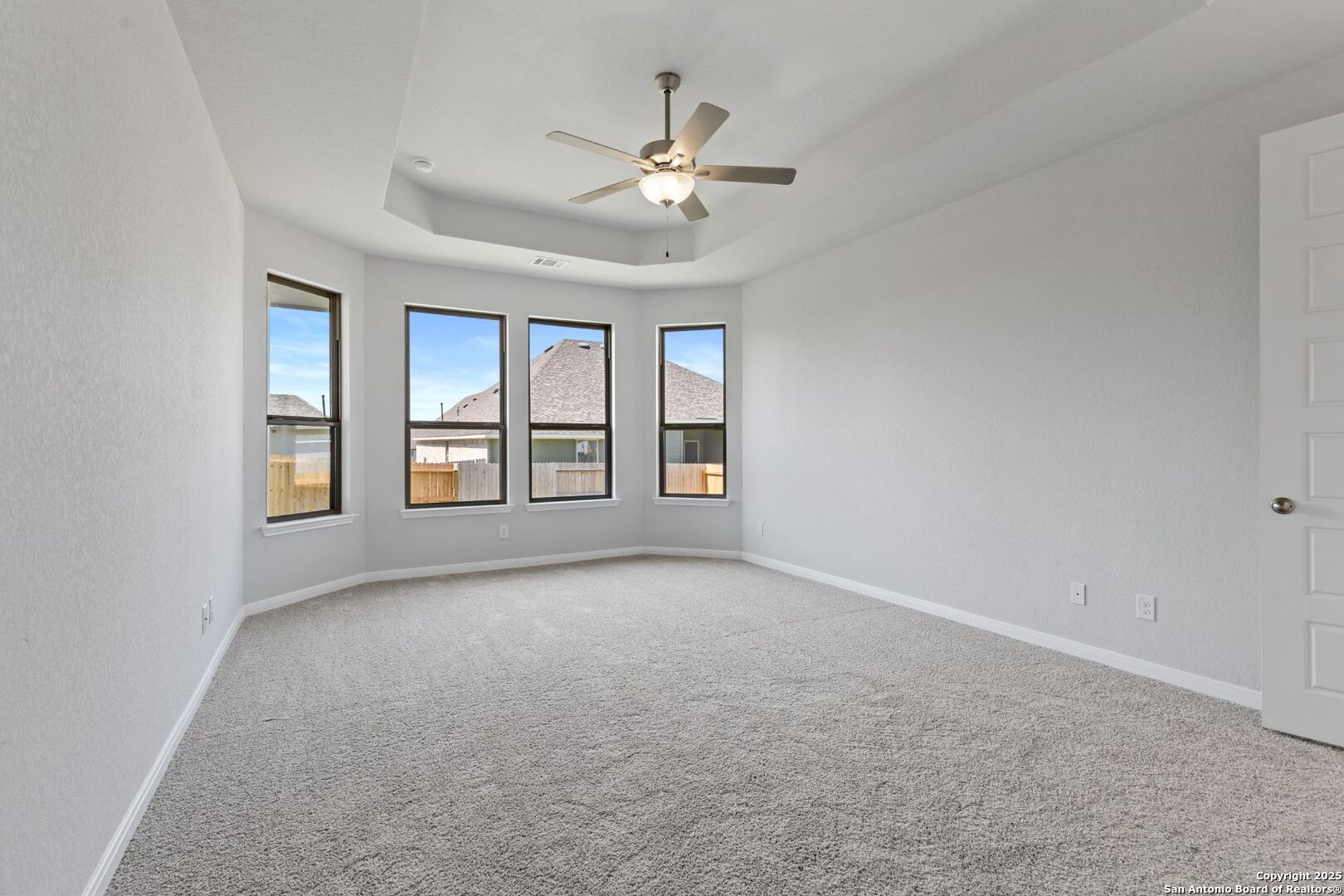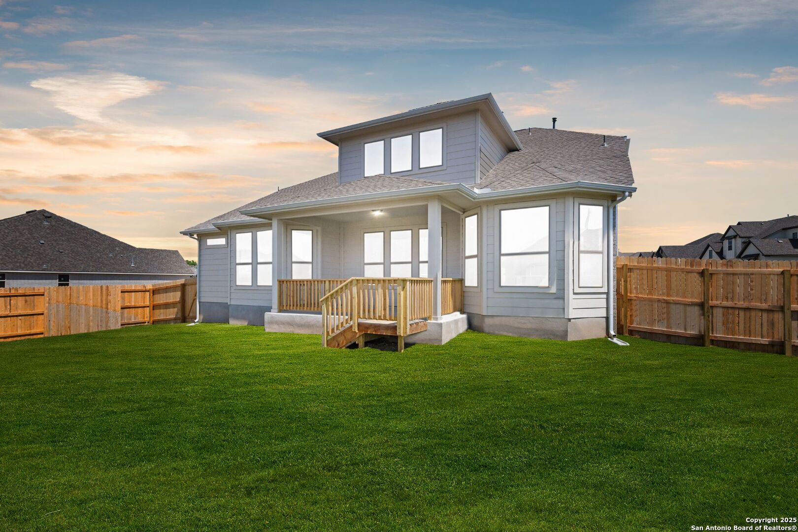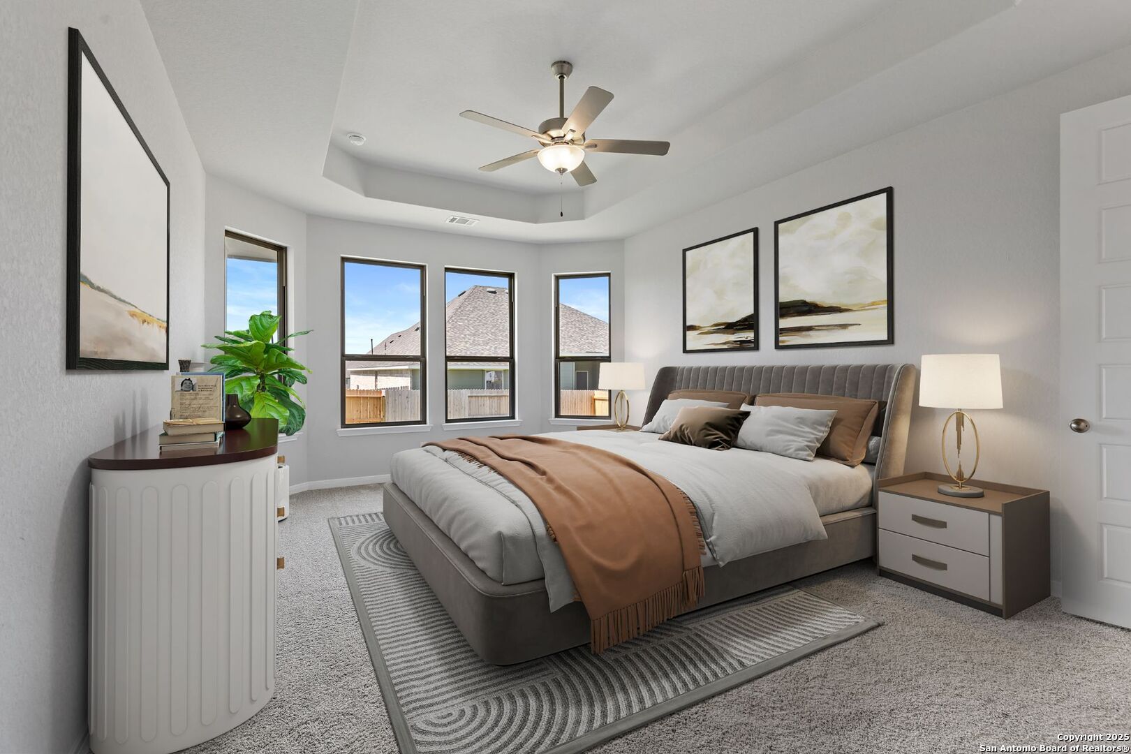 Don't miss out on this must-see home situated on an oversized corner lot, featuring a striking stone exterior, a 3-car garage with an additional 5' of storage space, and an inviting 8' front door. Enter through the wide foyer and pass by the study to discover the elegant formal dining room, complete with a convenient pass-through to the kitchen. Enhancing the kitchen's functionality, a butler's pantry extends the utility of the large walk-in pantry. The kitchen itself is a chef's dream, equipped with a gas cooktop, built-in appliances, a spacious island, and 42" cabinets crowned with molding. The great room, the heart of the home, boasts soaring ceilings and a dramatic wall of oversized windows that frame views of the expansive Texas-sized patio, complete with a gas stub out ideal for grilling. The spacious game room offers the perfect setting for family game nights and entertainment. Downstairs, the primary suite provides a peaceful retreat with a bay window, dual separate vanities, and a large walk-in shower. A guest room, also located on the main level, ensures comfort and convenience for visitors. This home truly has it all, schedule your appointment today!