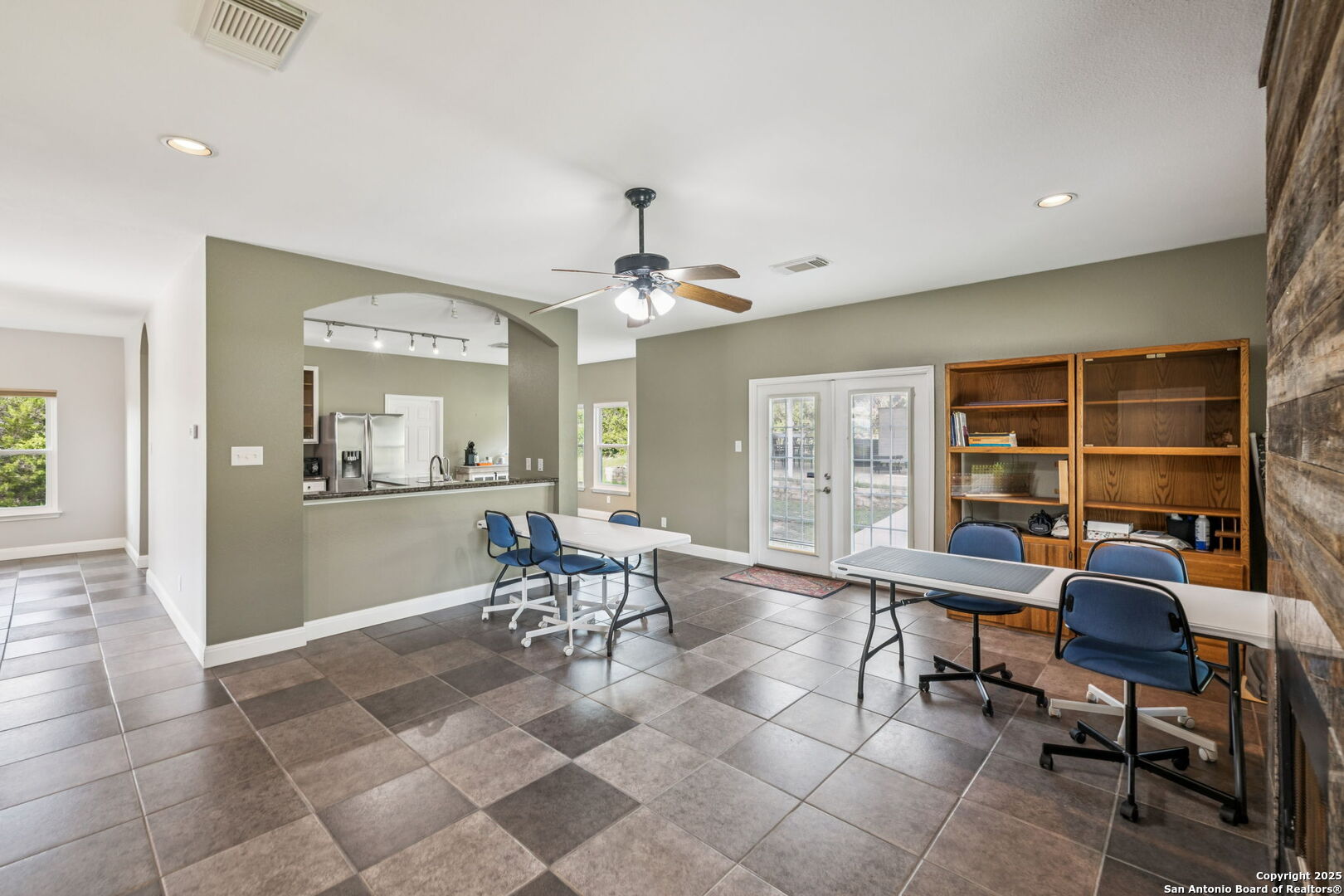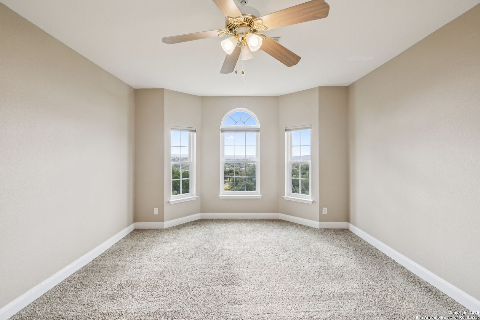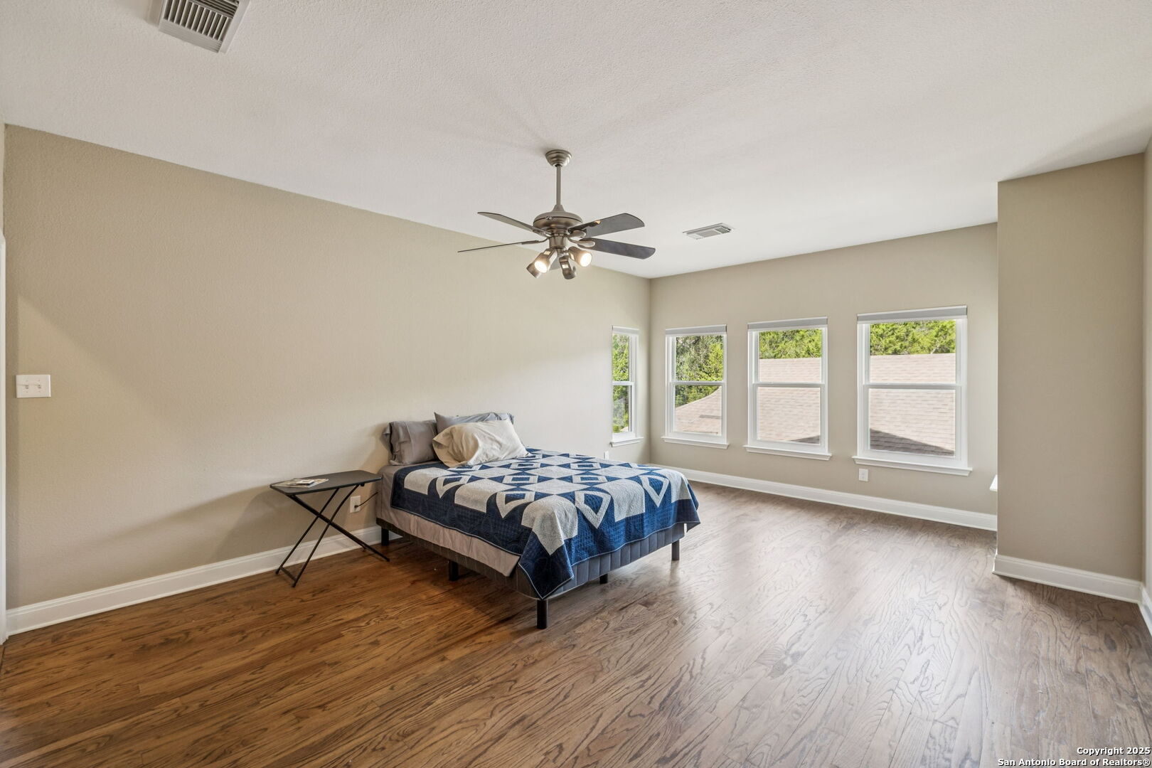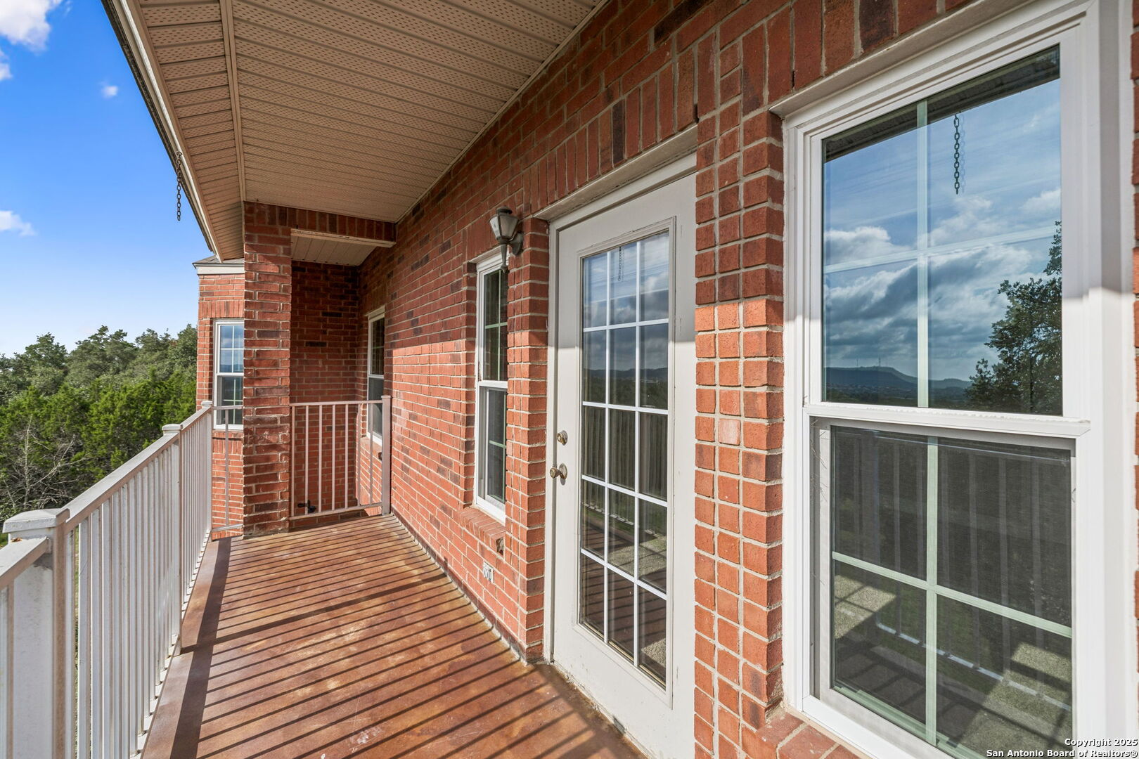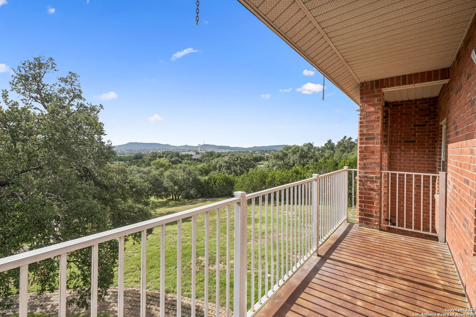 STUNNING VIEWS ON NEARLY 2 ACRES!! Situated on an expansive lot with 10-mile views and easy access to 281, this exceptional home is built for both comfort and entertaining. Boasting multiple living areas-including a spacious Texas-sized game room with custom cabinetry-there's room for everyone to spread out and enjoy. The chef-inspired kitchen features granite countertops, prep sink at the island, a massive pantry, and elegant glass door display cabinetry. Energy efficiency is top of mind with double-pane vinyl windows and a radiant barrier roof. The family room's Texas-style fireplace adds cozy charm, while recessed lighting and updated fixtures bring a modern touch. Upstairs, glistening wood floors lead you to generously sized secondary bedrooms, including one with access to a private deck and sweeping views. The luxurious owner's suite is flooded with natural light and features a beautifully tiled shower. Outside, a 30x20 pavilion is ideal for gatherings, offering the ultimate space for outdoor entertaining. A paved driveway provides ample parking with extra room for RV and boat parking, making this home a rare blend of style, function, and freedom. HVAC and roof replaced in 2020. ALL new vinyl windows 2024. SEE THIS ONE TODAY!!
