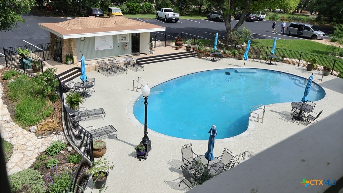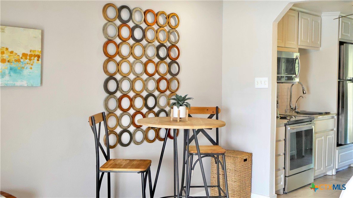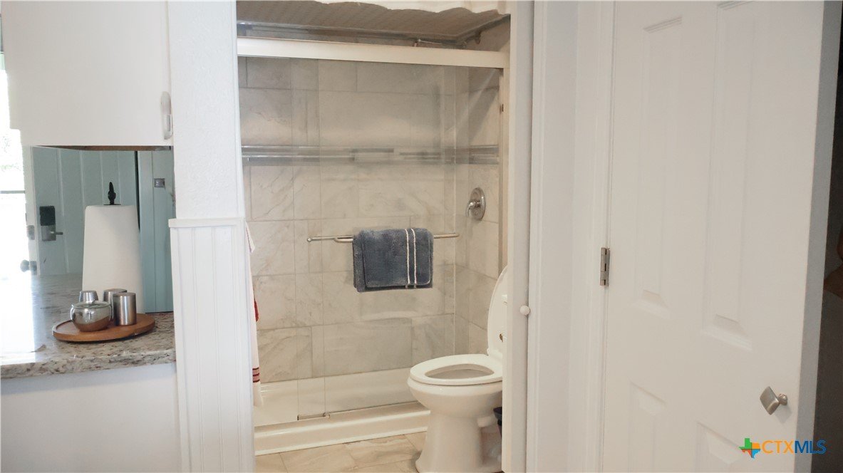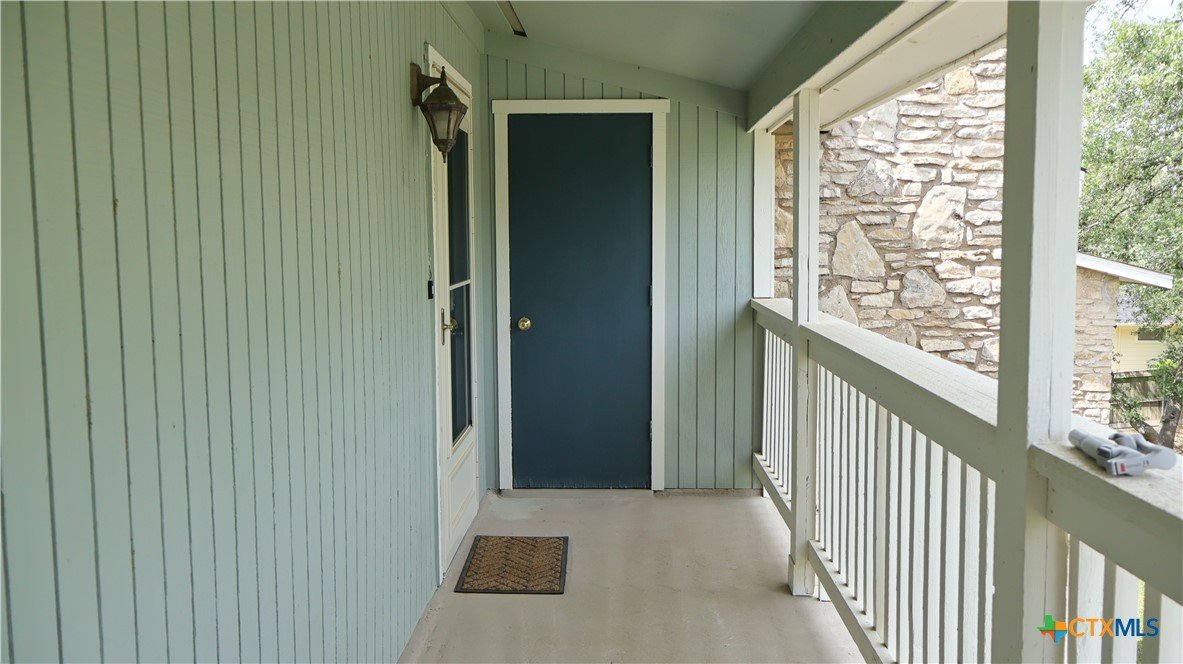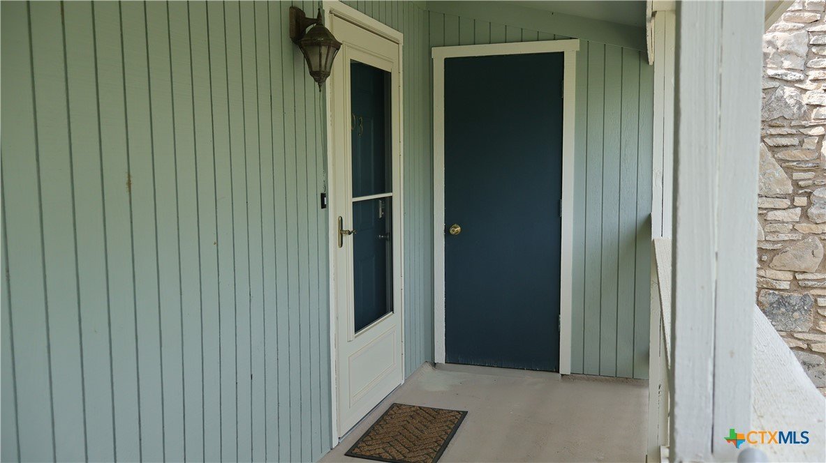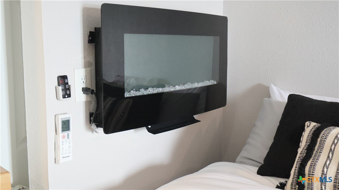 LAKEFRONT STUDIO CONDO on LAKE BELTON with a private balcony and panoramic views. The open layout is easy to love, with German made white washed oak laminate flooring in the living space and porcelain tile in the kitchen, hallway, and bathroom for low maintenance. The kitchen is fully set up with custom cabinetry, plenty of storage, granite countertops, a tile backsplash, and a deep sink, plus stainless appliances including a convection oven range, microwave, and refrigerator. Big upgrades are already done, including a mini split AC unit installed in 2023, a programmable electric fireplace that also heats the unit, a tankless hot water heater, and a reverse osmosis system for drinking water. The bathroom includes a large walk in tiled shower and extra storage. Step out to the lakefront balcony in the evening and enjoy the view! Plus, there is a modern, updated guest house available on site for visitors at an affordable daily rate, approximately $50 per day.