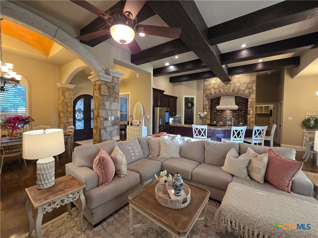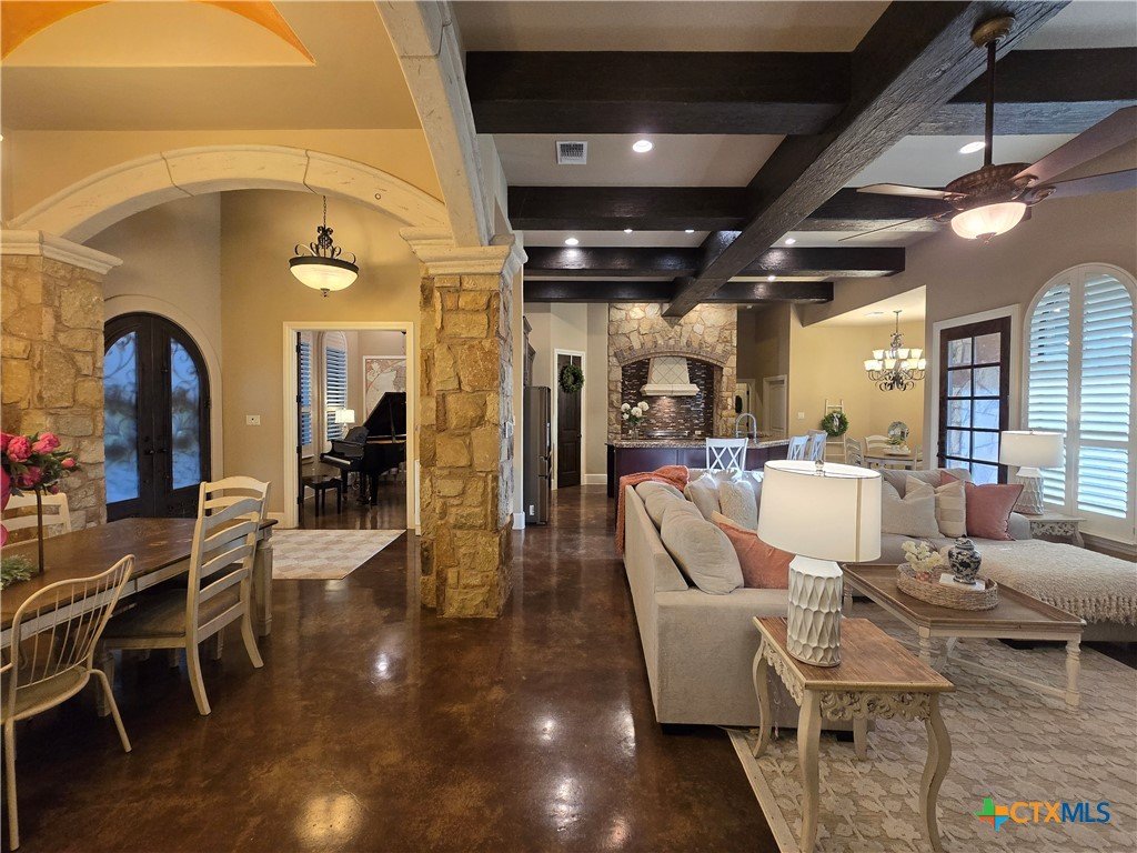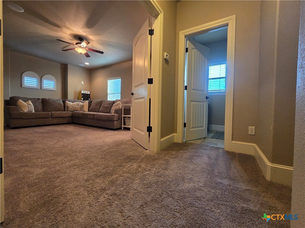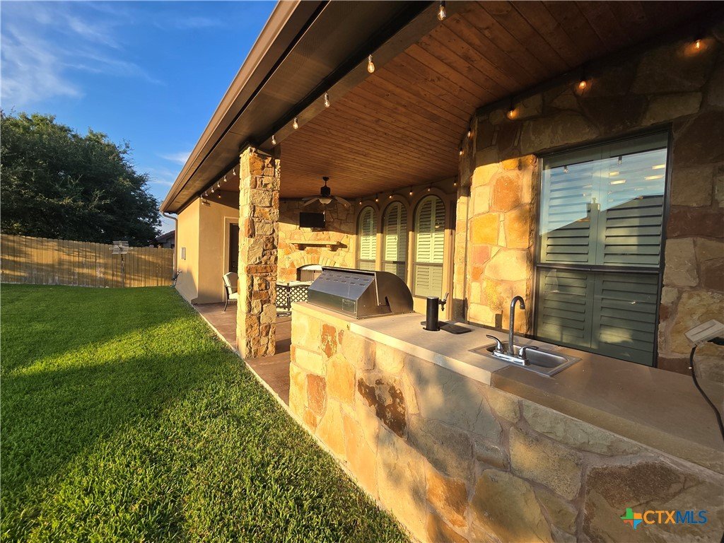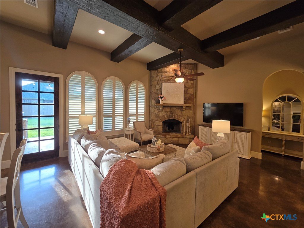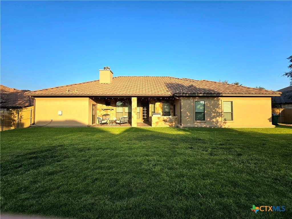 Welcome to 3030 Whitetail Trail, a stunning sanctuary nestled in the exclusive Bella Charca a gated community of Nolanville, Texas. This exquisite residence spans over 3,000 square feet, offering an impressive blend of elegance and functionality, perfectly suited for discerning families and luxury buyers alike. As you step inside, you are greeted by an abundance of natural light that pours through expansive windows, illuminating the high ceilings and spacious rooms. The heart of the home is the gourmet kitchen, featuring sleek granite countertops, stainless steel appliances, and ample storage space—ideal for both everyday meals and entertaining guests. The adjoining den or home office provides a tranquil workspace, while the inviting fireplace in the living area creates a cozy ambiance for family gatherings. Retreat to the luxurious master bath, a private haven designed for relaxation with its opulent finishes and spacious layout. Each of the four bedrooms is generously sized, ensuring comfort and privacy for every member of the family, complemented by walk-in closets that make organization effortless. Walk up stairs and find a very spacious media room for entertaing guests or just a quiet evening with the family. Outside, the covered patio and fenced backyard provide a perfect outdoor entertainment area, equipped with a built in grill, sink, and fireplace ideal for summer barbecues or quiet evenings under the stars. The attached 3 car private garage enhances convenience and security. Schedule your private tour today and discover the unparalleled charm and sophistication that 3030 Whitetail Trail has to offer. Your dream home awaits.
